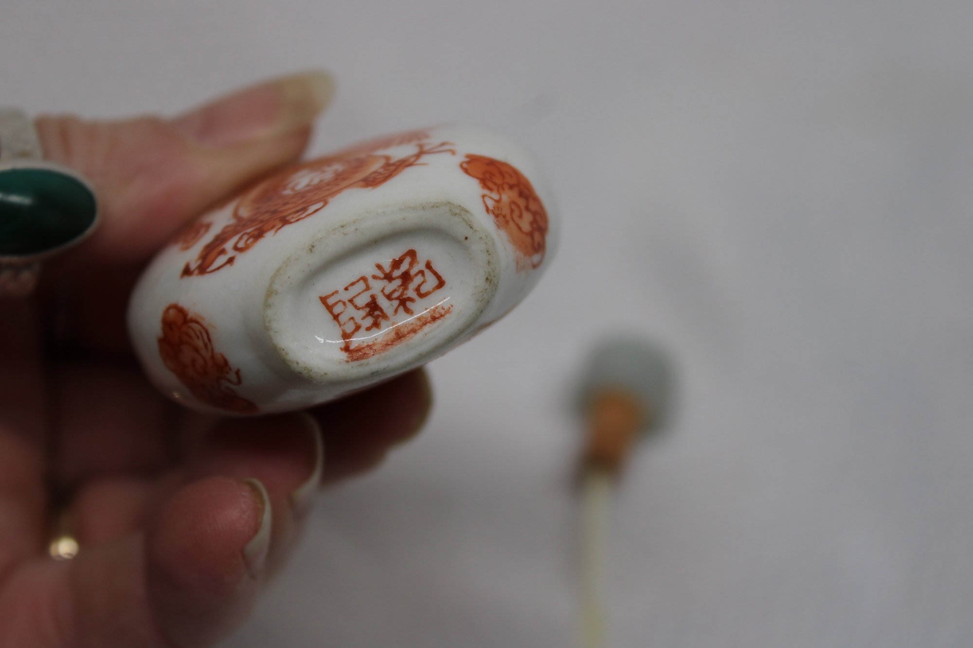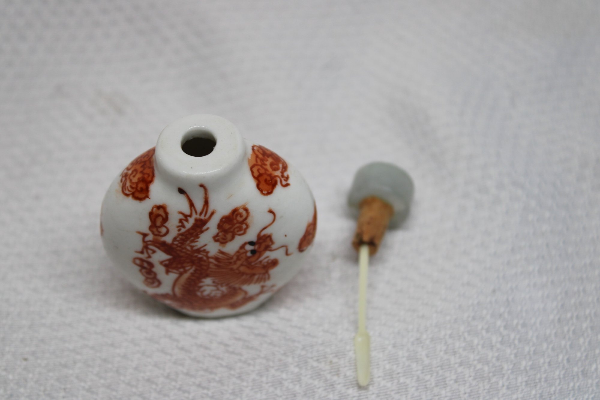 Vintage Hand Painted Porcelain Dragon Snuff Bottle - Signed