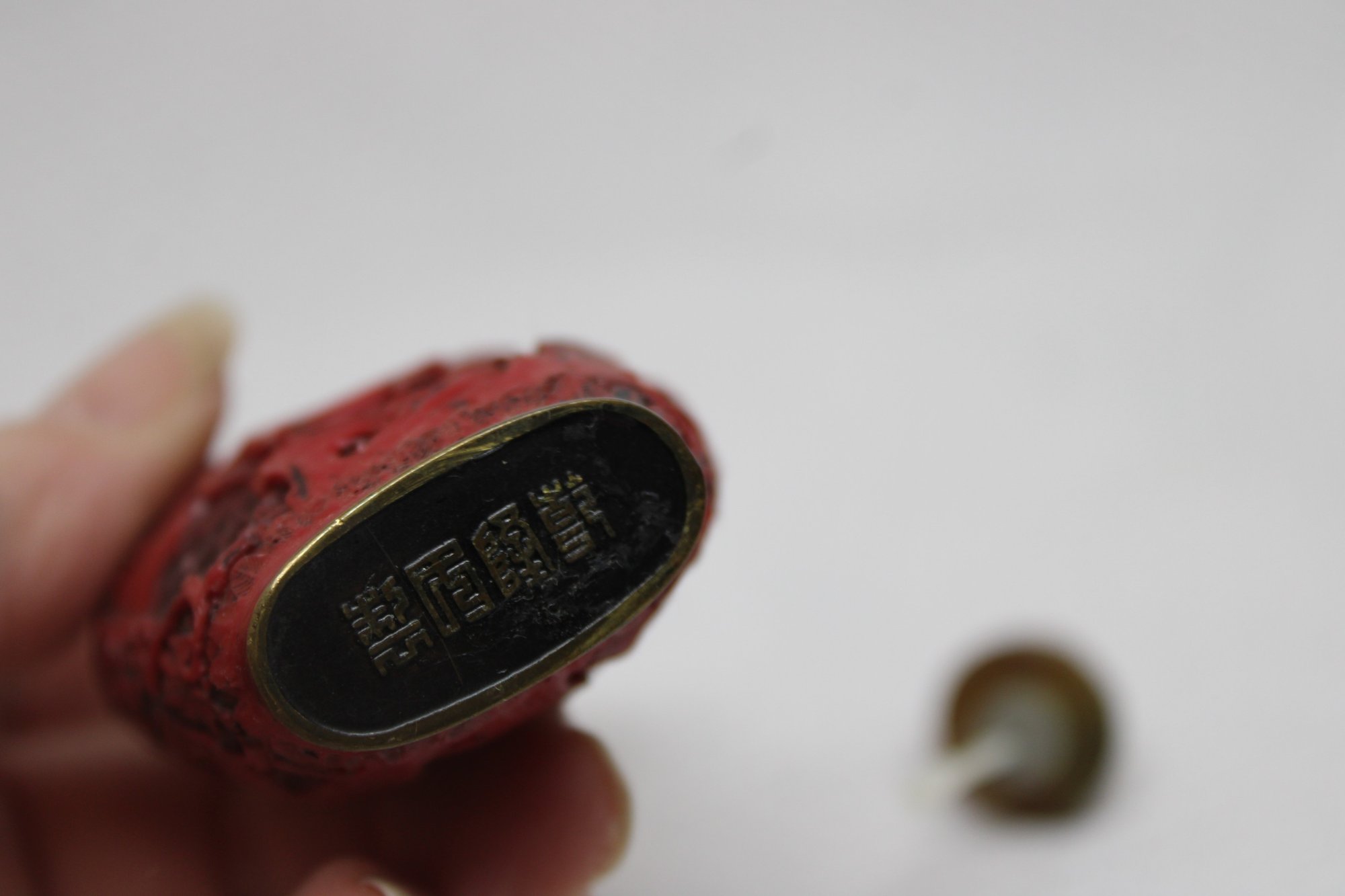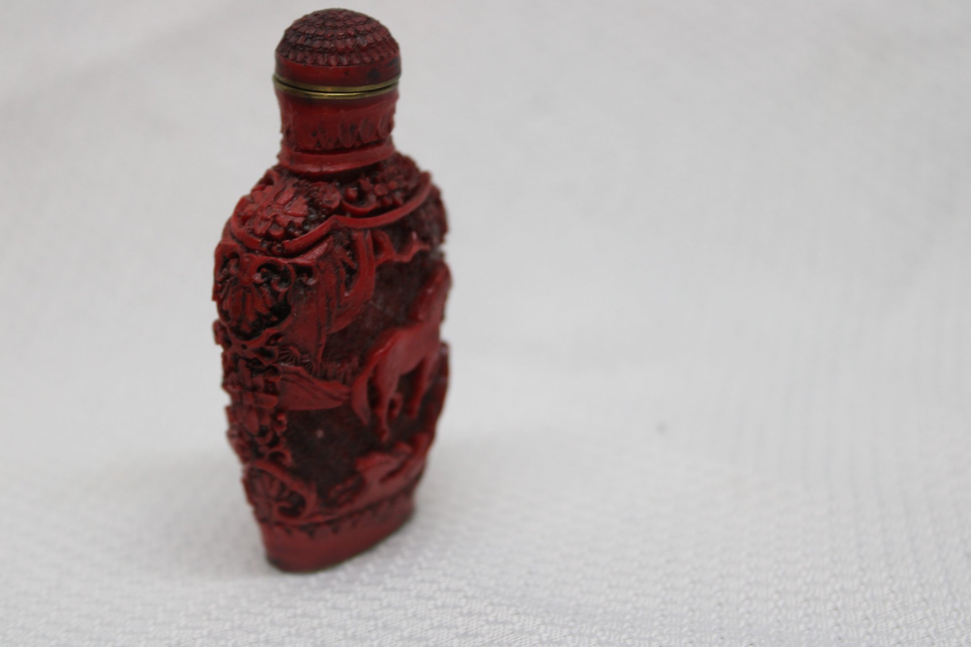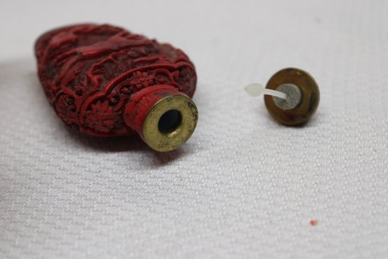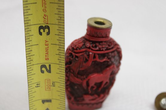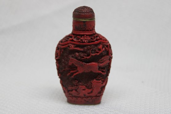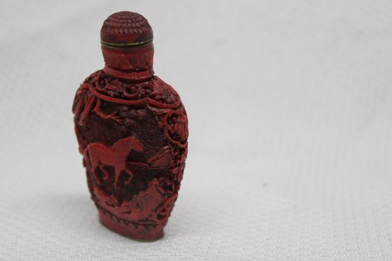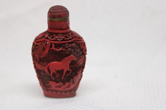 Vintage Marked Carved Cinnabar Red Lacquer Snuff Bottle - Horse