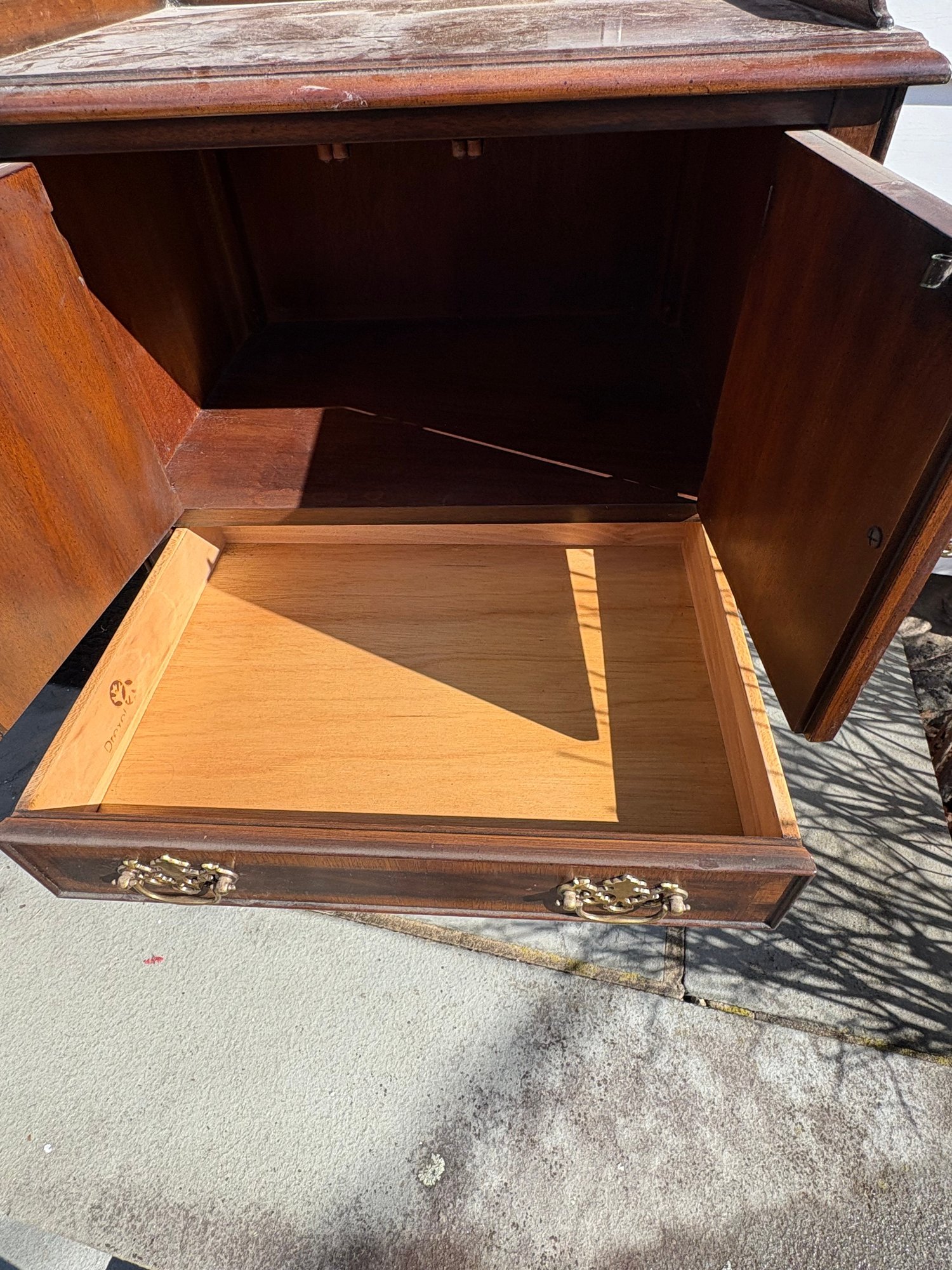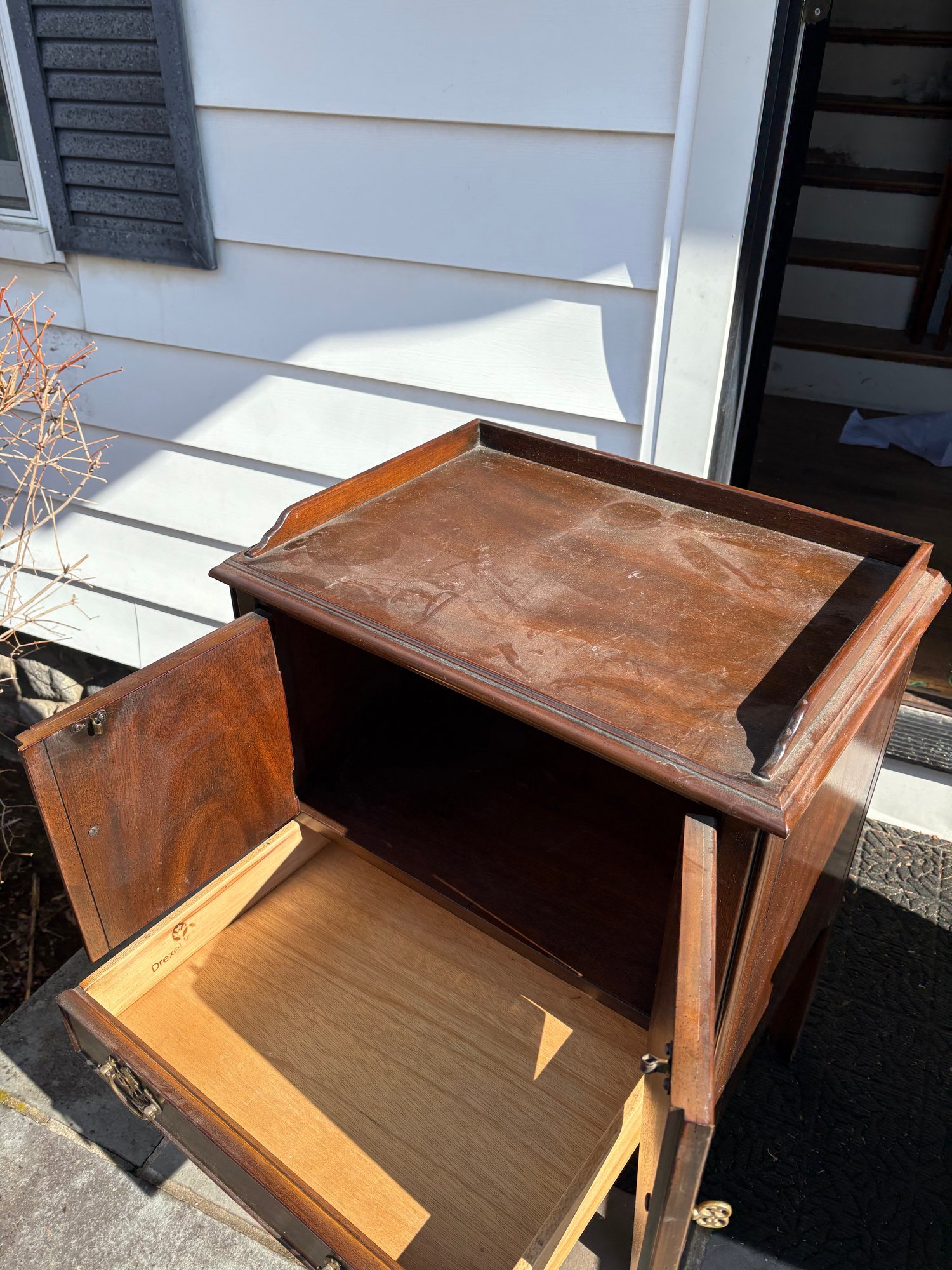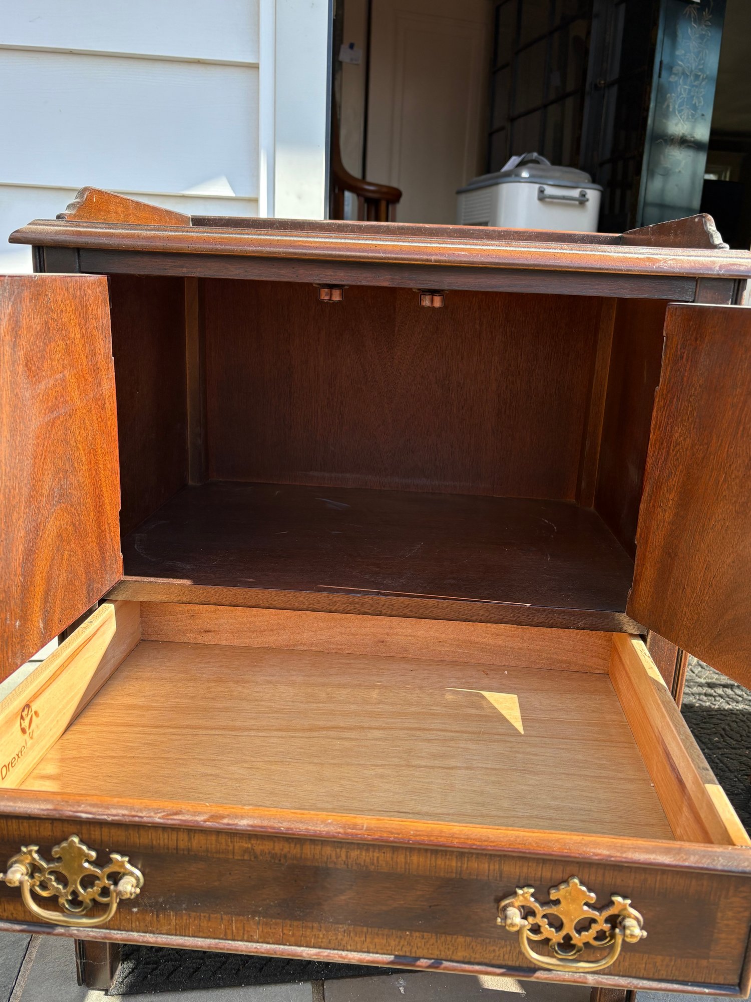 Dimensions approximately 16 by 23 by 29.5 inches tall. 14.5 inches long with drawer out.