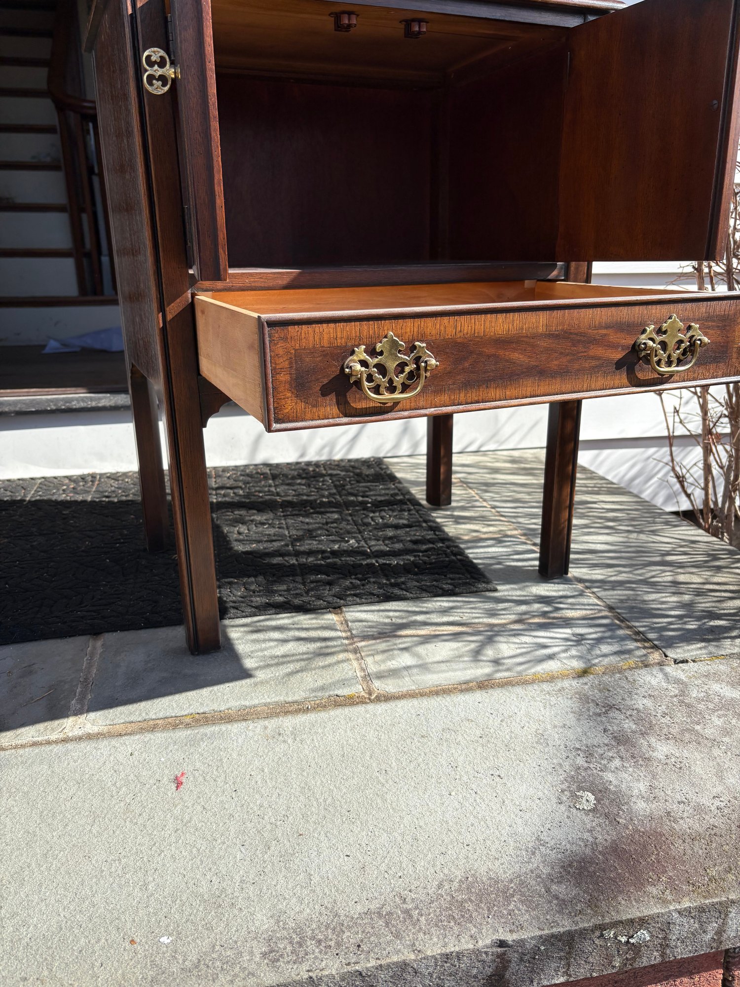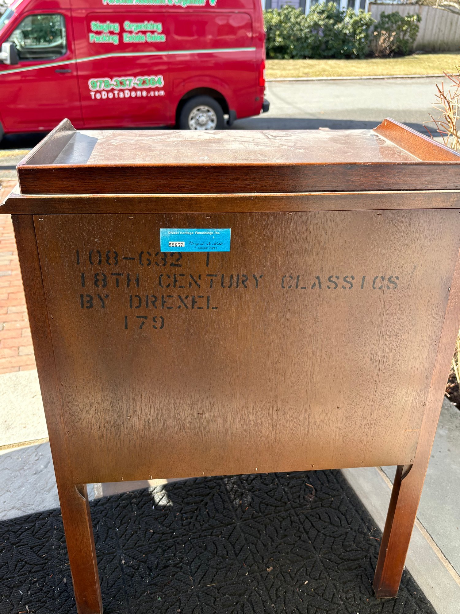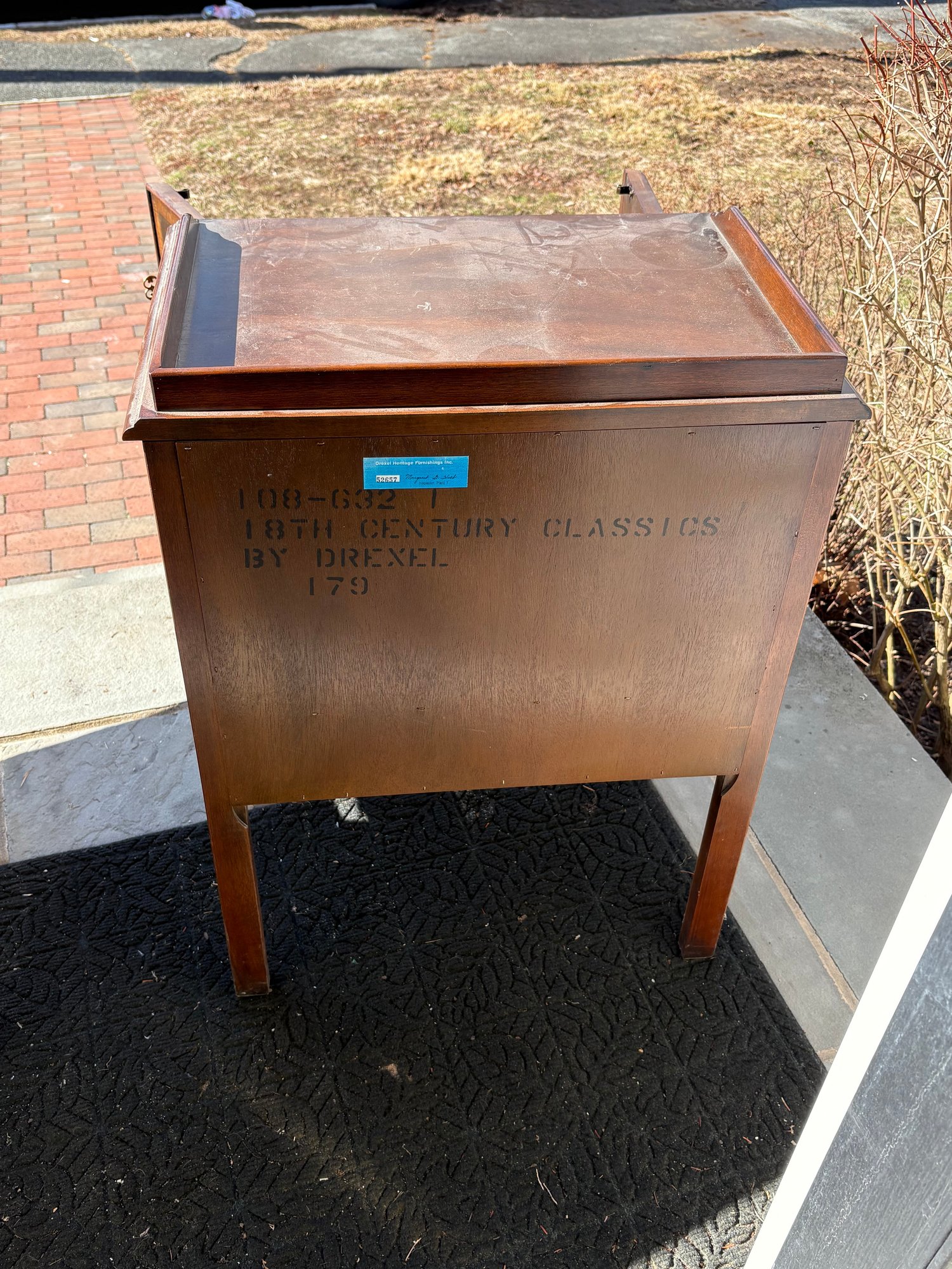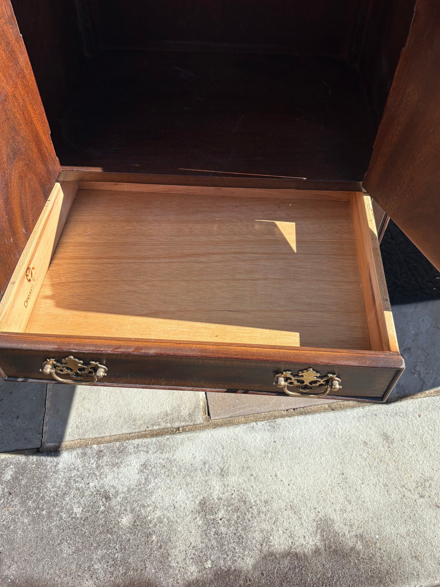 Dimensions approximately 16 by 23 by 29.5 inches tall. 14.5 inches long with drawer out.