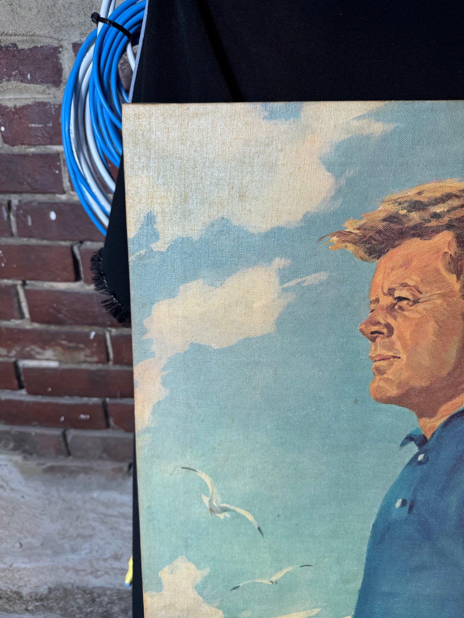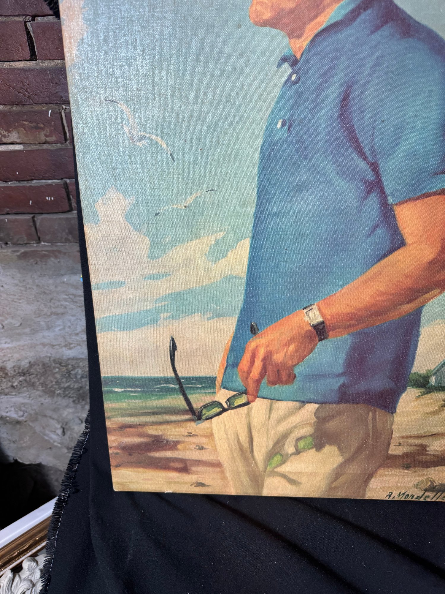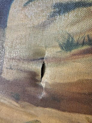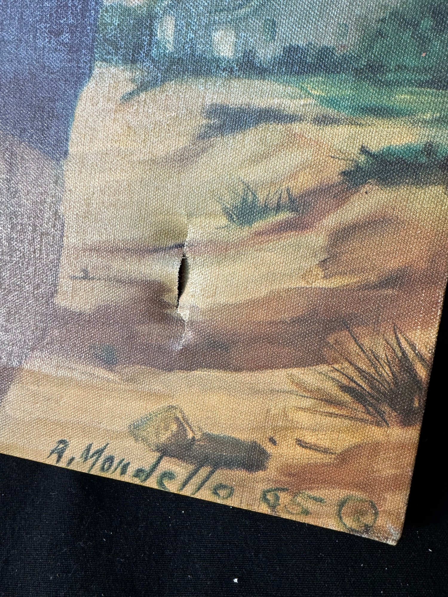 small tear in the bottom right hand corner of the canvas