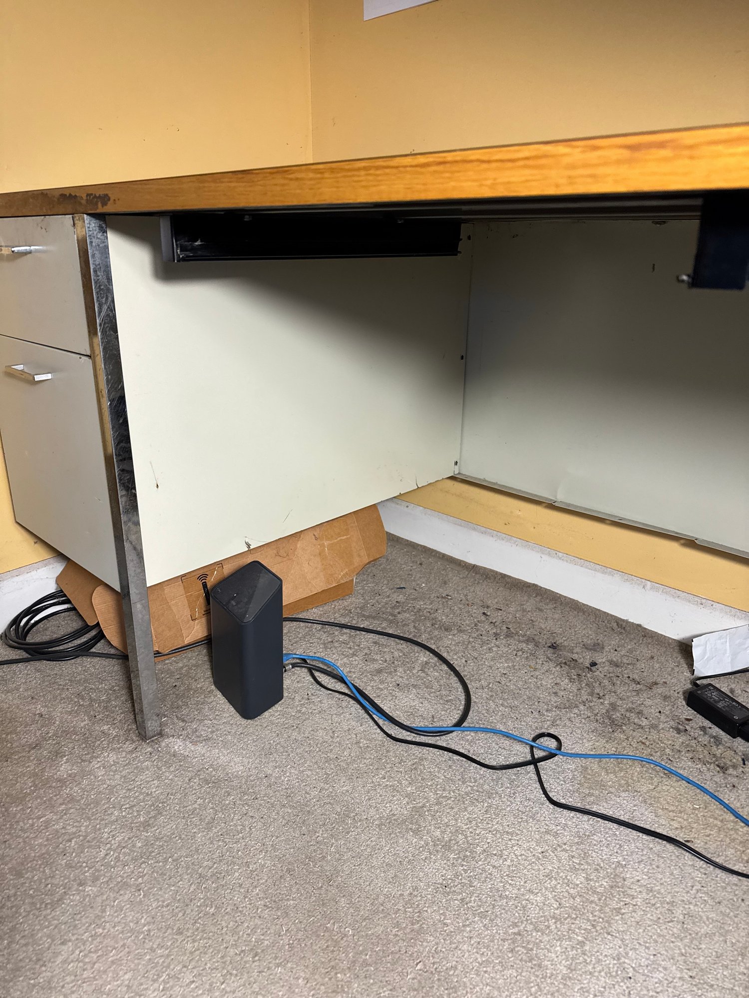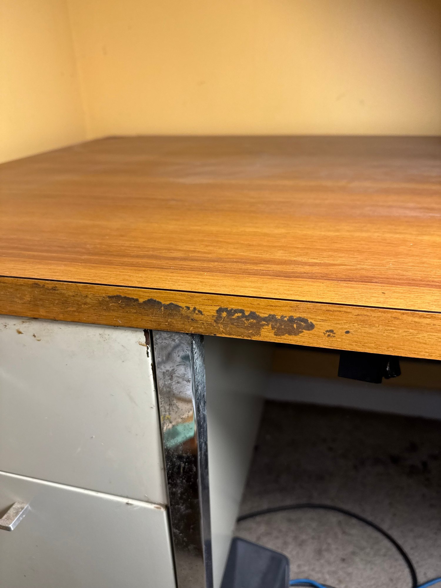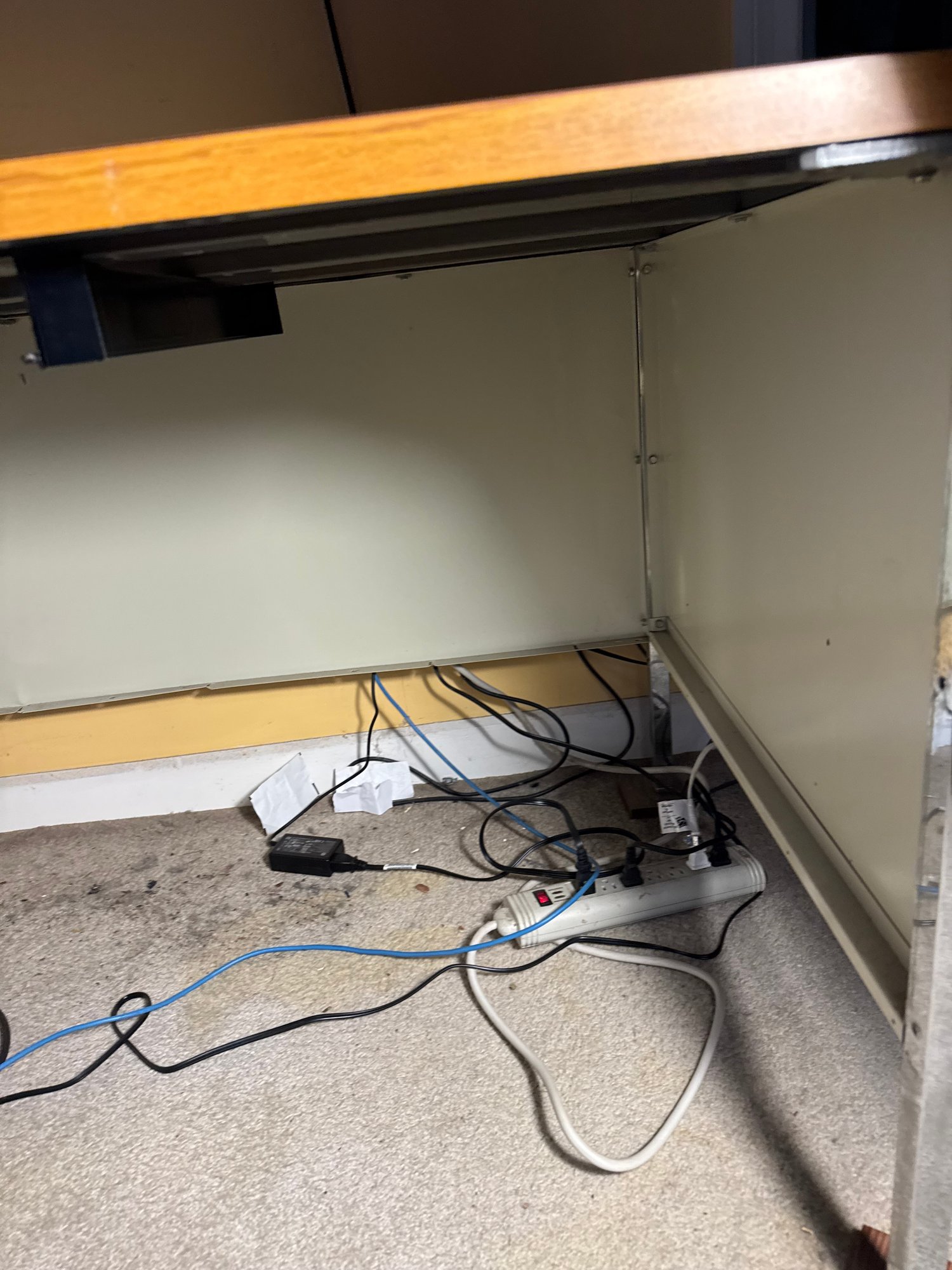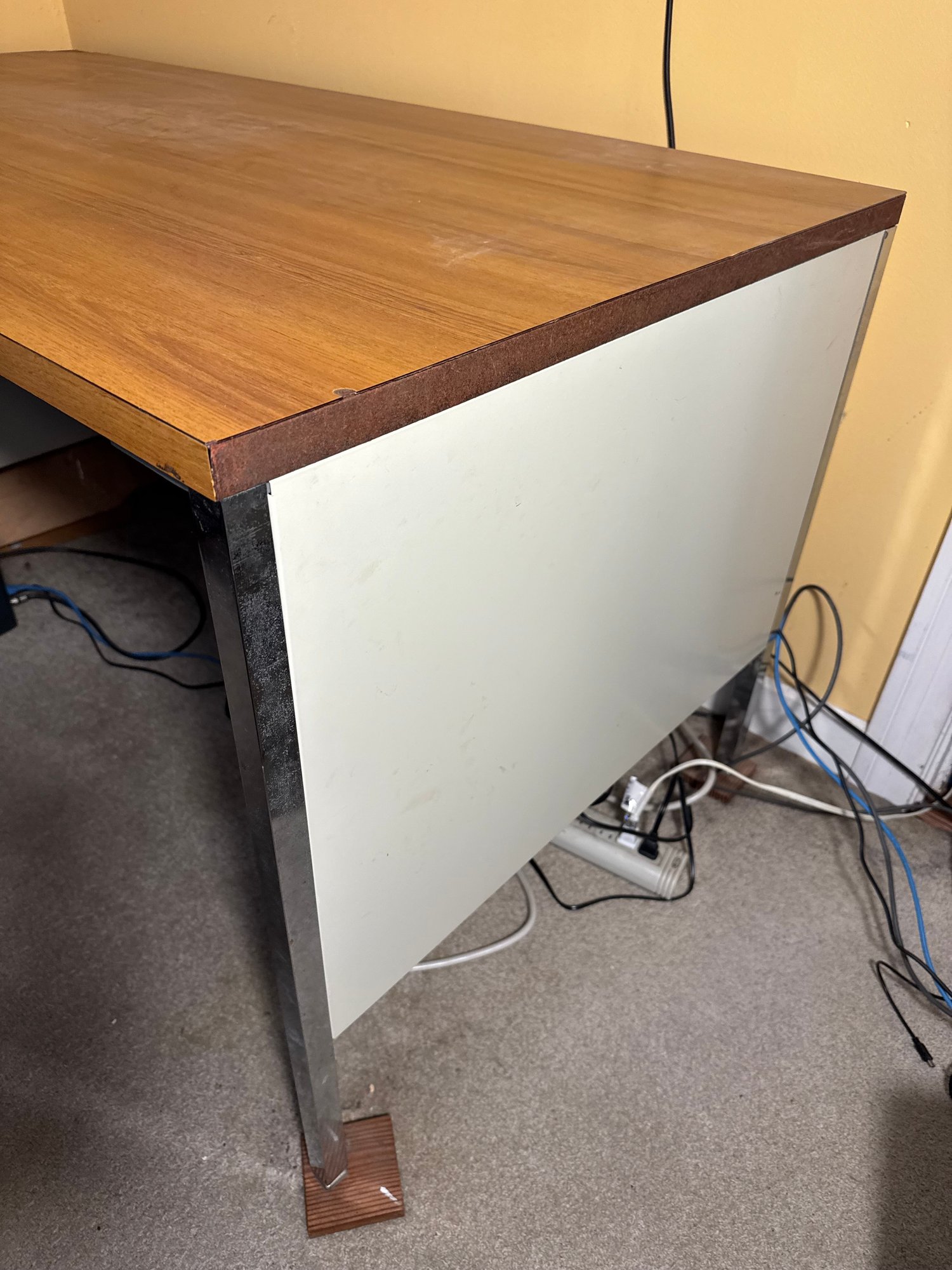 the right side comes with blocks to stand on, not sure if that’s because of the desk itself or the floor its on
