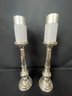 Two faux mercury glass candlesticks with candles