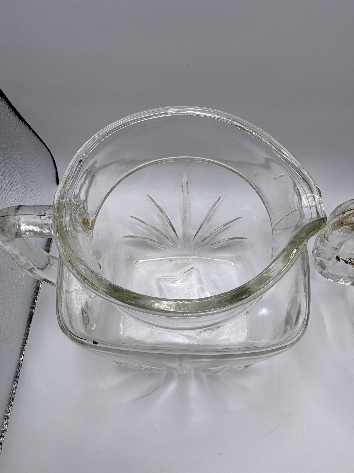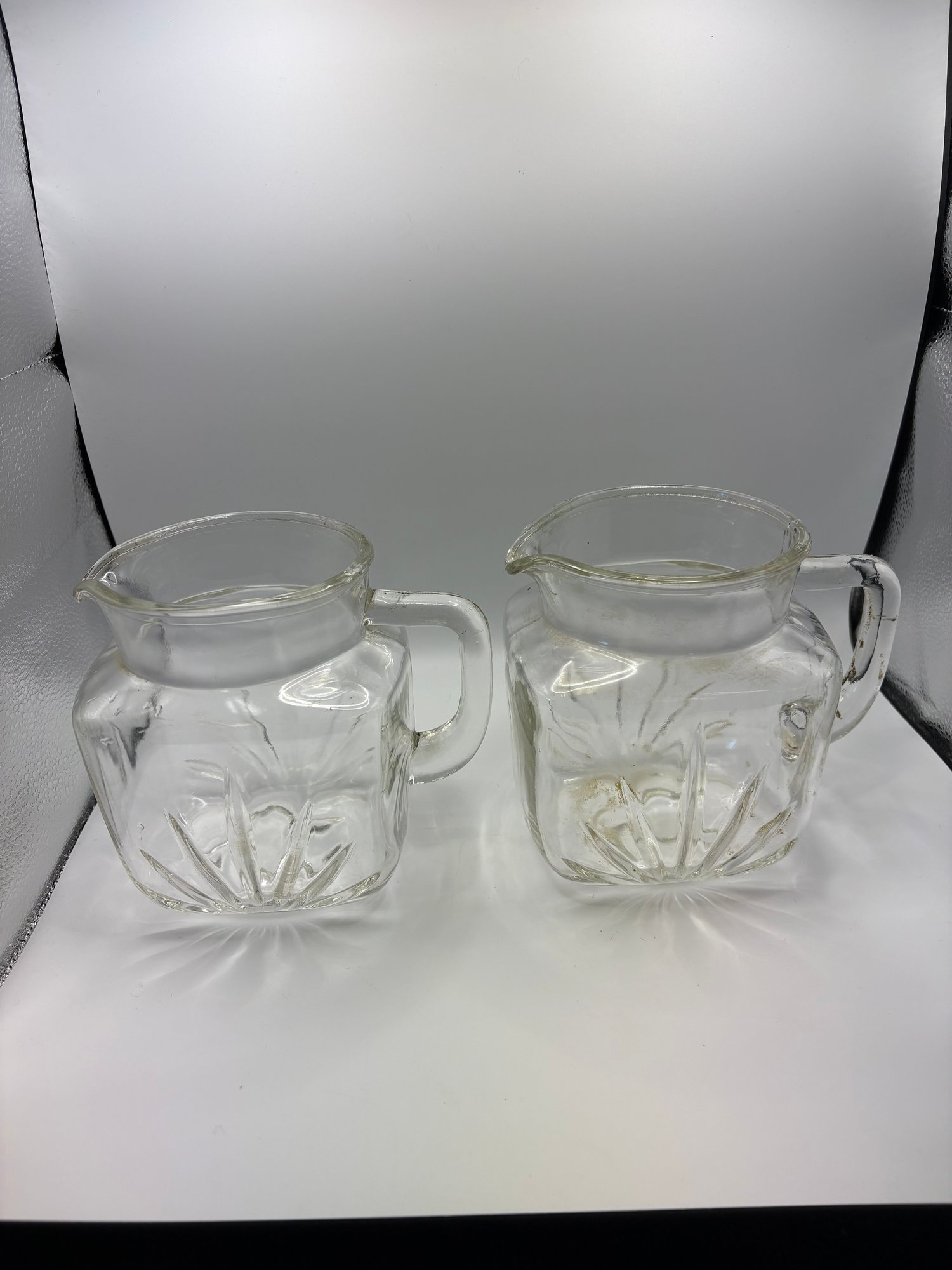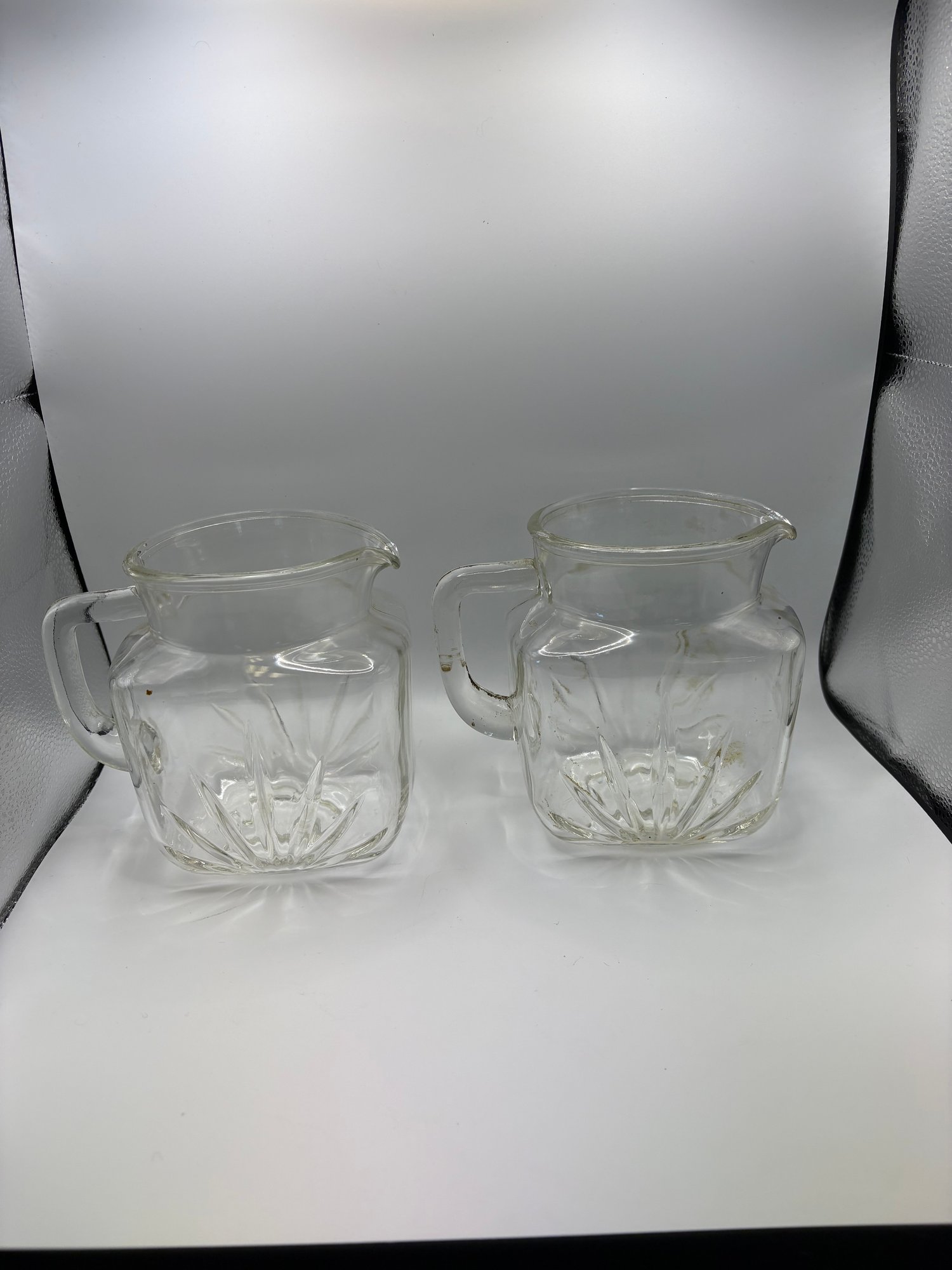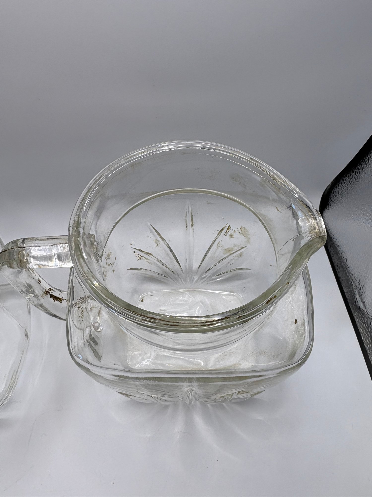 vintage Federal Glass Star pattern juice pitcher.