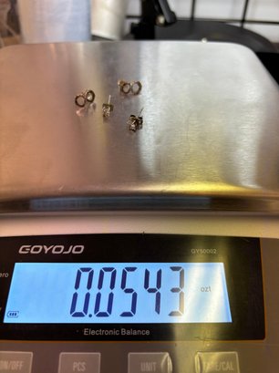 Total weight = 0.0543 ozt; * note that CZ stud backings are not 925