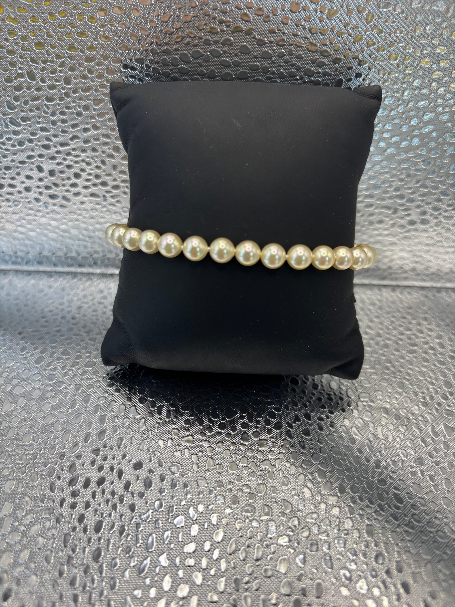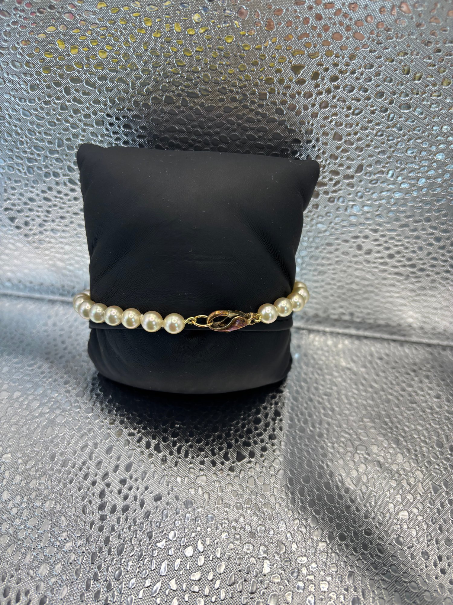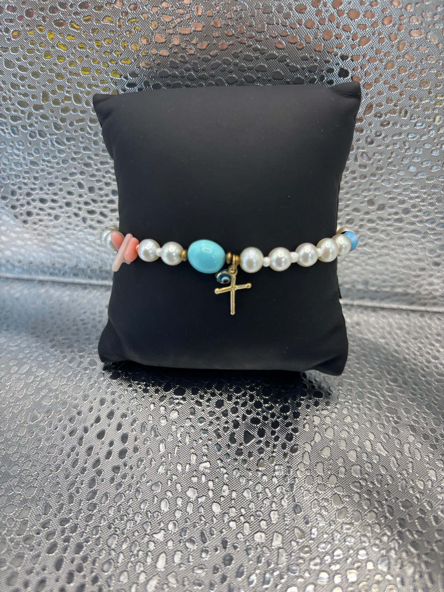 2 Pearl Like Bracelets-the One With The Evil Eye And Cross Has A Sterling Clasp