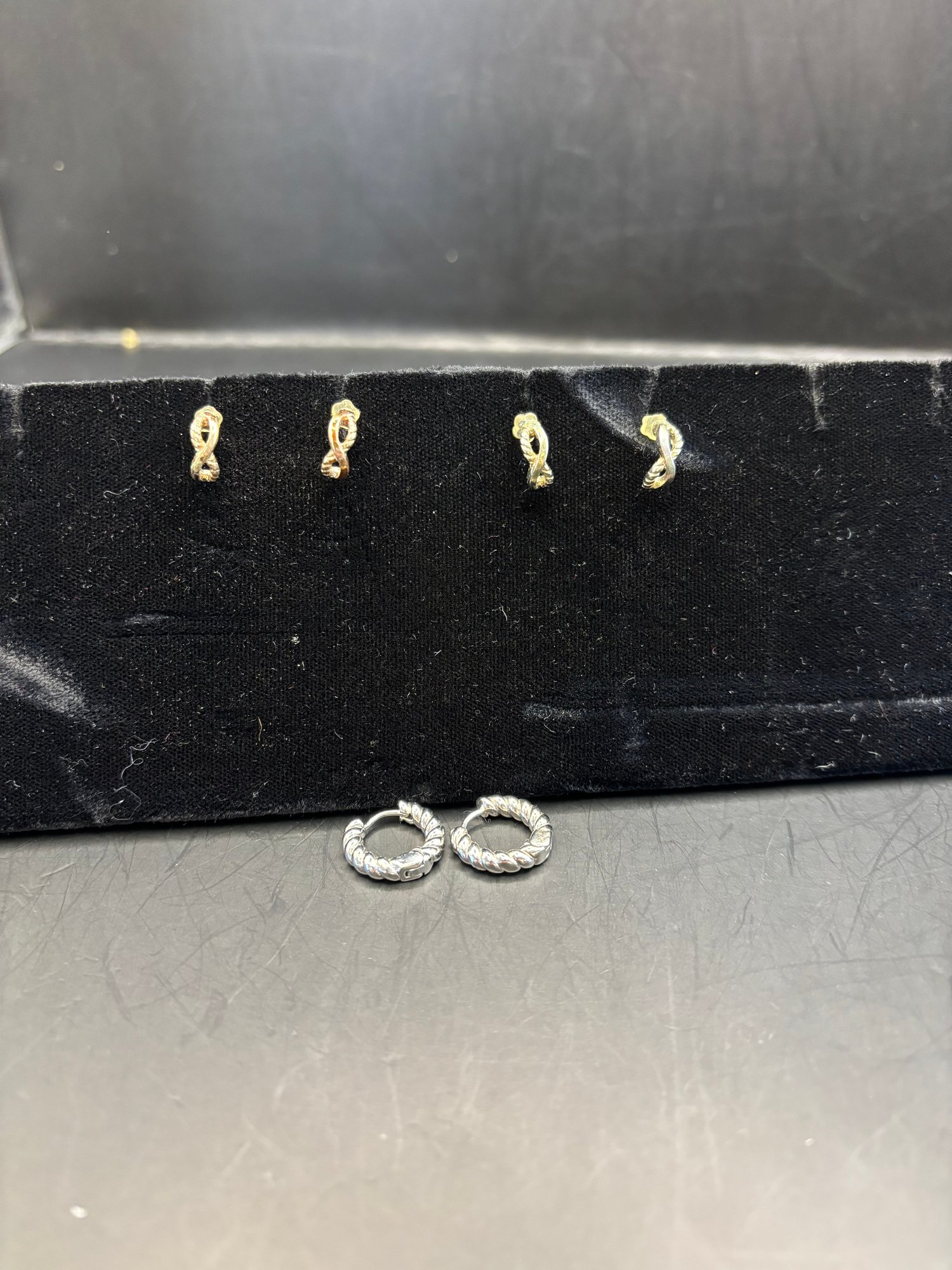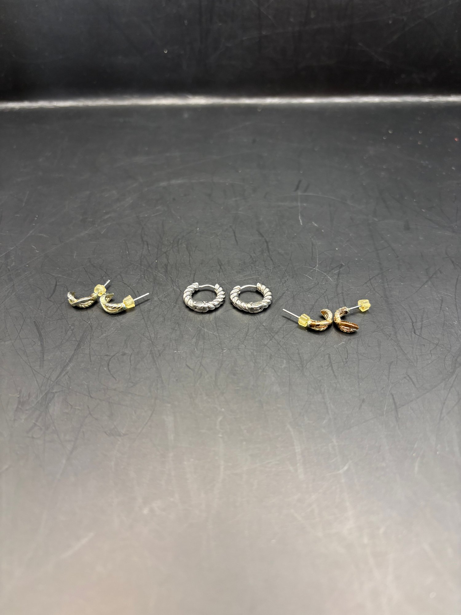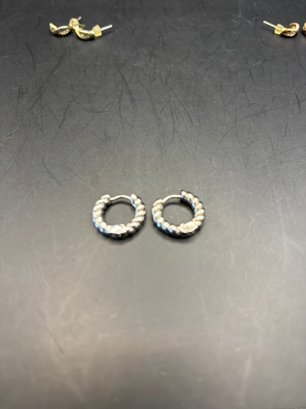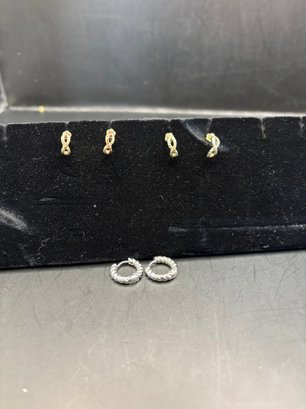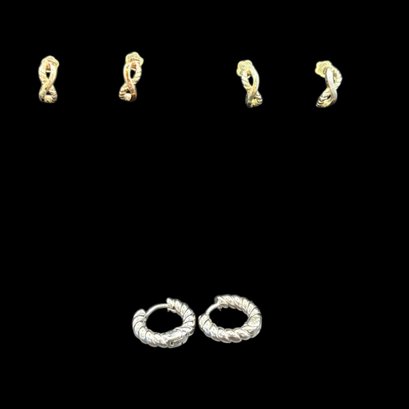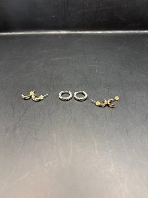 3 Pairs Of Earrings-mini Hoops And 2 Pair Of Half Moon Studs