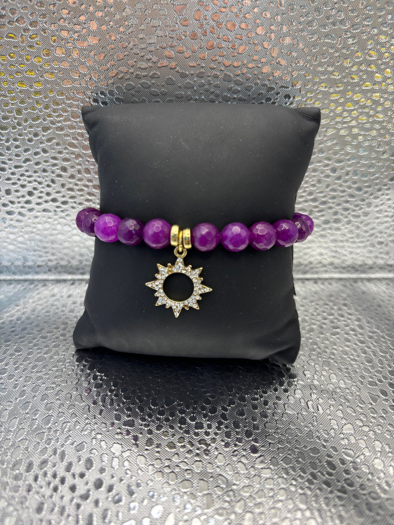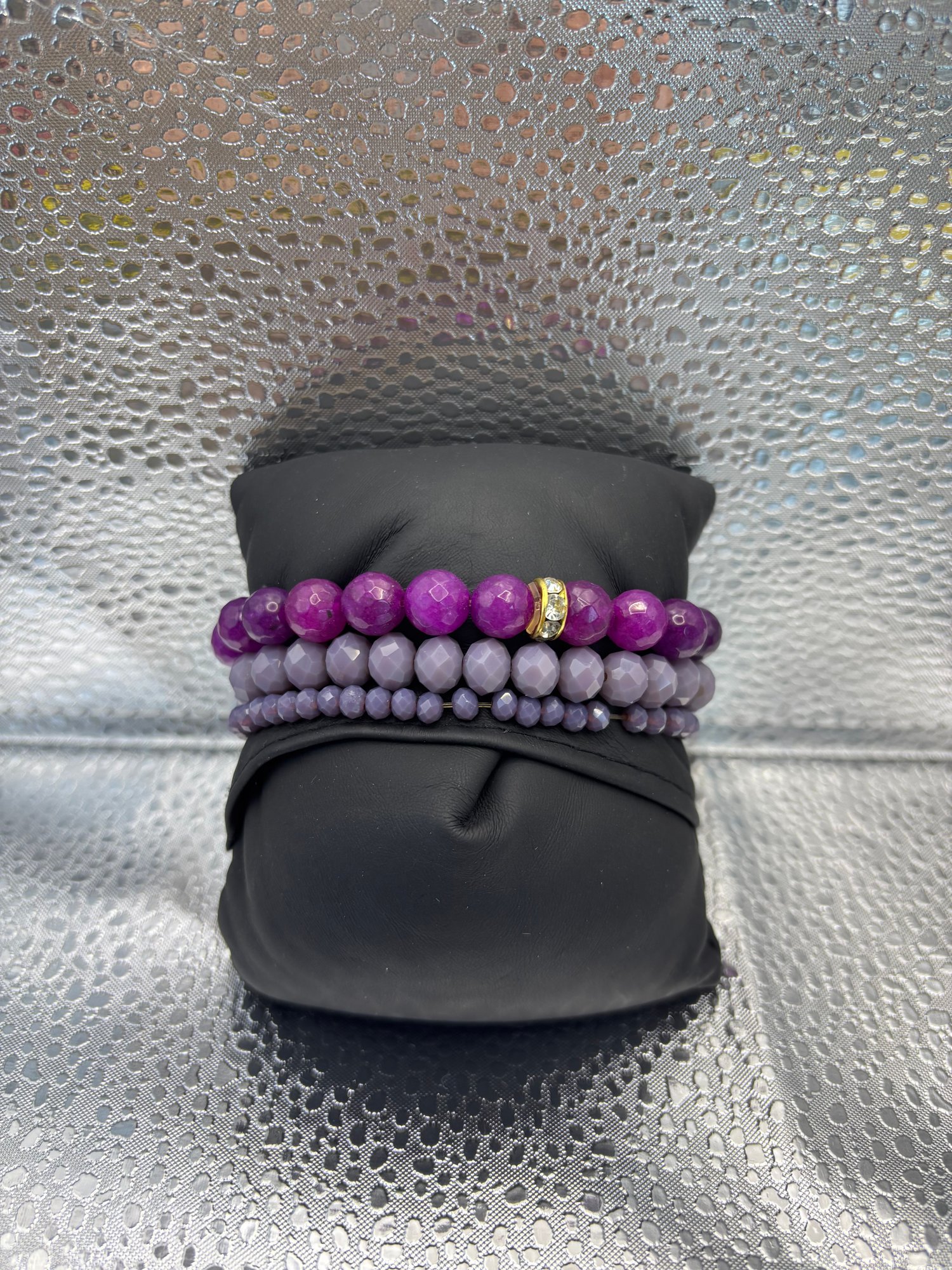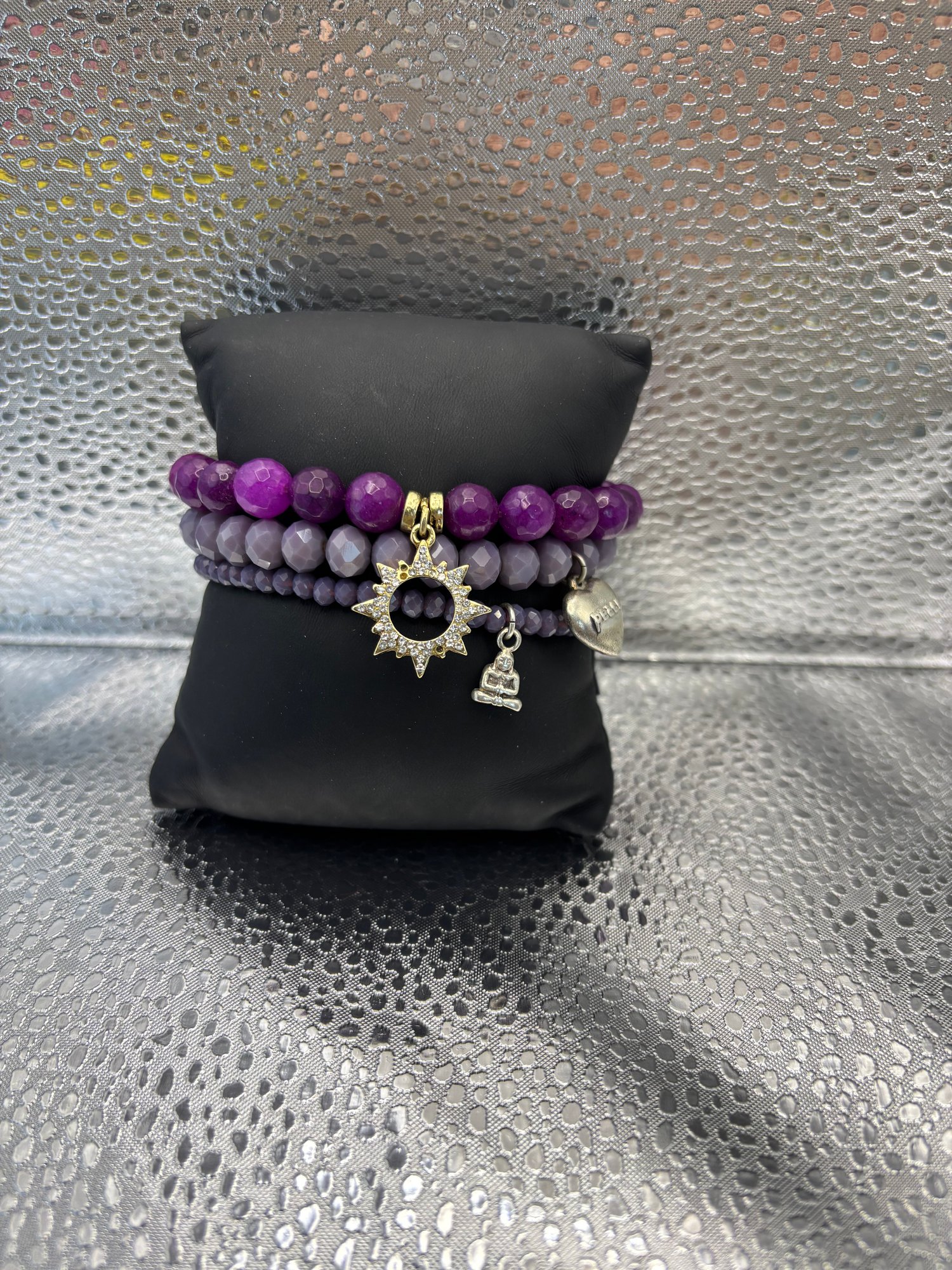 3 Purple Beaded Bracelets With Charms