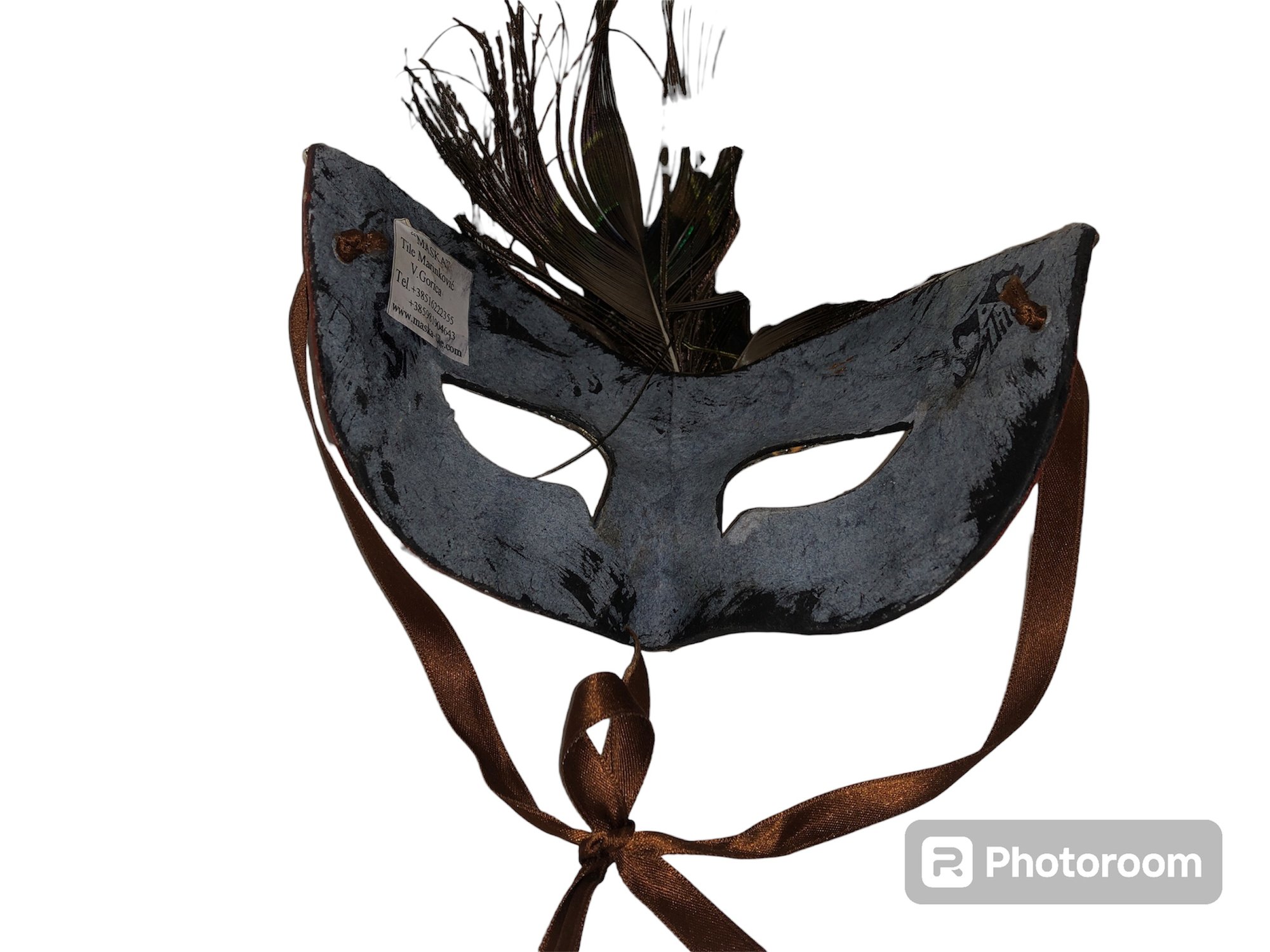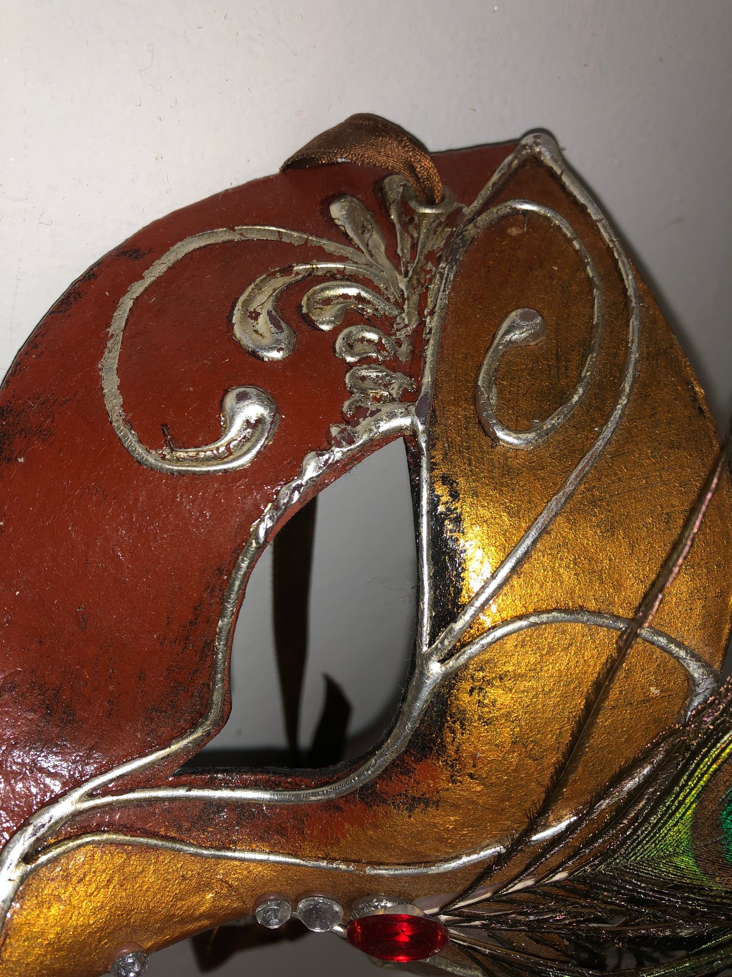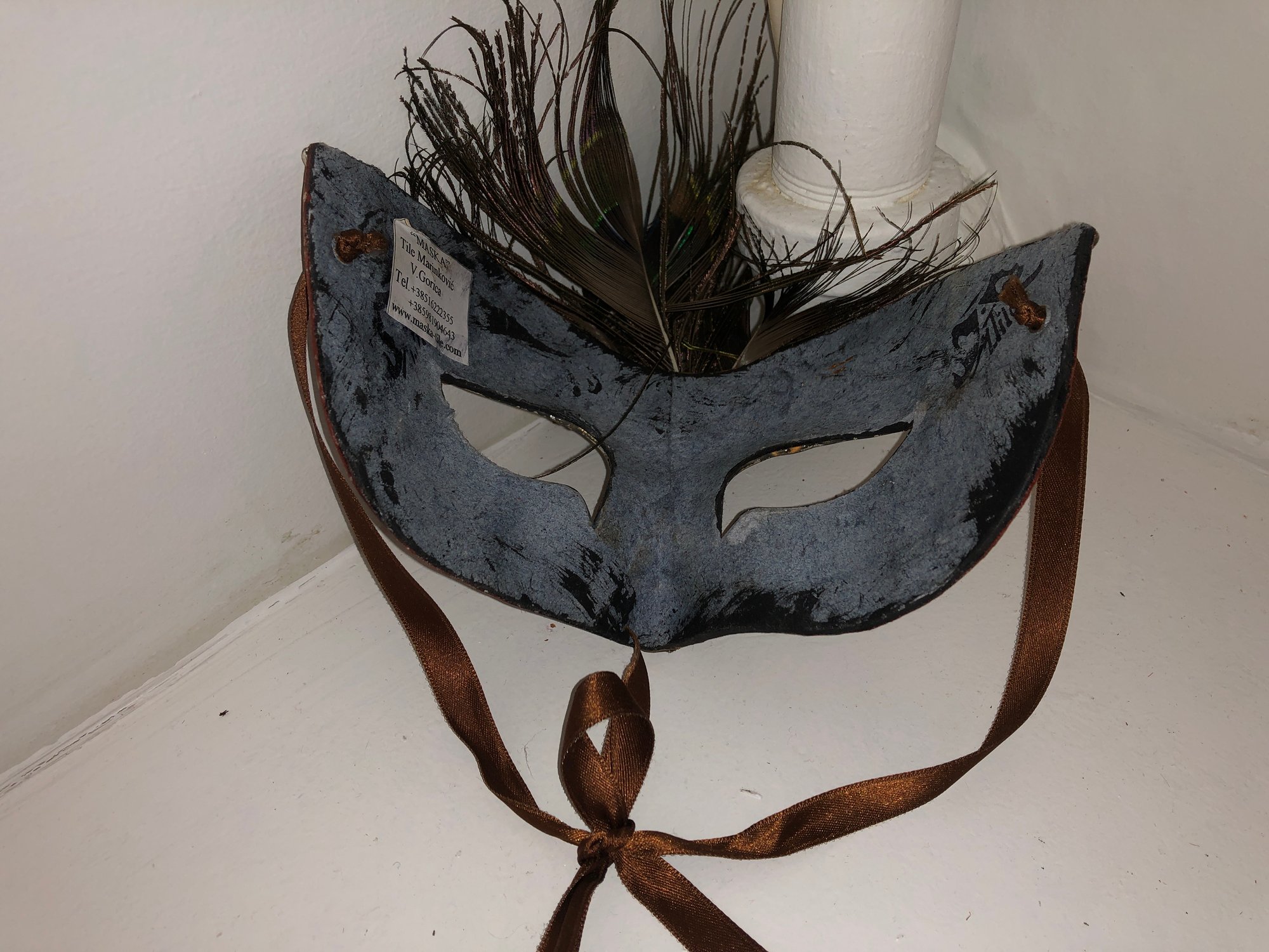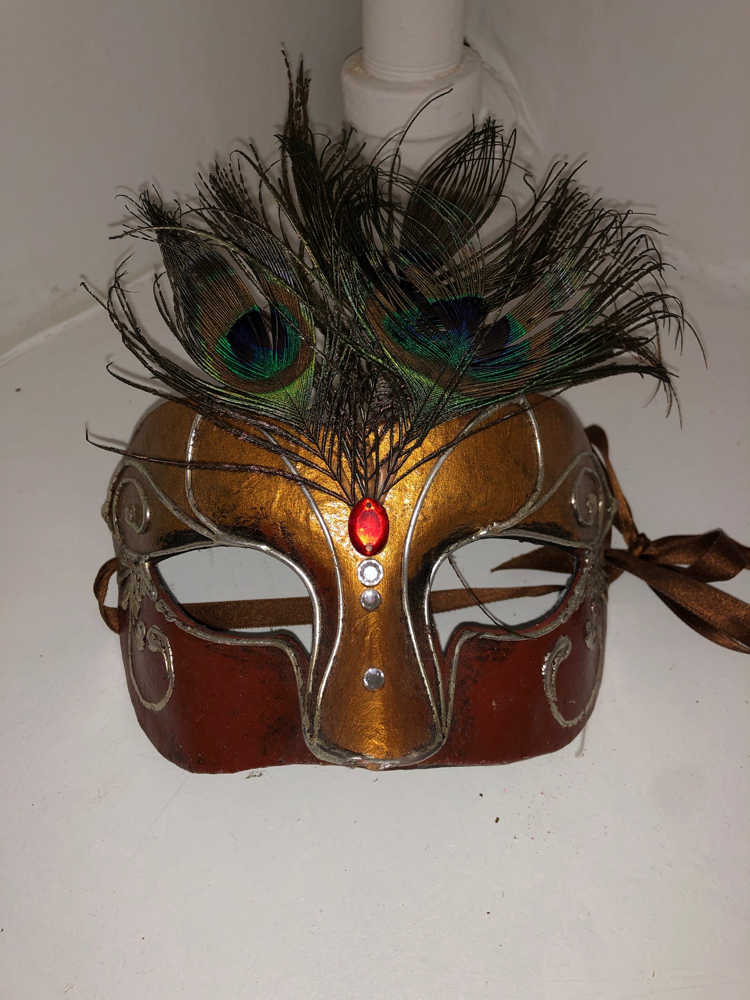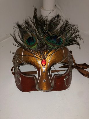 Notes: feather is frail, may need cleaning items are dusty; full mask ribbon is broken