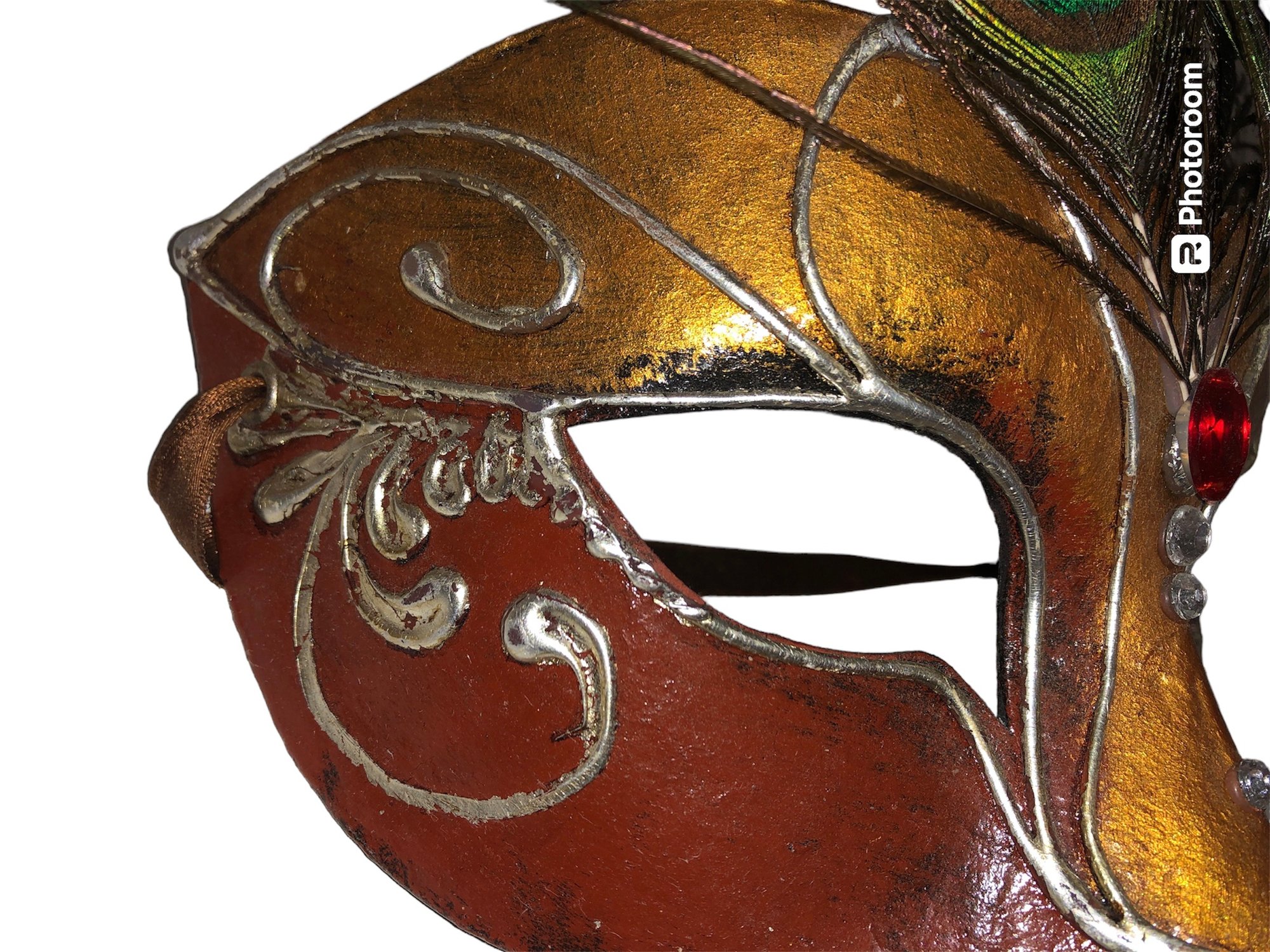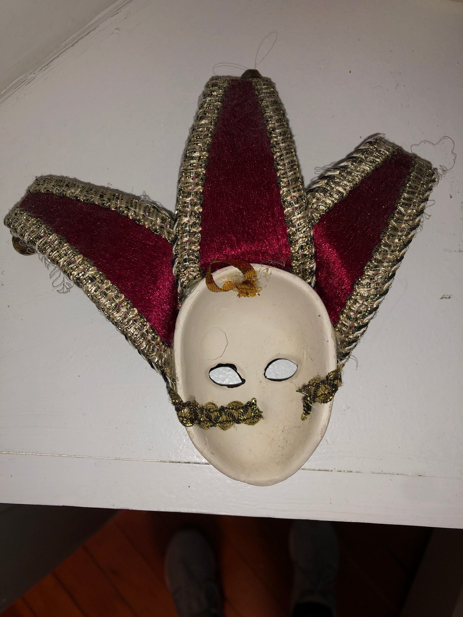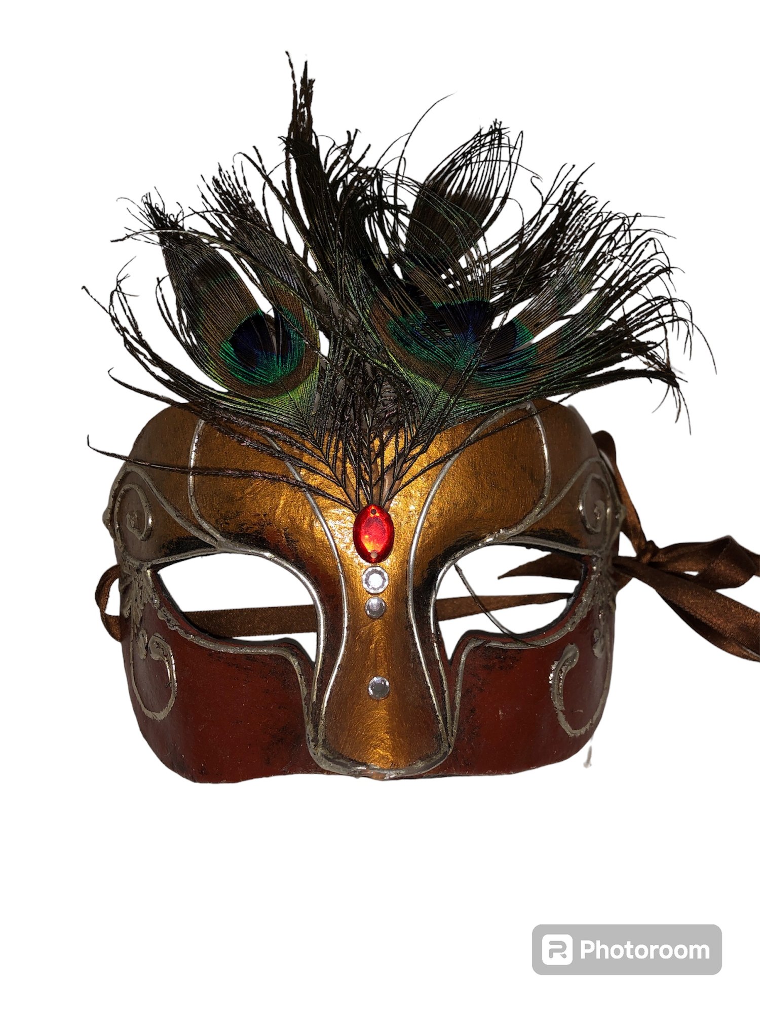 Notes: feather is frail, may need cleaning items are dusty; full mask ribbon is broken