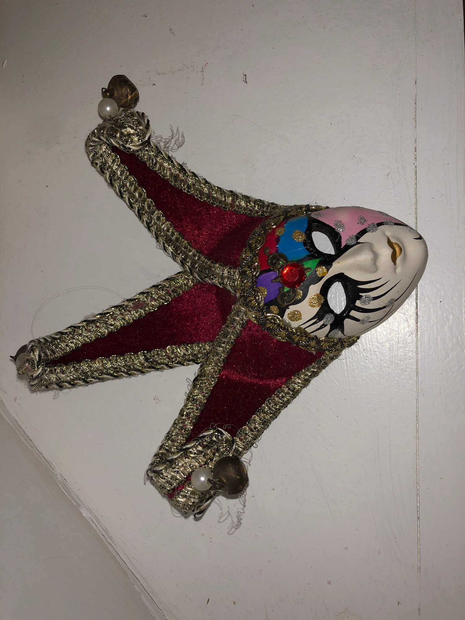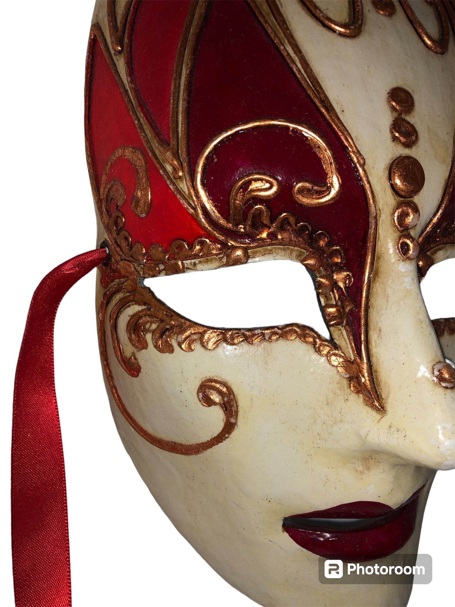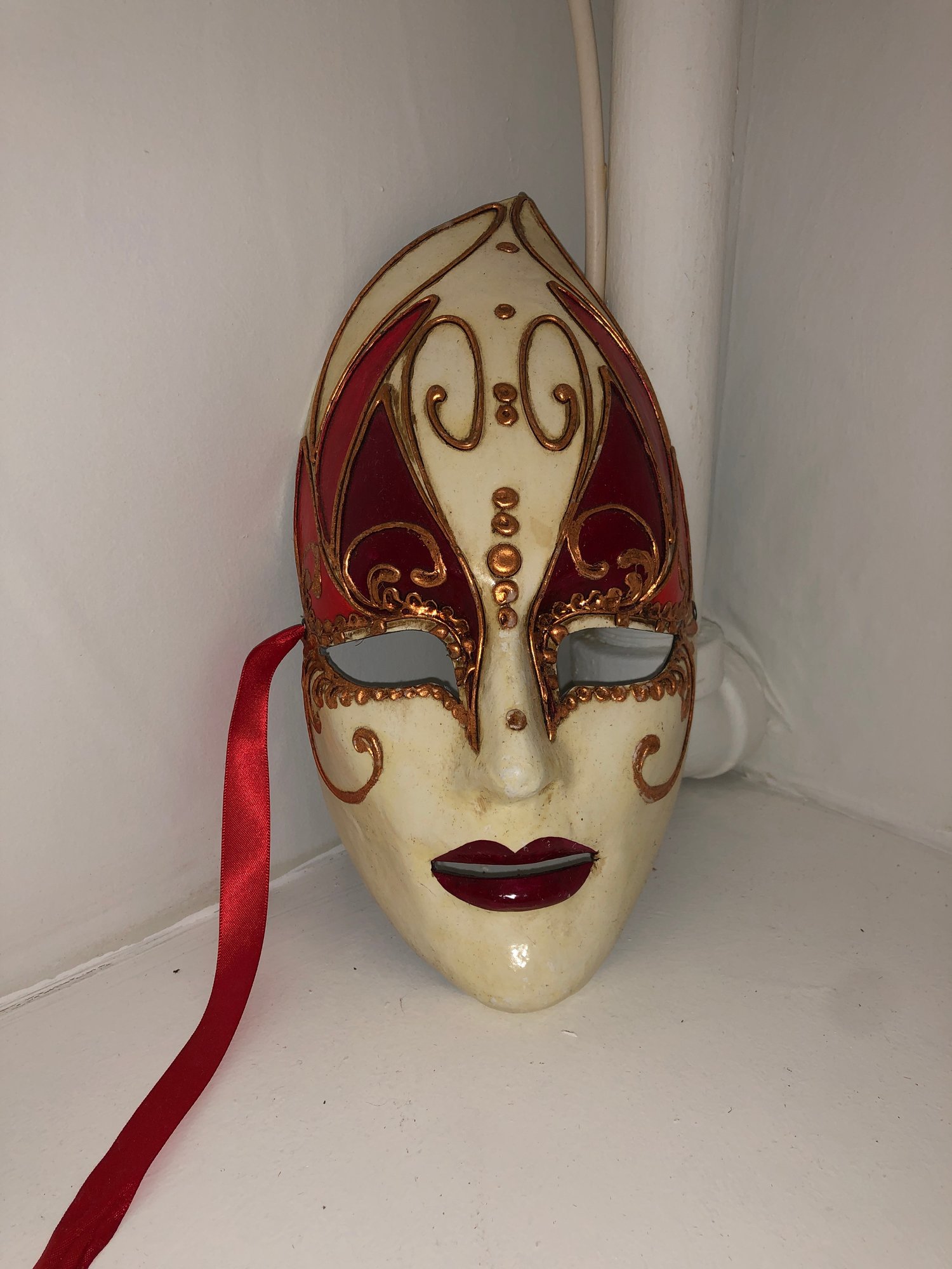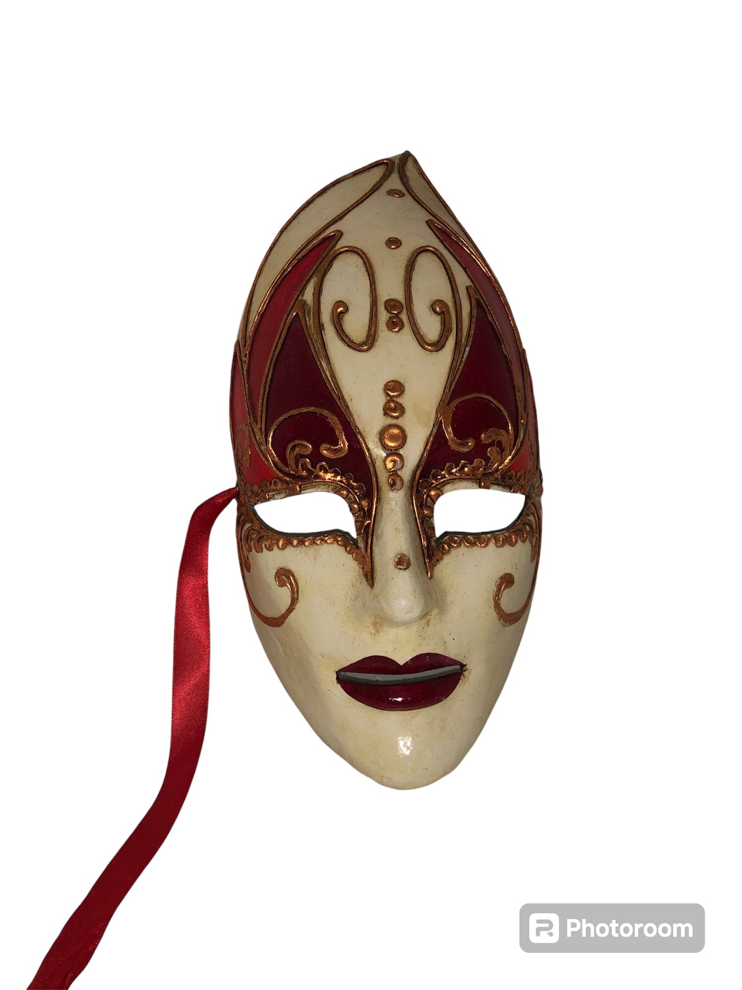 Notes: feather is frail, may need cleaning items are dusty; full mask ribbon is broken