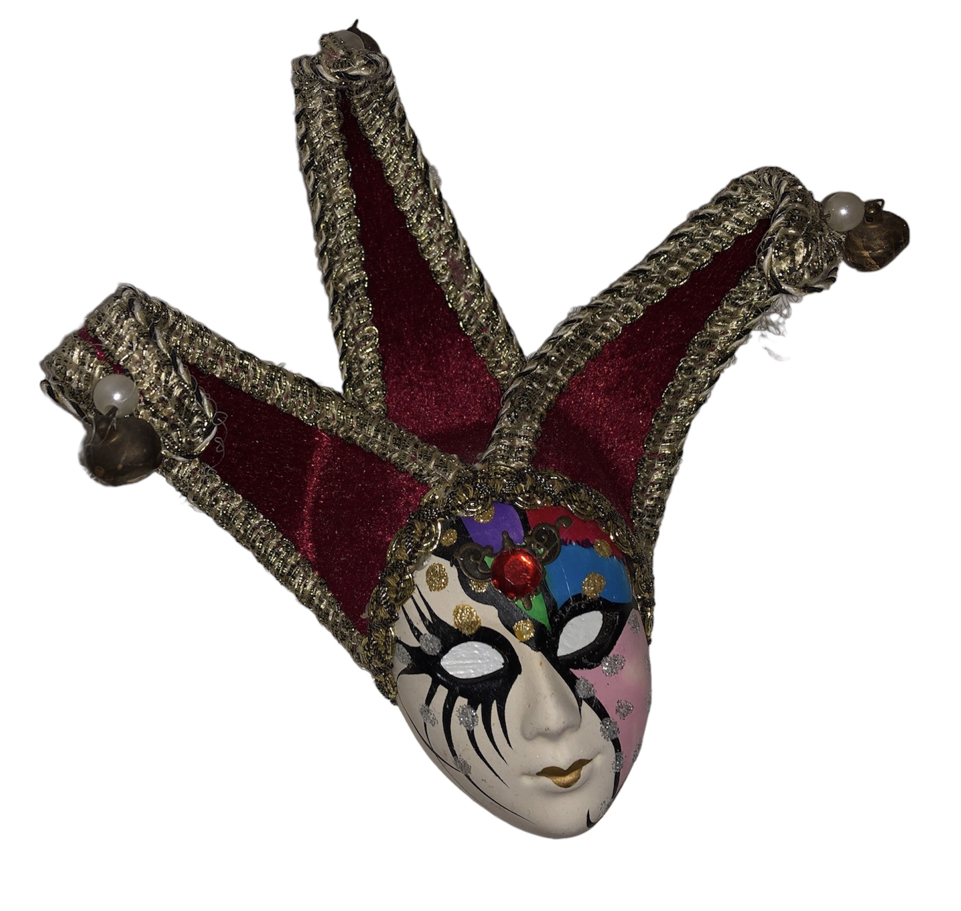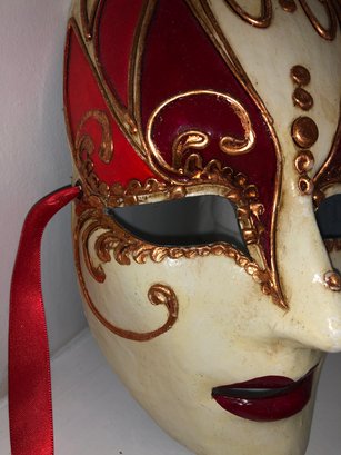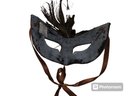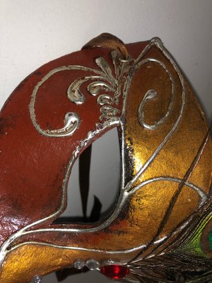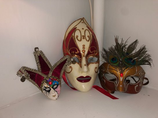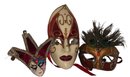 Includes 6" Venetian jester mask; Venetian antique butterfly whole-face mask; Venetian roman peacock feather eye mask