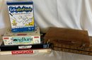 2 Backgammon sets: 1 in leather case and 1 wood inlayed set