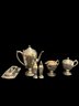 10in kettle, salt and pepper shakers, two teacups, and a butter dish