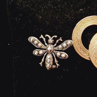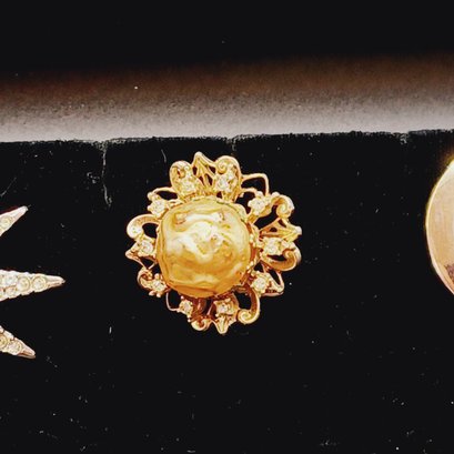 Large pear has rhinestones; Hallmarked H. Romerantz & Co