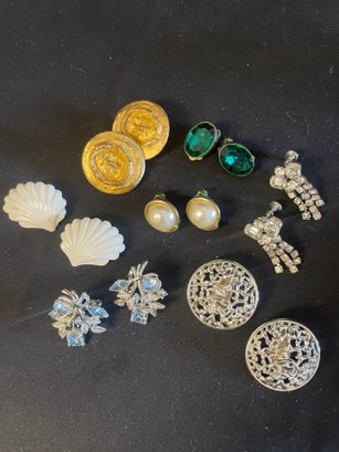 6 pairs of costume clip back earrings, 1 pair of screw back earrings