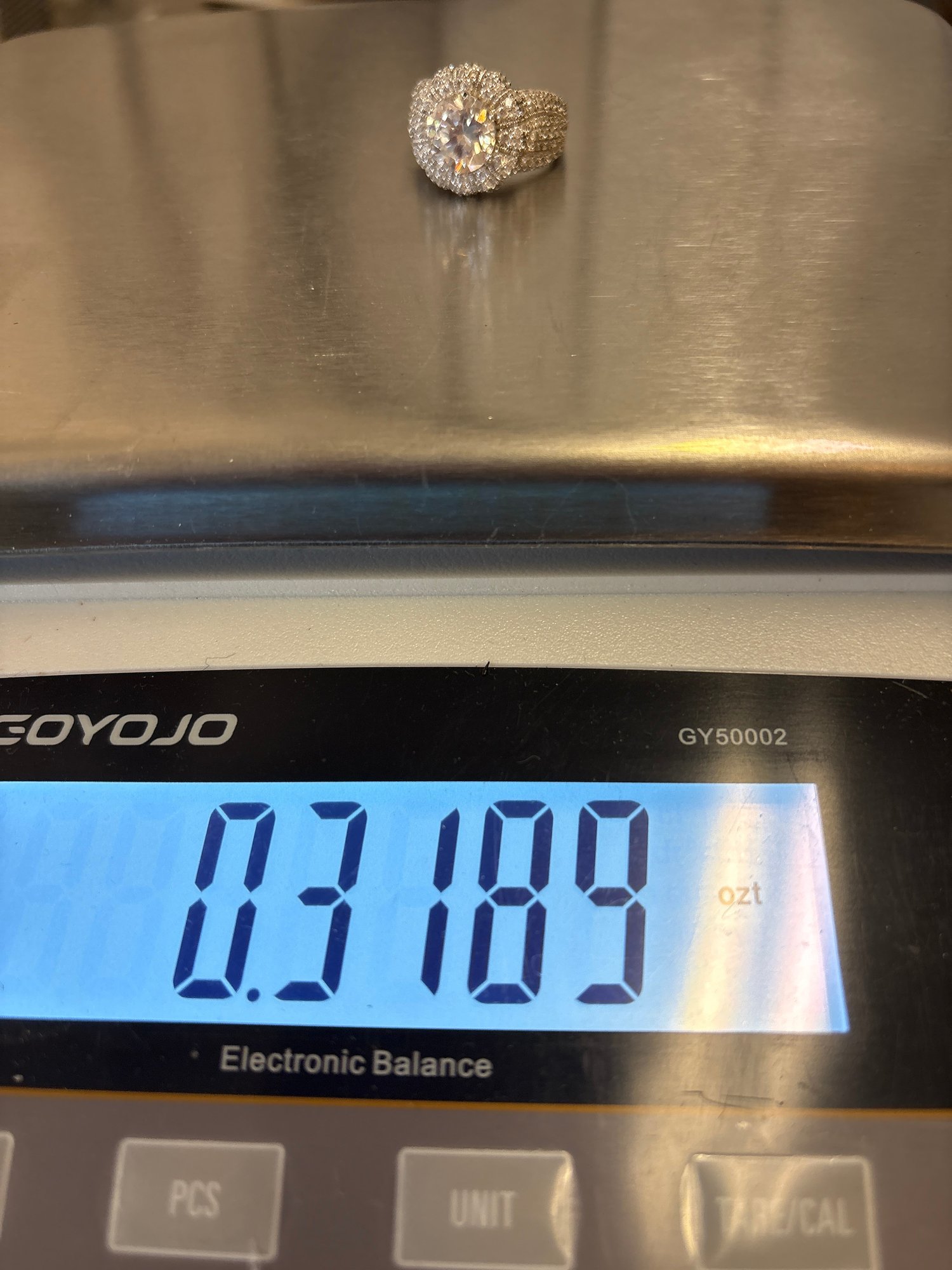 925 cubic zirconia ring, size 7; weight is 0.3189. Like new