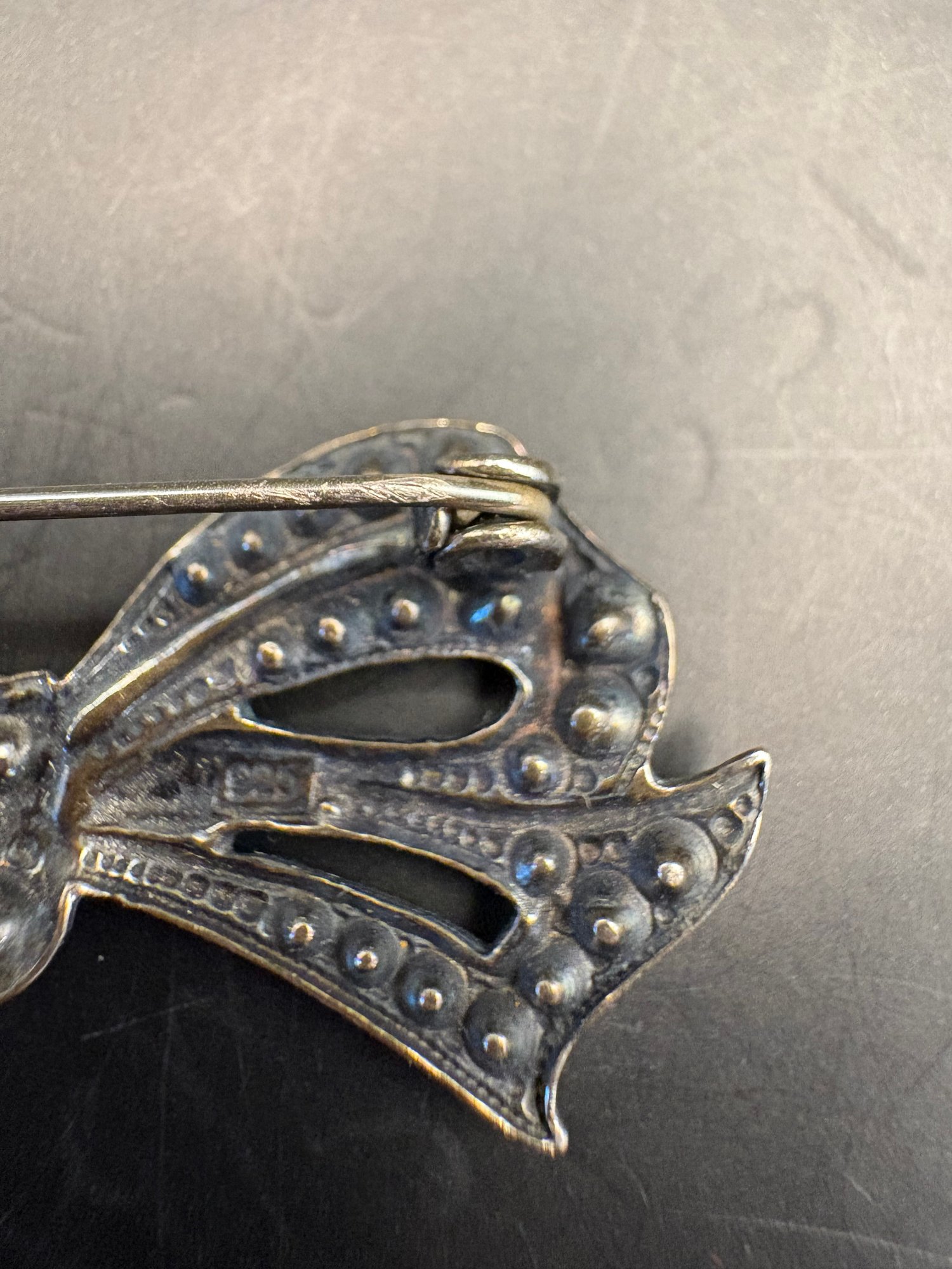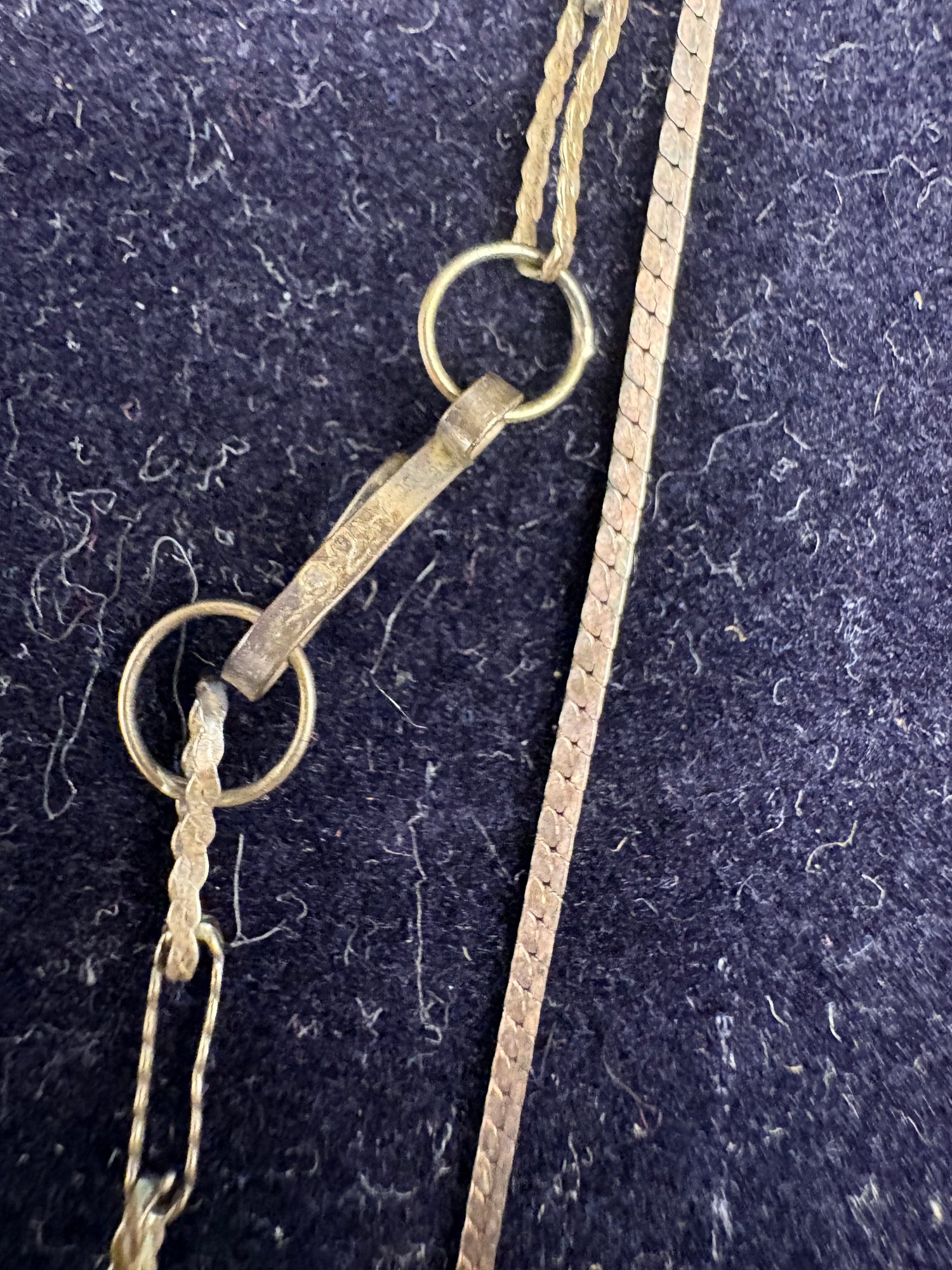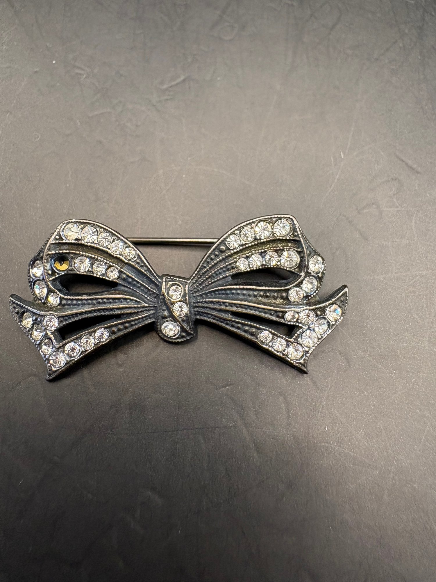 Sterling silver: there’s two necklaces, a bow pin missing a gem and there’s two charms: one is a Sweet 16 and the other one, a butterfly, is also sterling. So it’s all sterling the weight is 0.5259