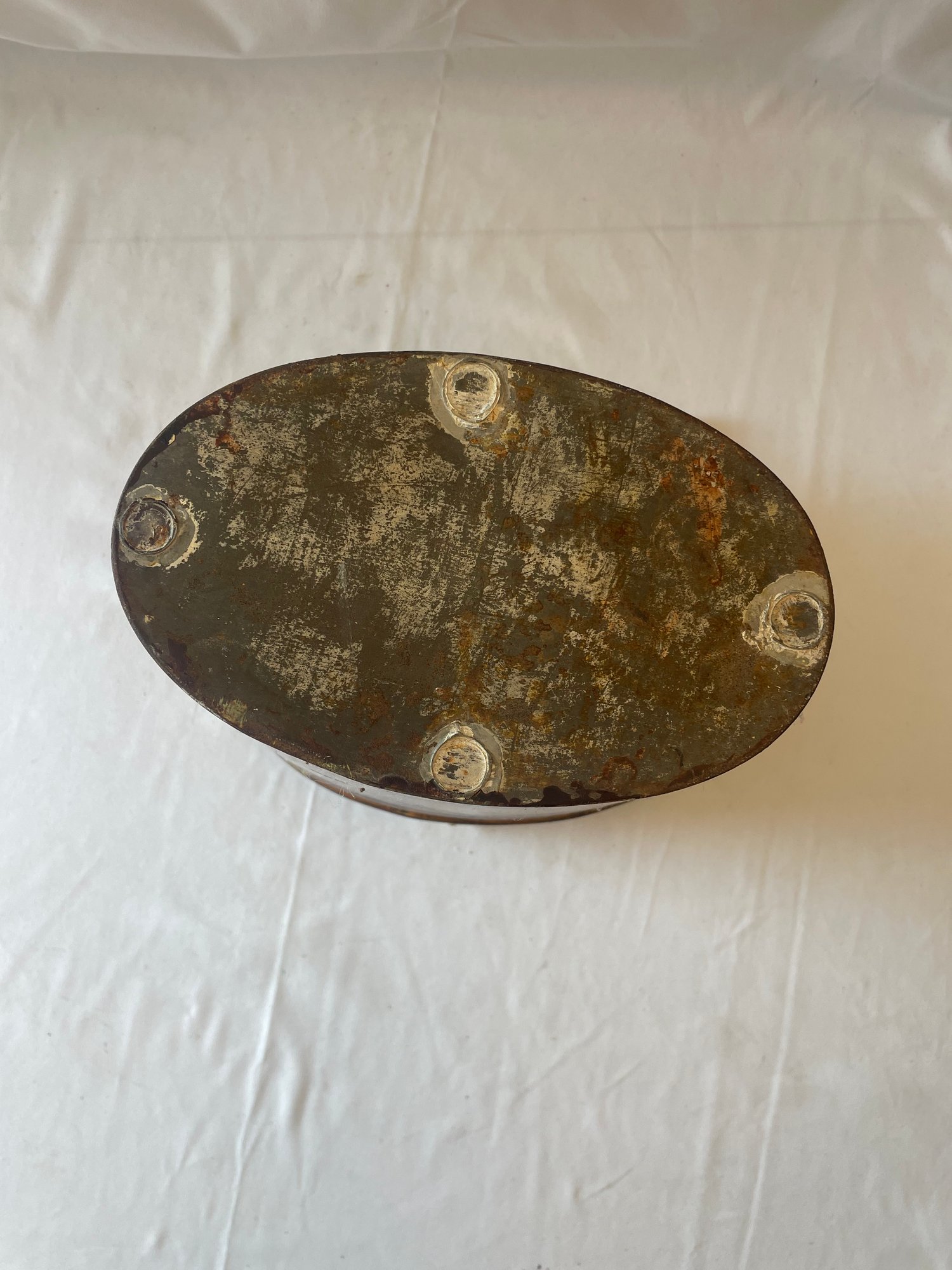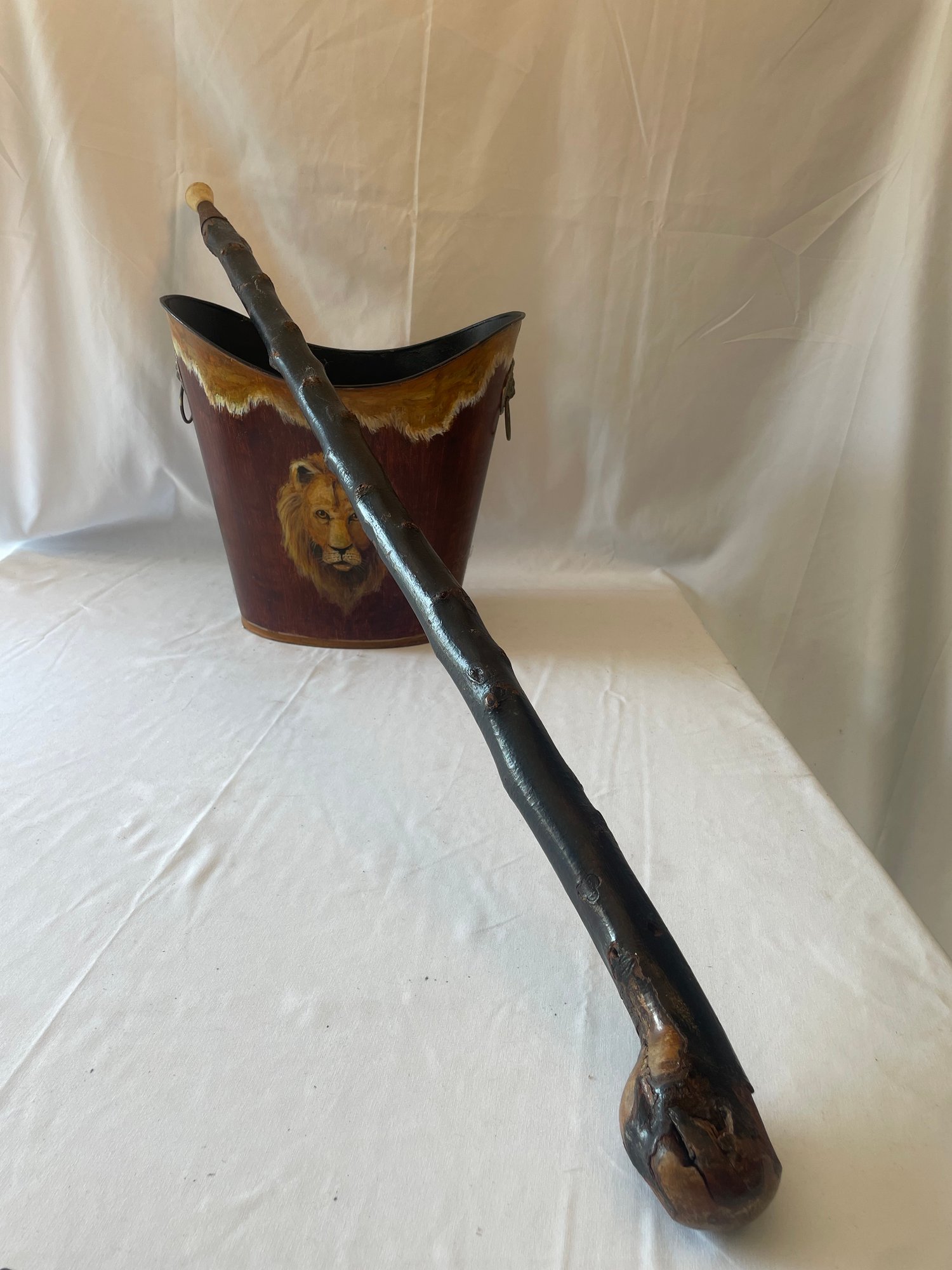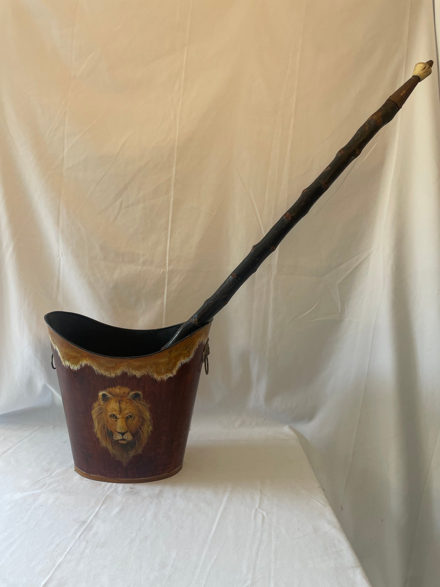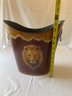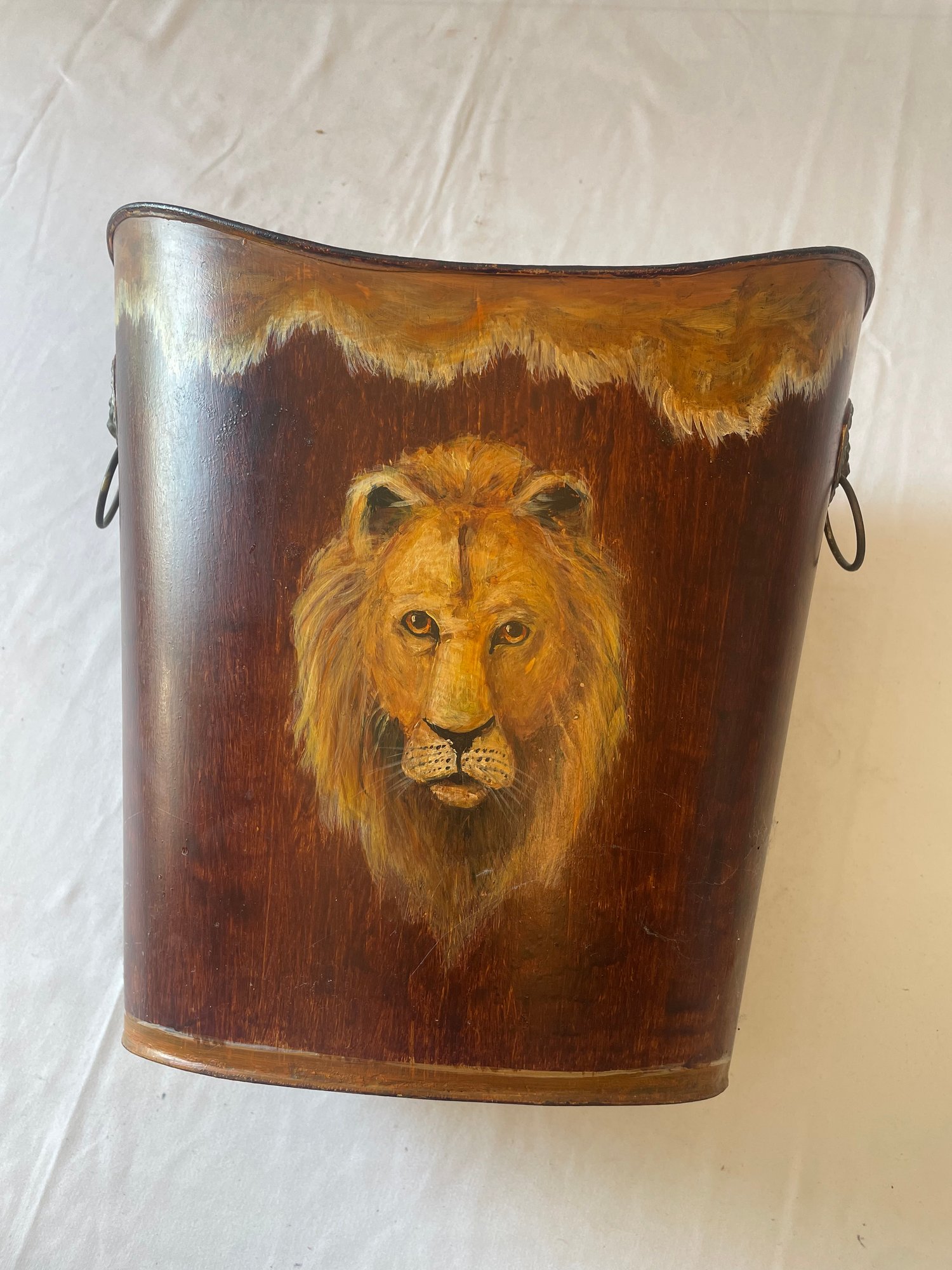 • Fine painted tin wastebasket with portrait of male Lion