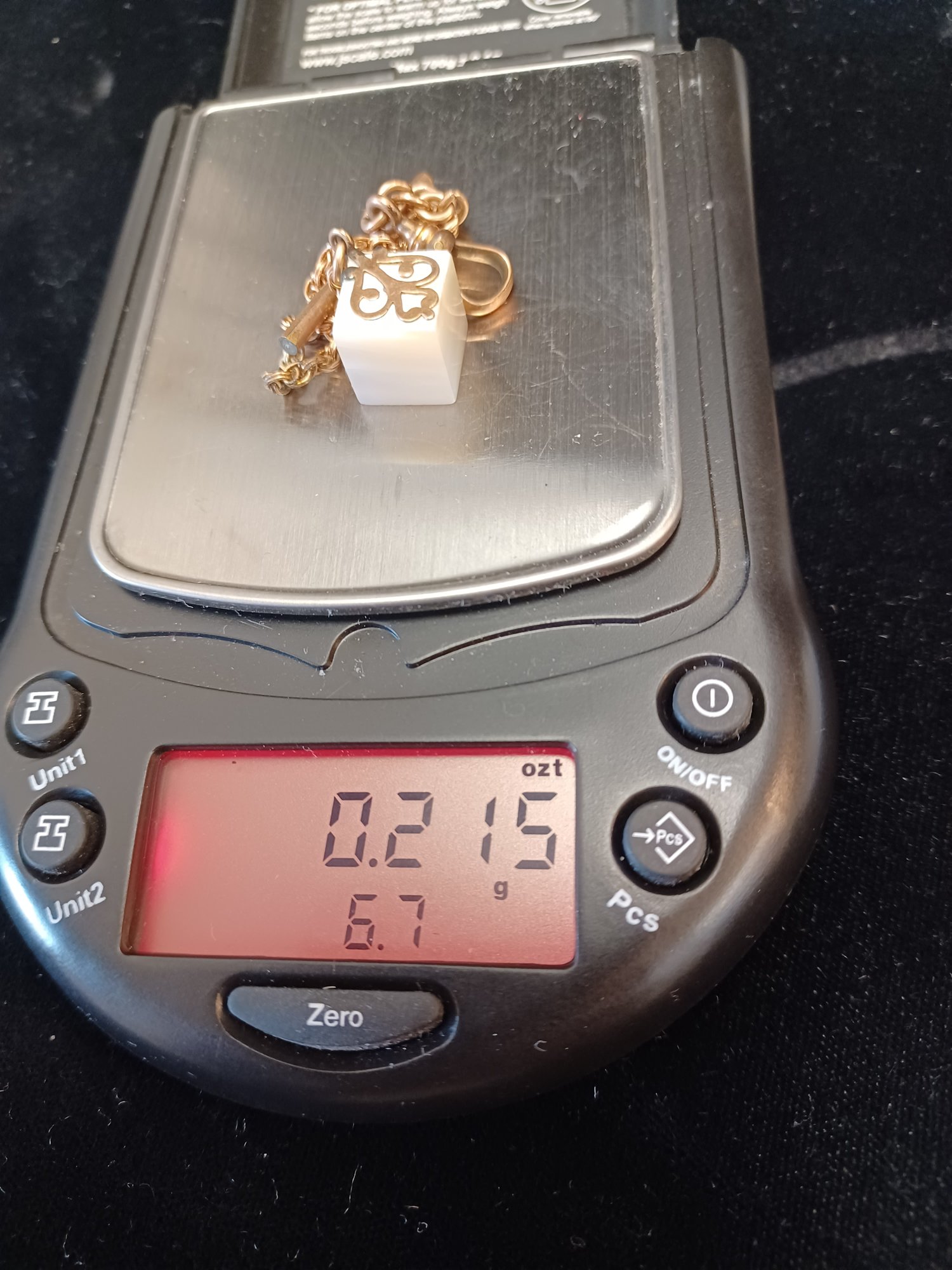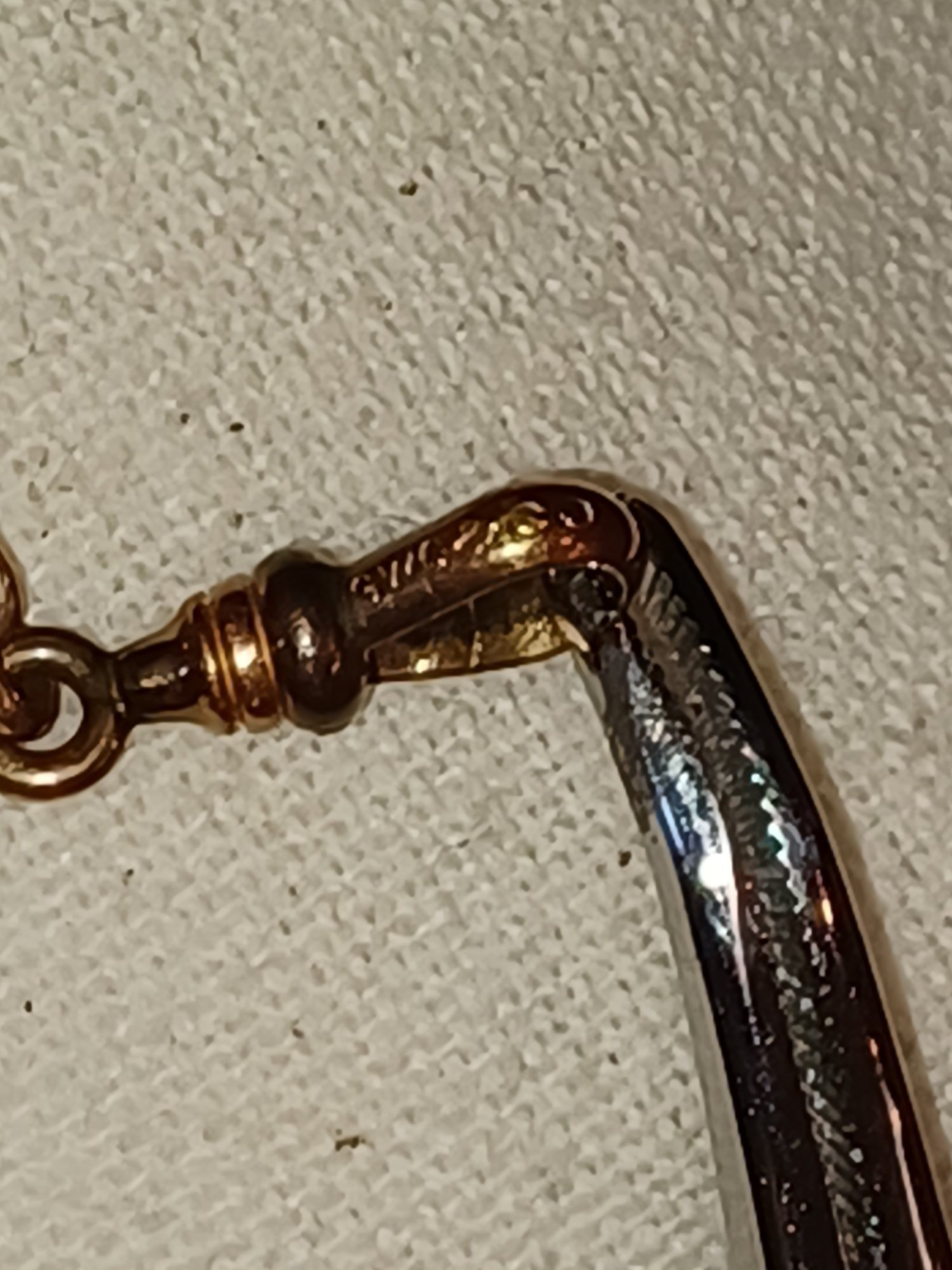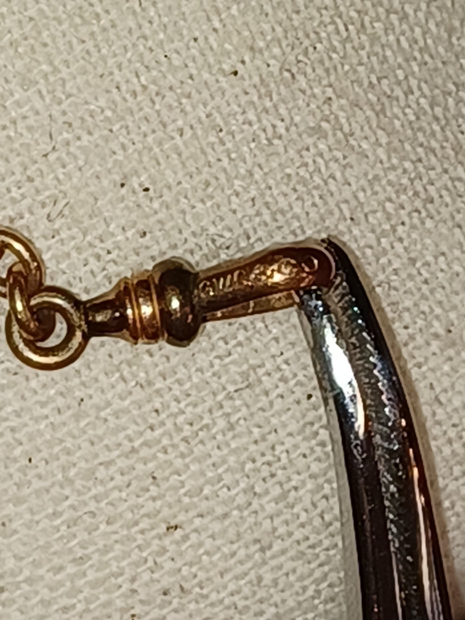 *some other hallmark, maybe Jeweler mark is on the 3-ring 'clover' attachment; doesn't come through in photos
