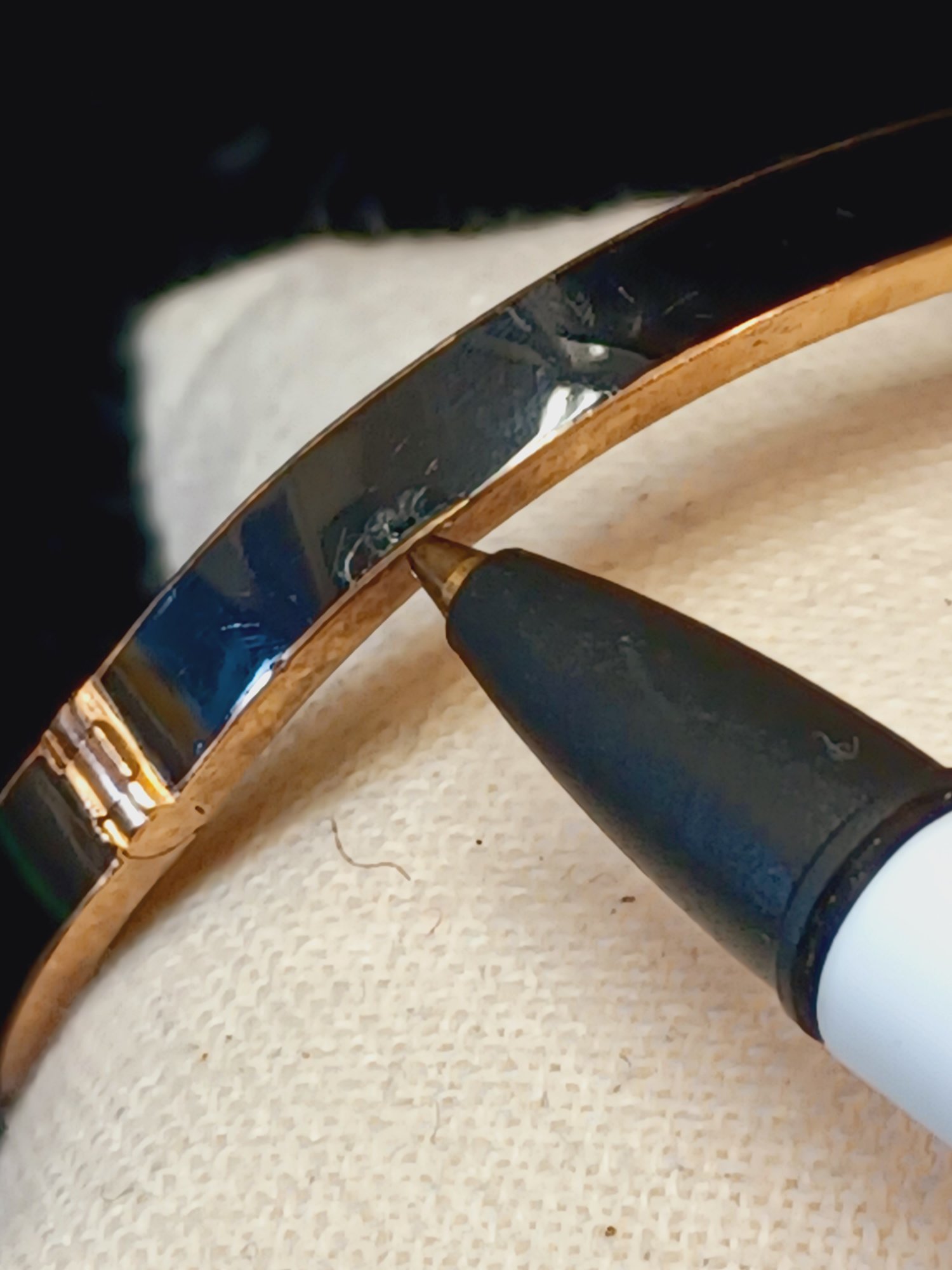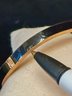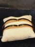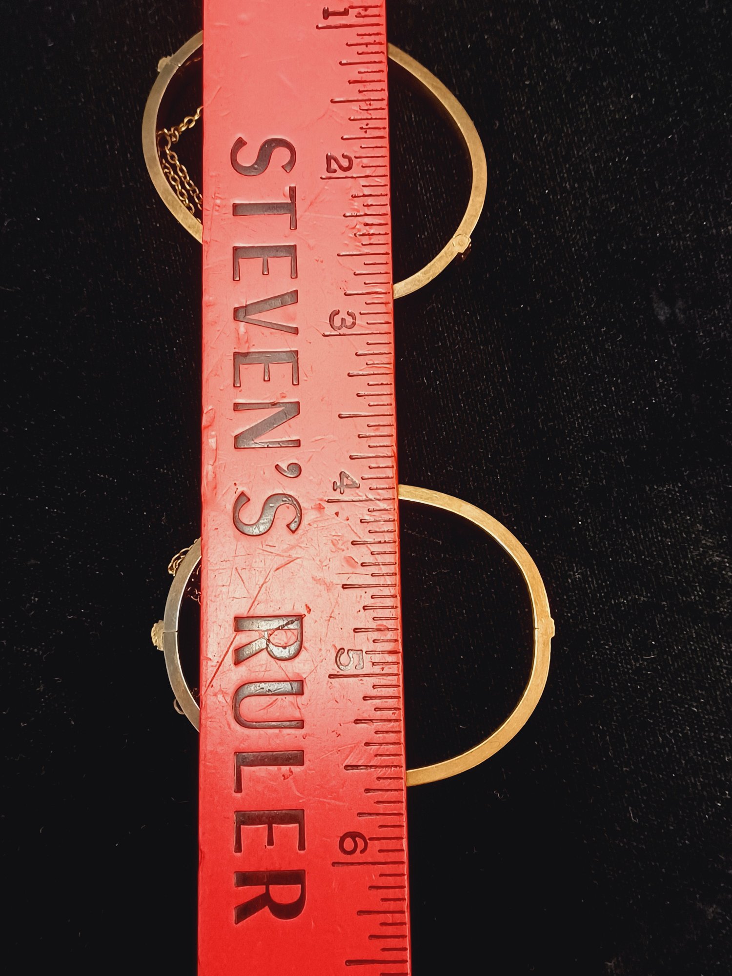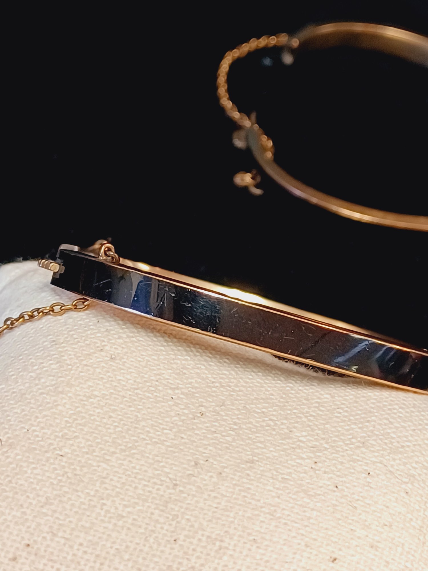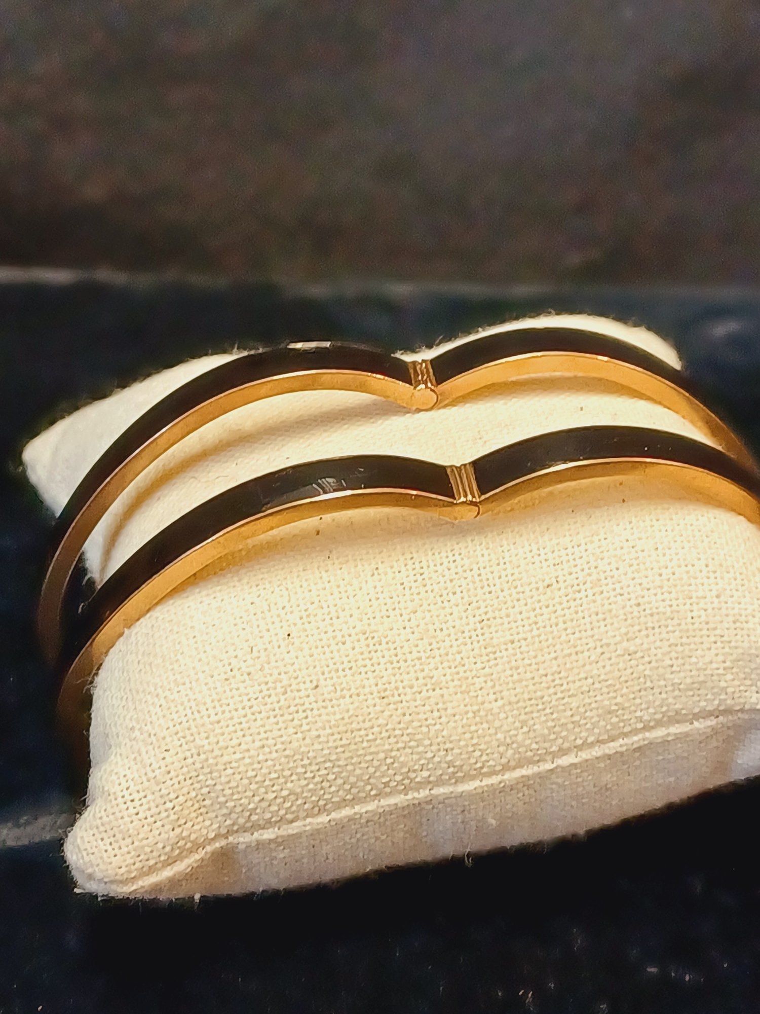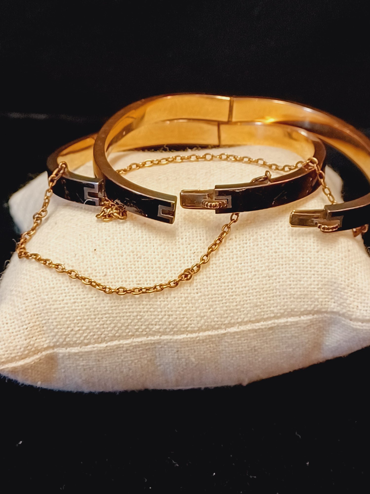 Beautiful pair of gold and onyx bracelets; attached chains; these are for very small wrists; ** some scratches and chips, see pics
