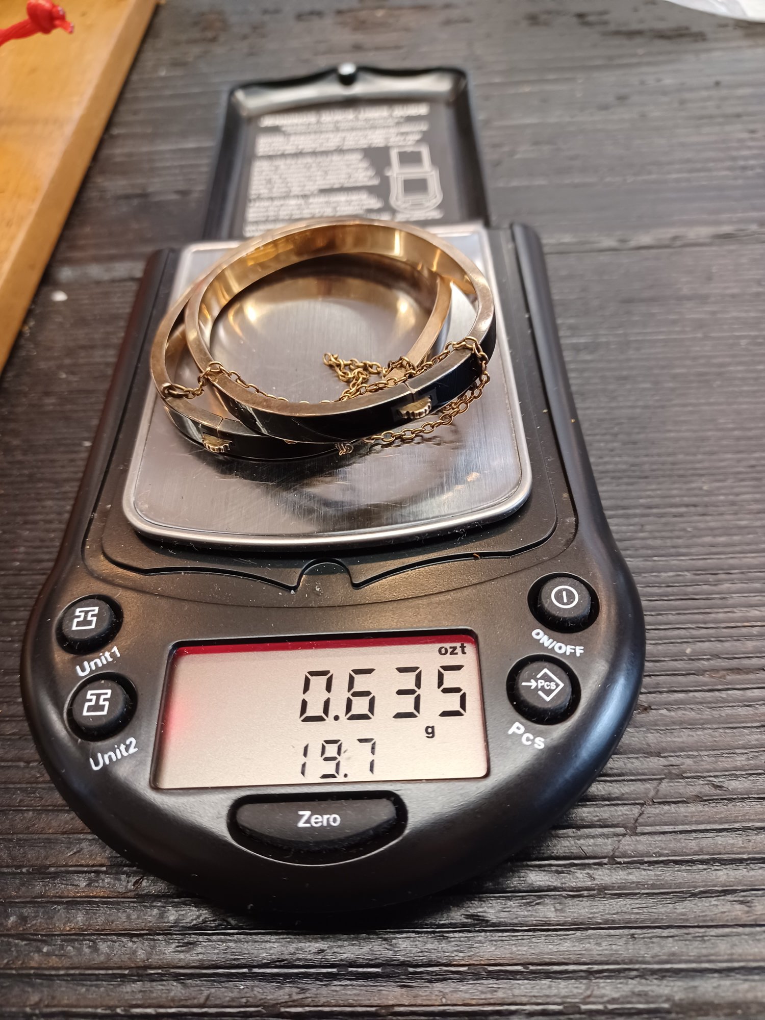 No purity or maker's marks, scratch/ acid tested; Weighed at 19.7g