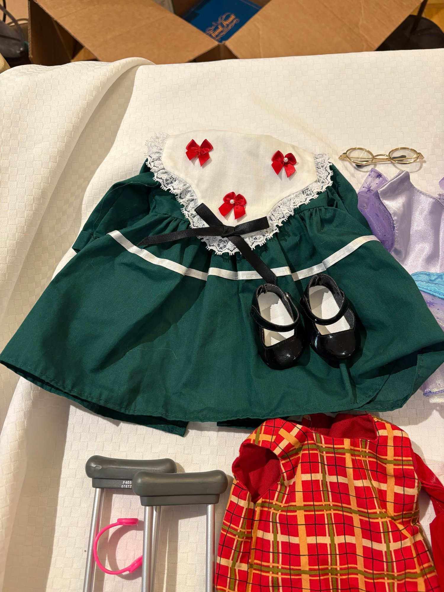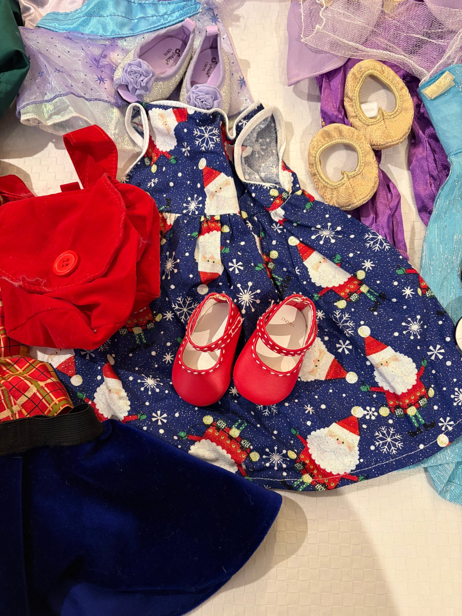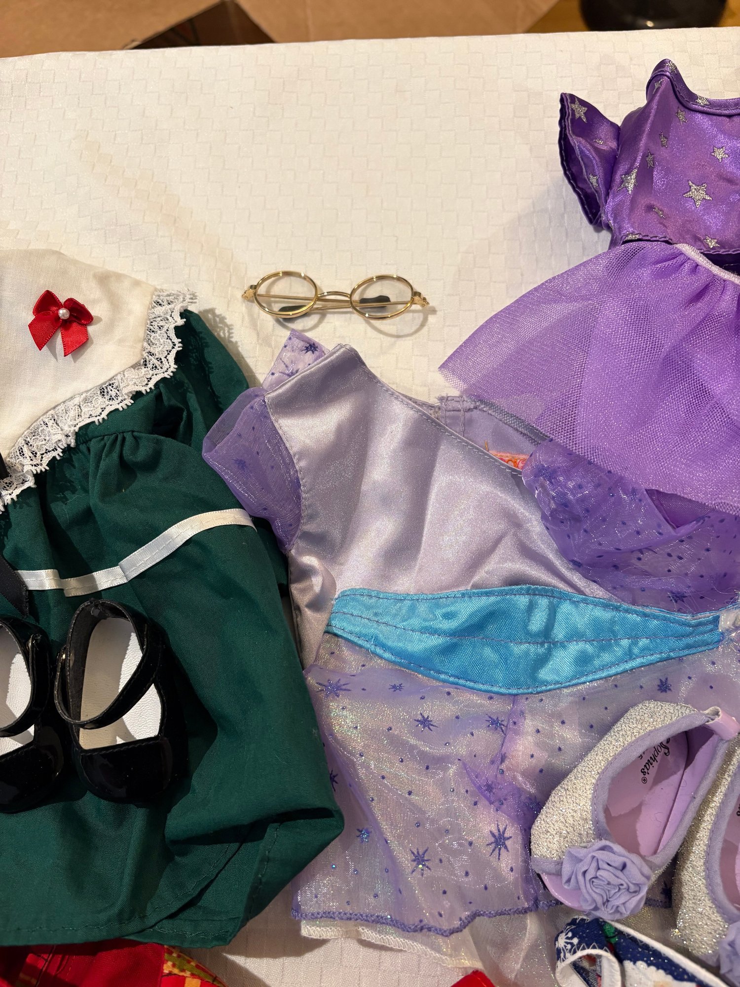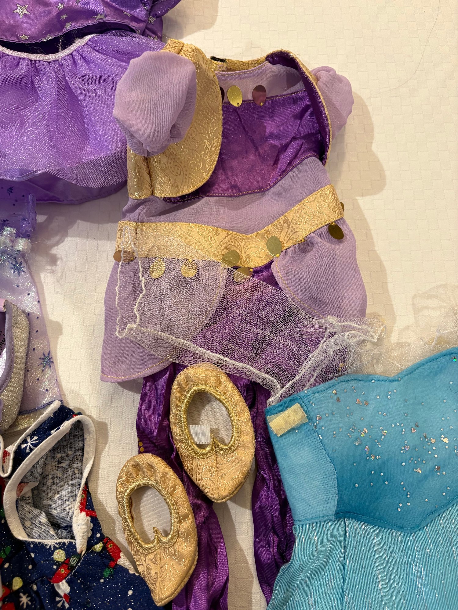american doll clothes, mixed handmade doll clothes also. this lot has american girl costumes for princesses but a lot was homemade doll clothes.