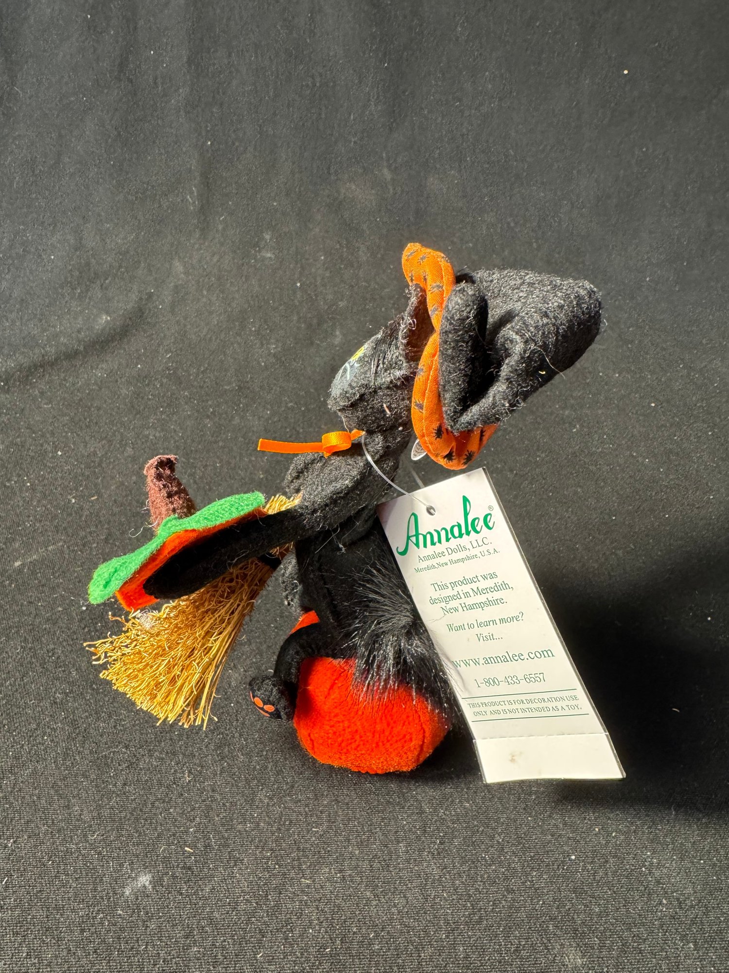 Annalee Halloween Black Cat Witch On Pumpkin Figurine