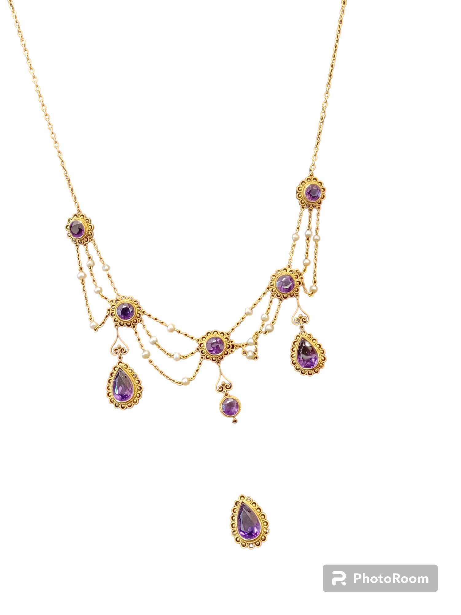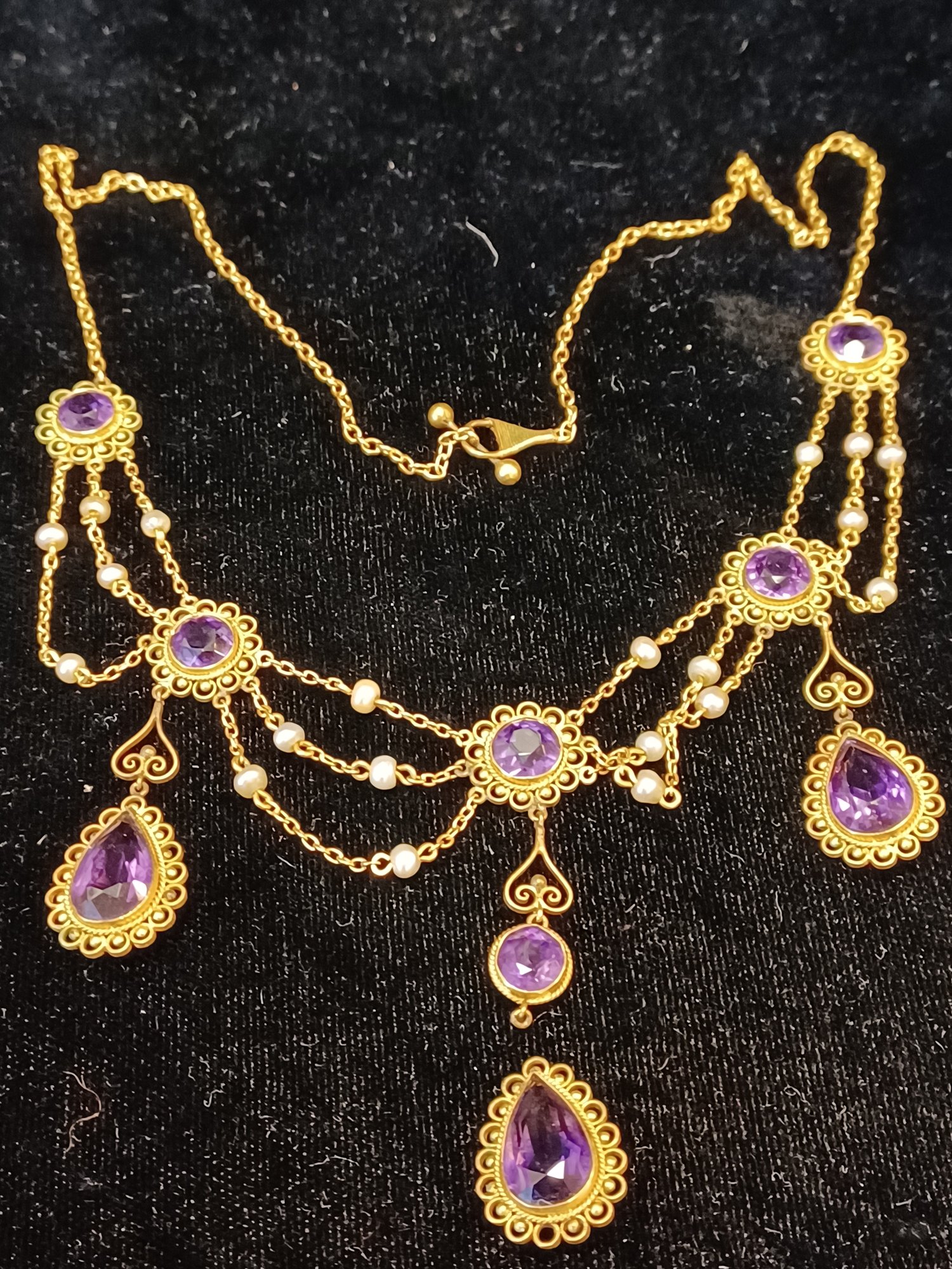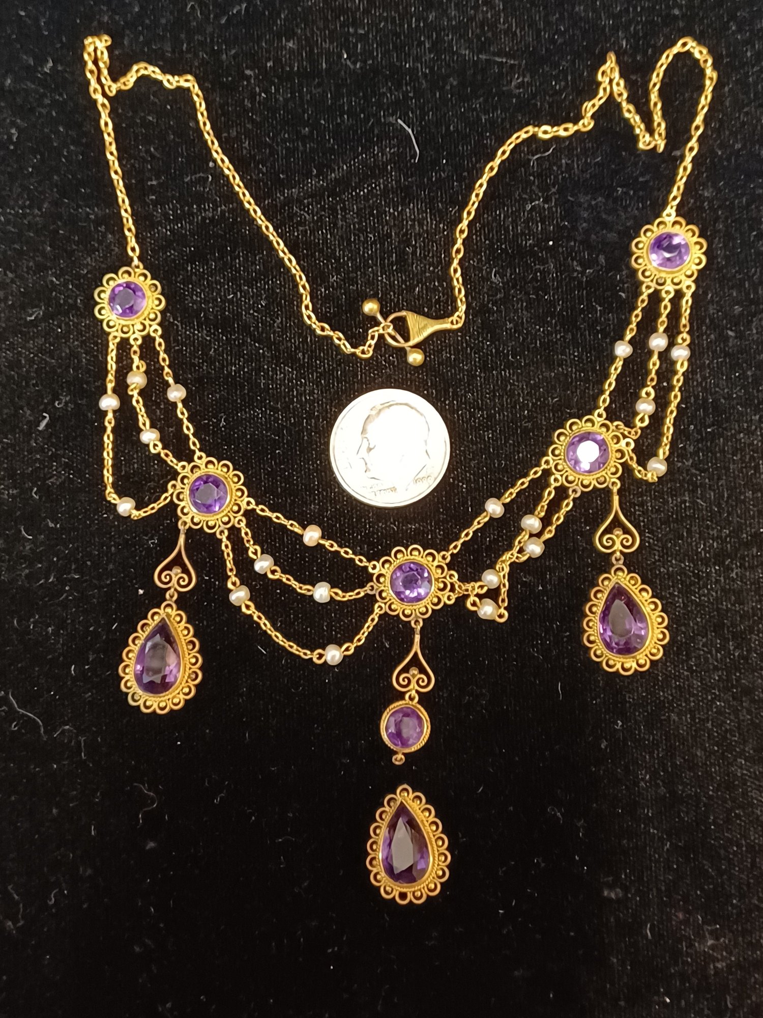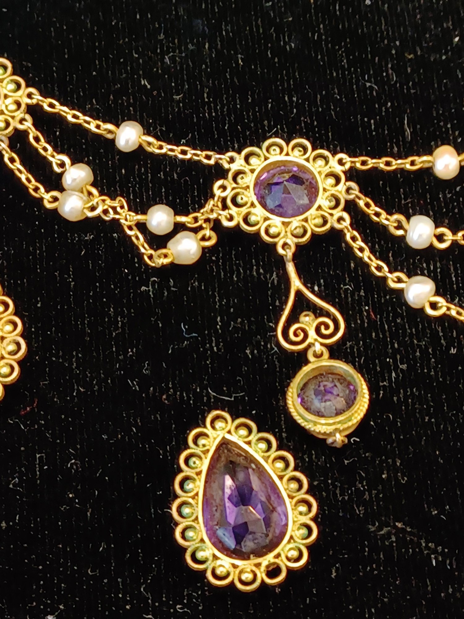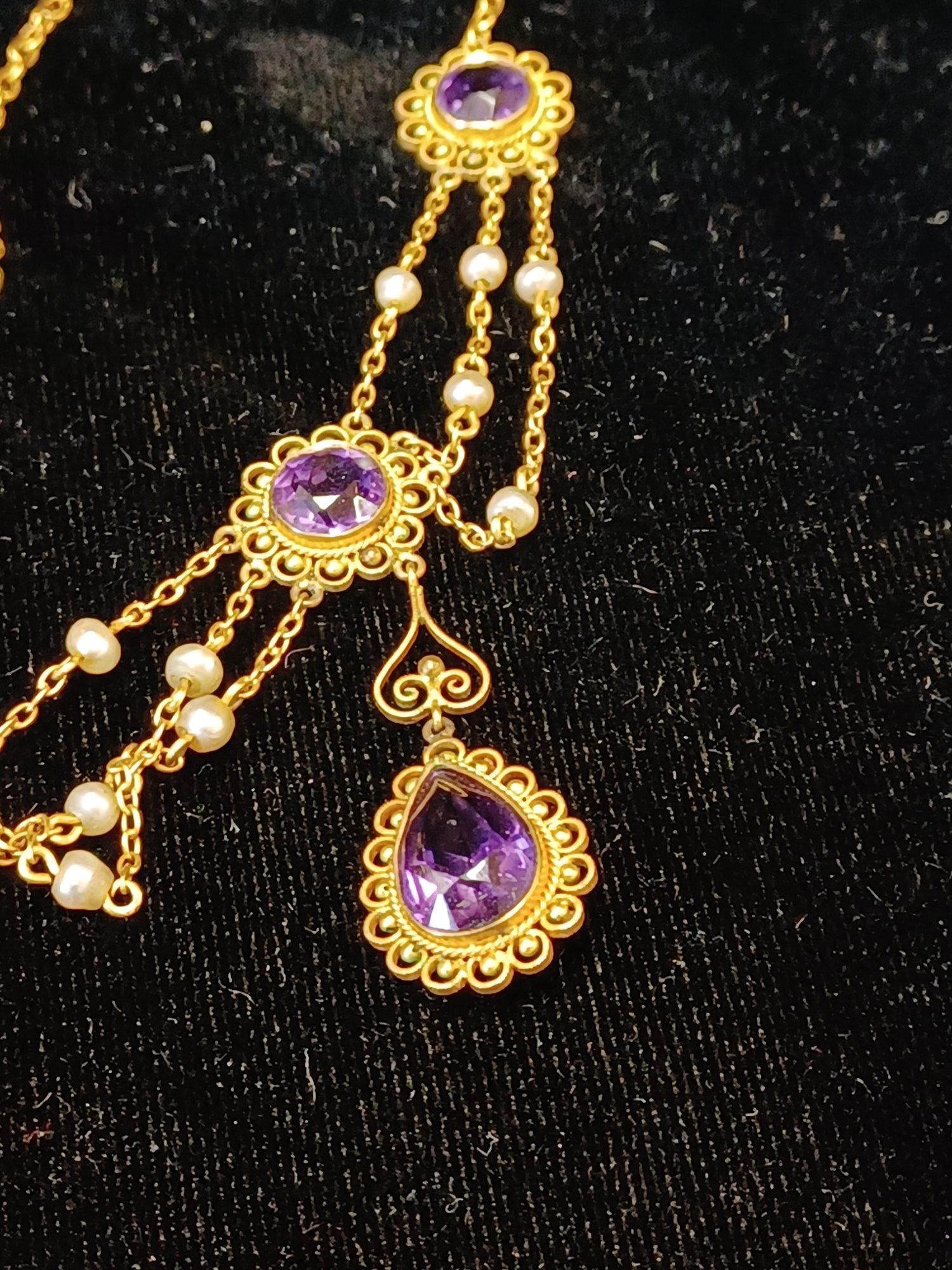 14k gold, real pearl & amethyst