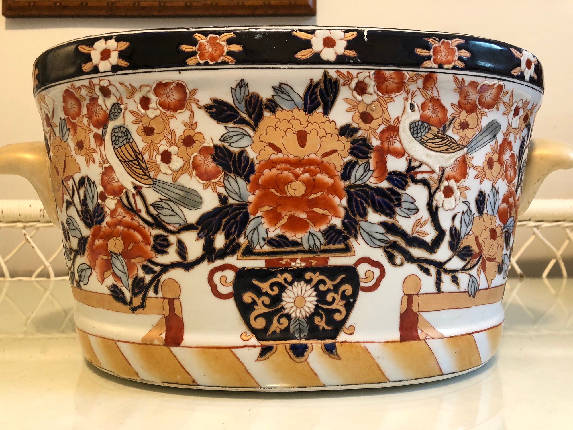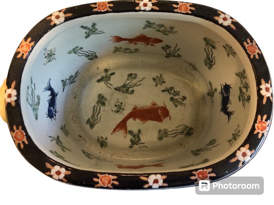 Japanese Meiji Imari Porcelain handheld planter with coy fish accents on interior