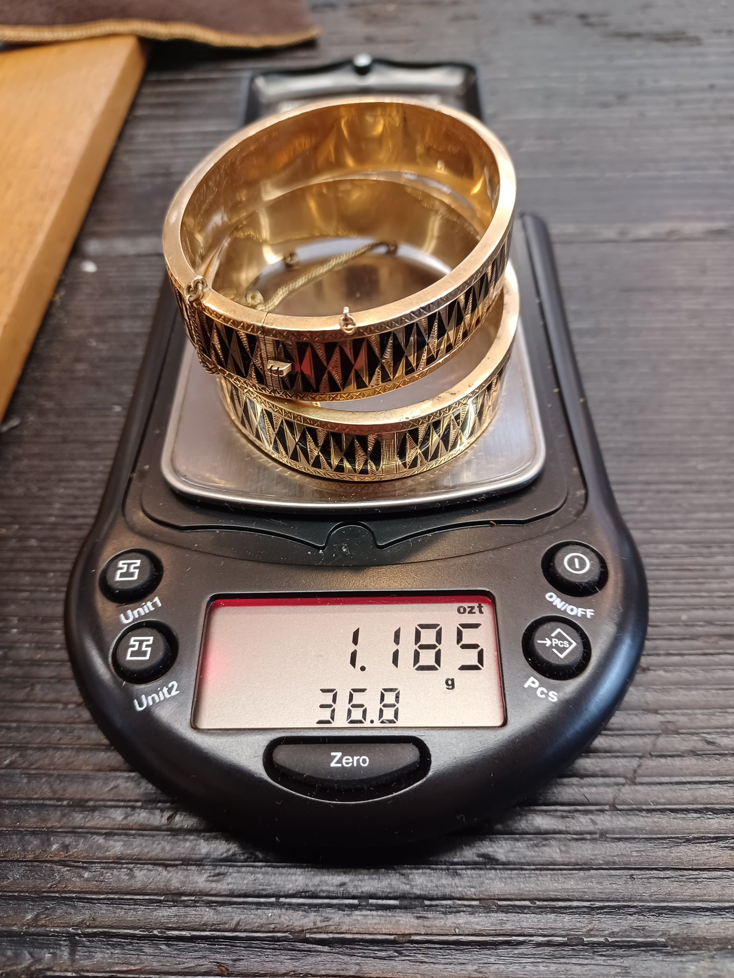 14k yellow gold and black enamel ; total weight = 36.8g