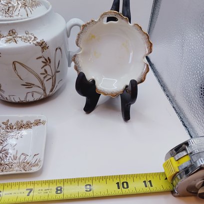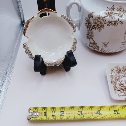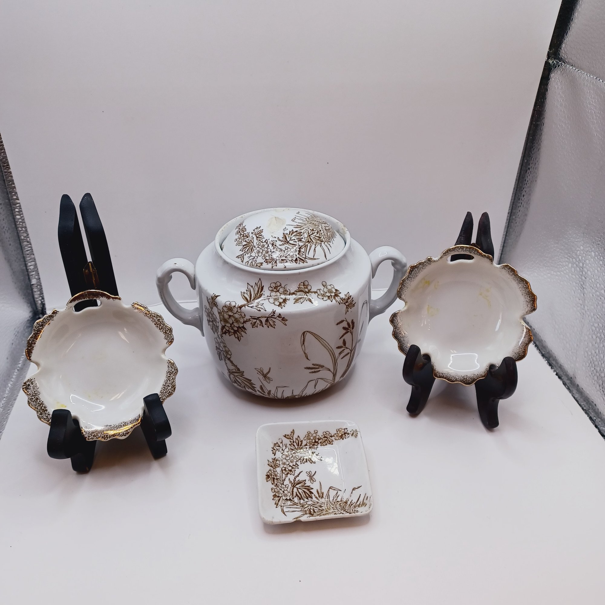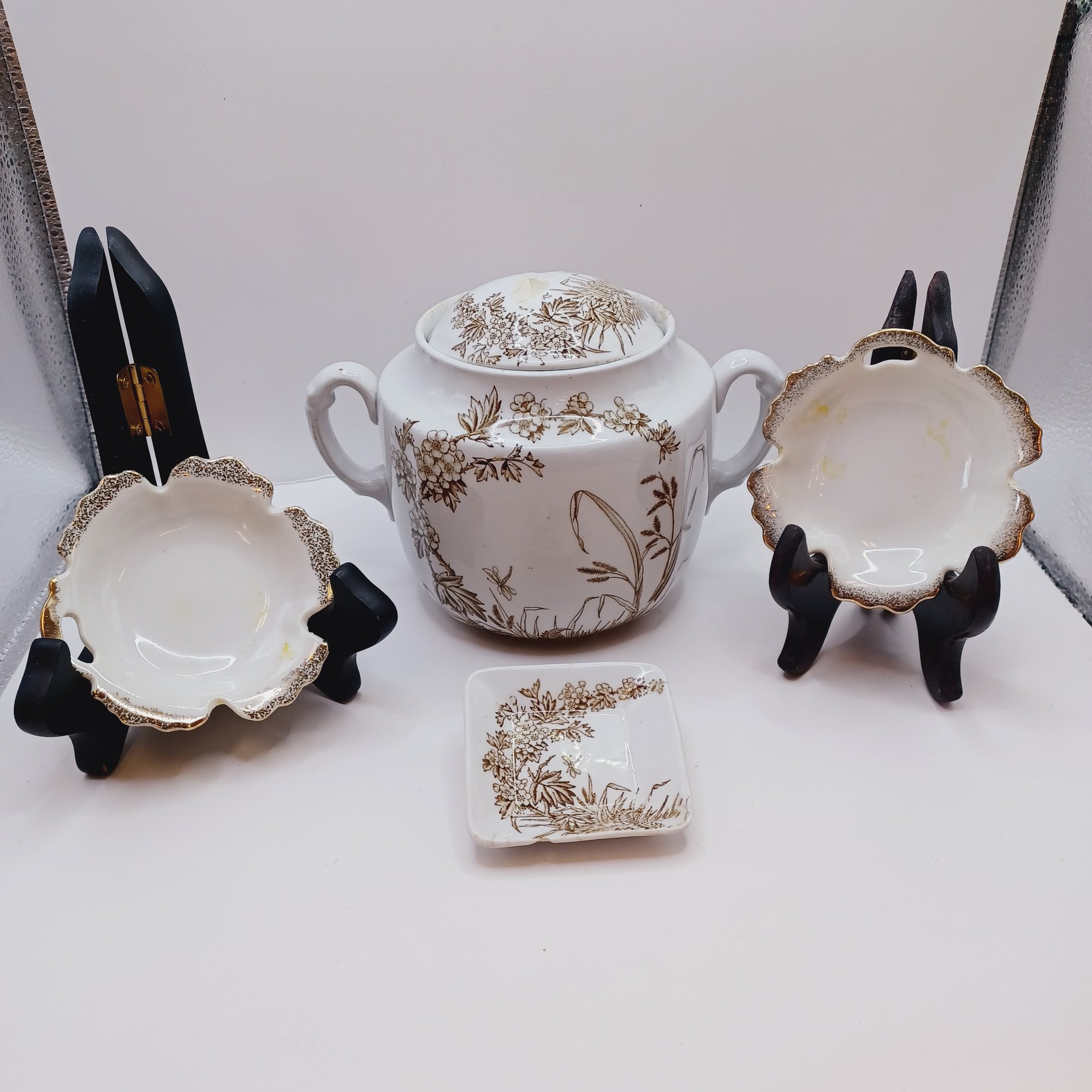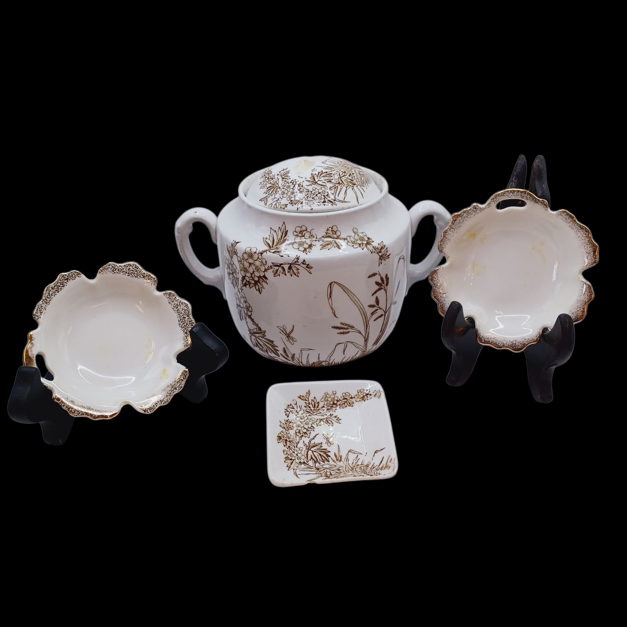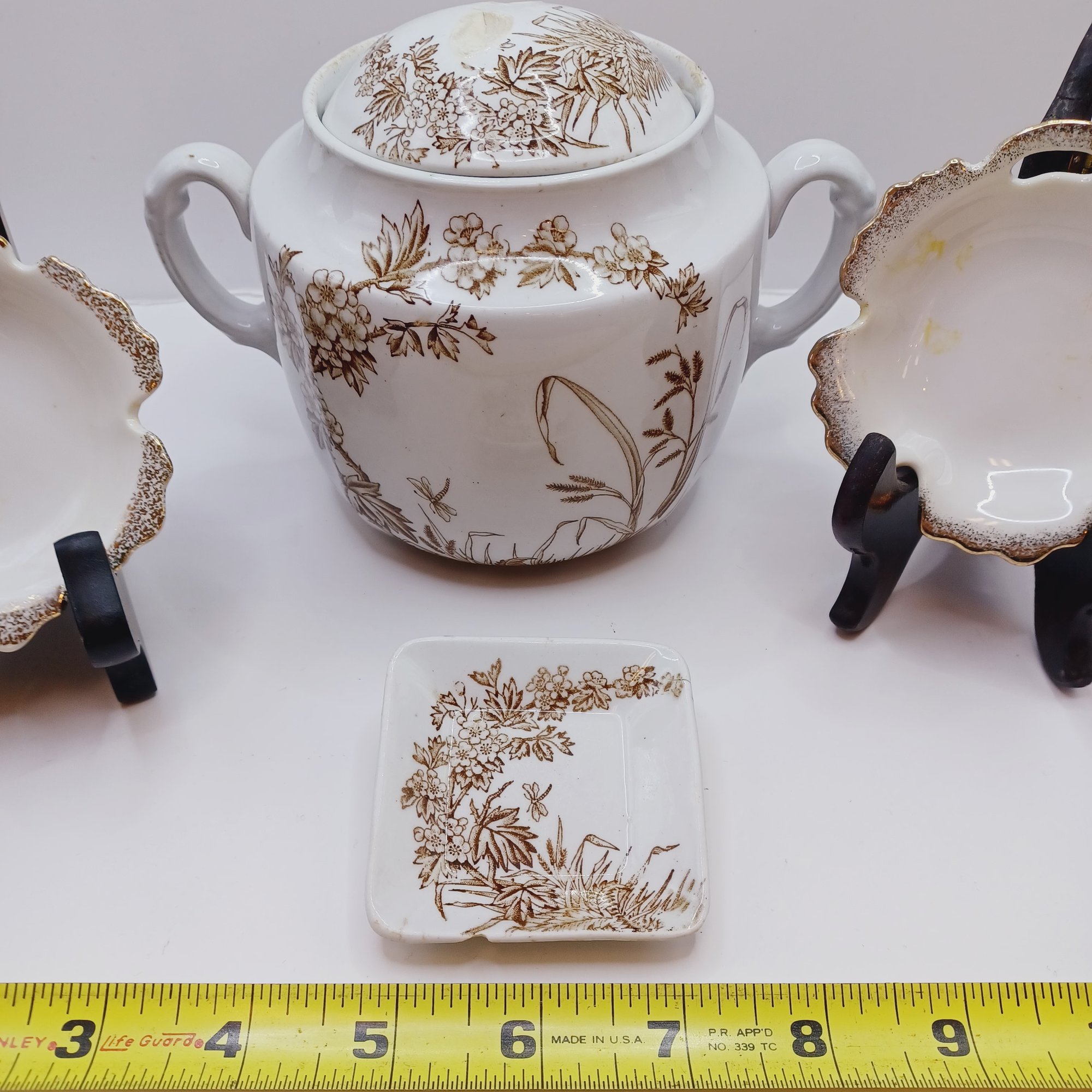 Brown pattern with Dragonfly and 2 w/ gold leaf rim