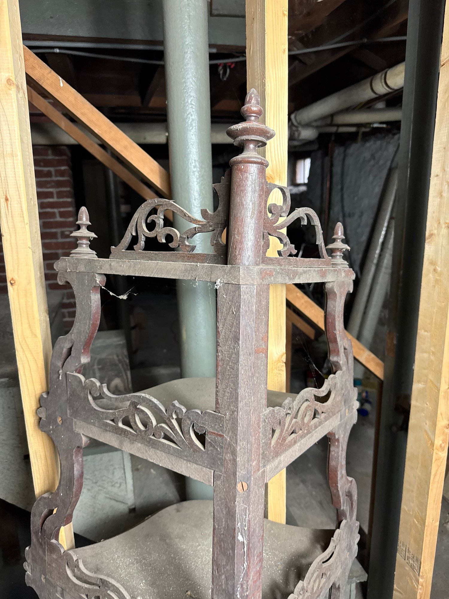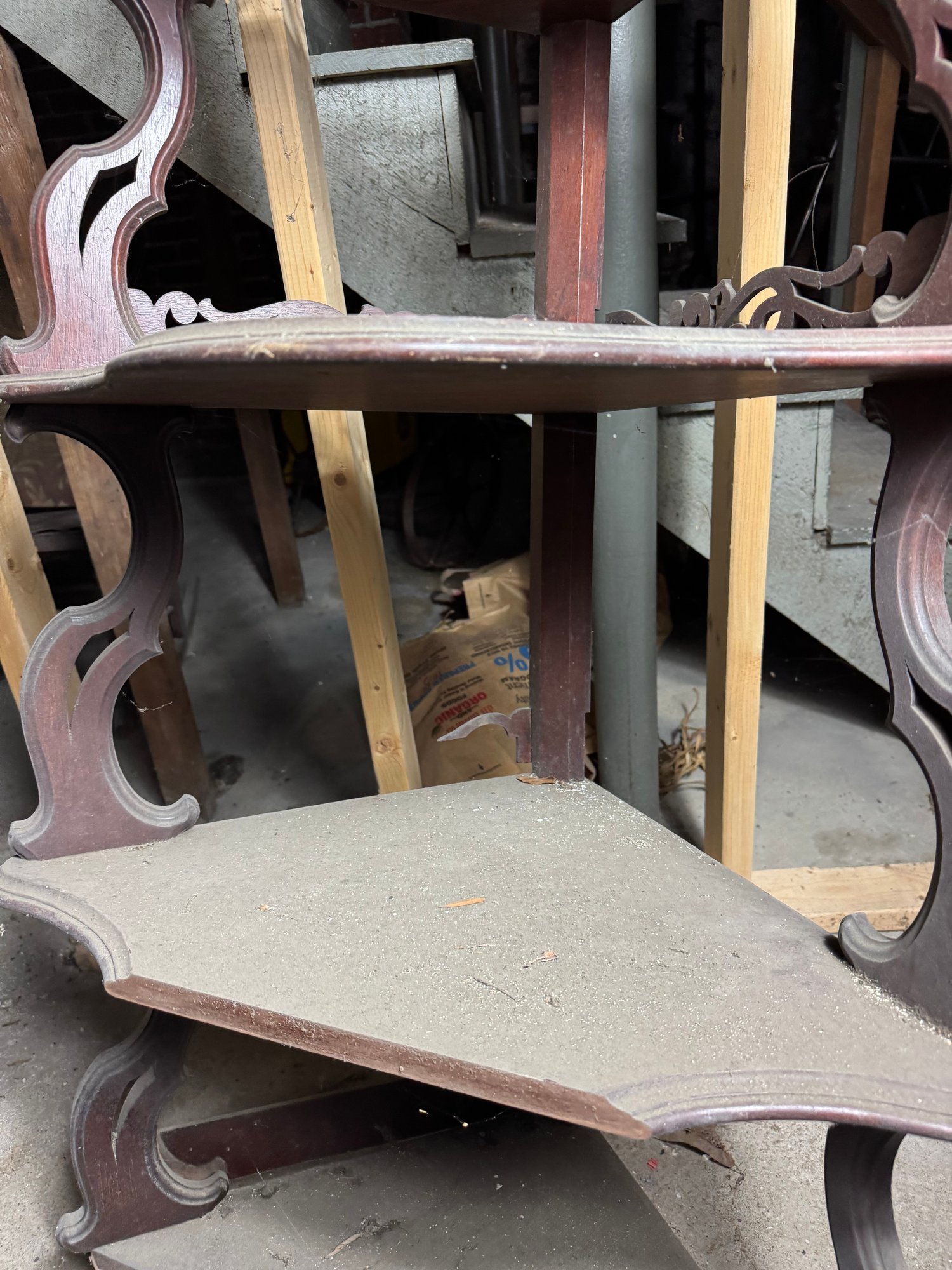 it does not stand on its own so I assume it’s supposed to be a hanging shelf, possibly damaged on the bottom