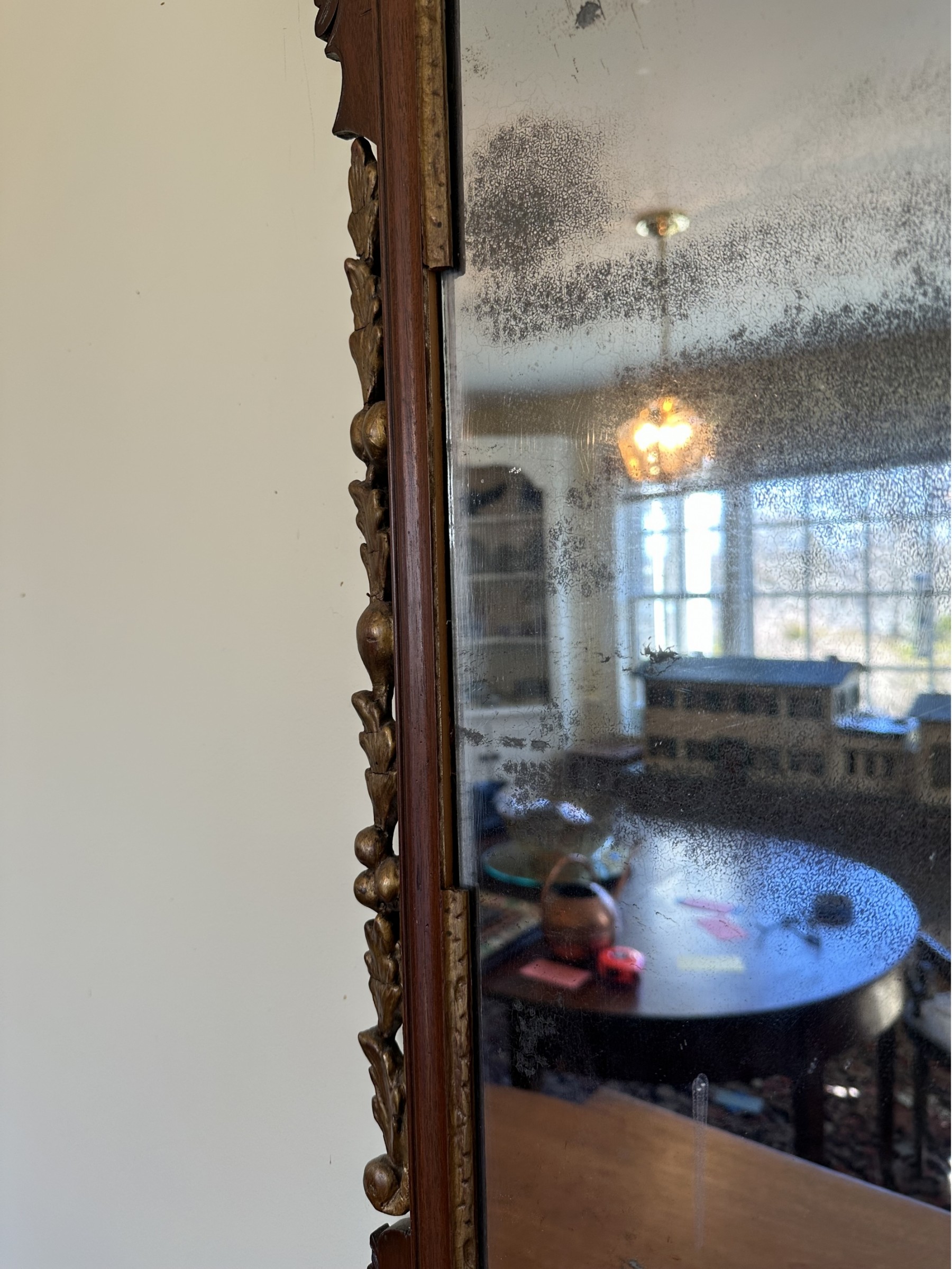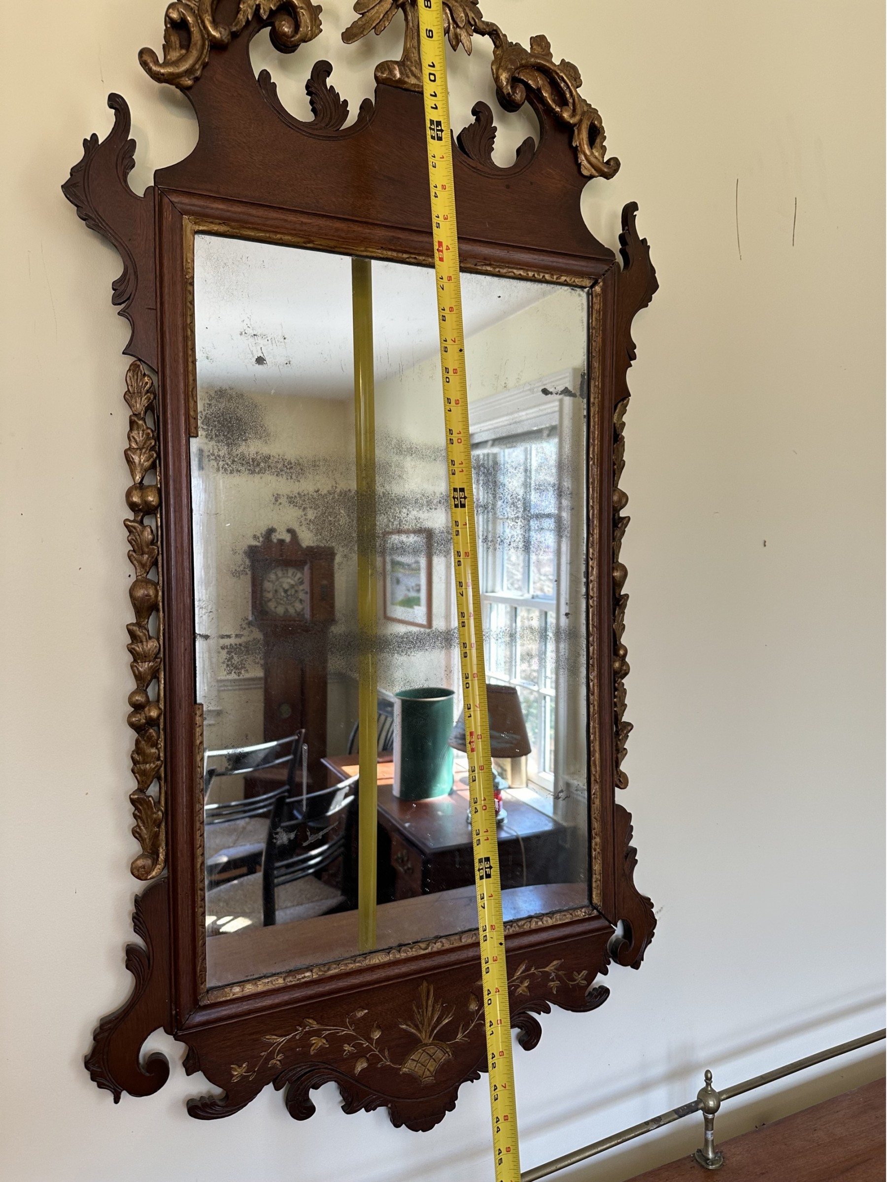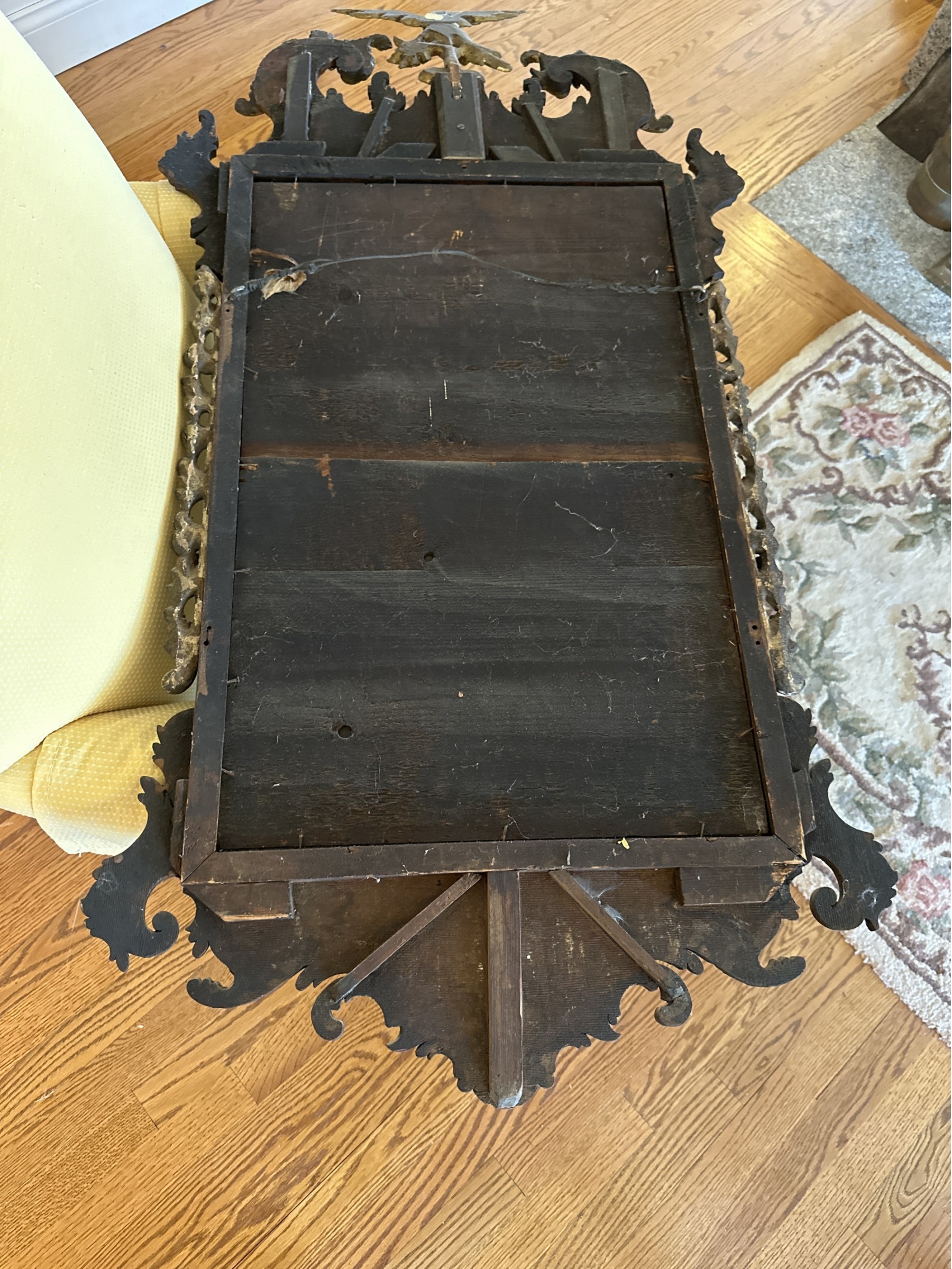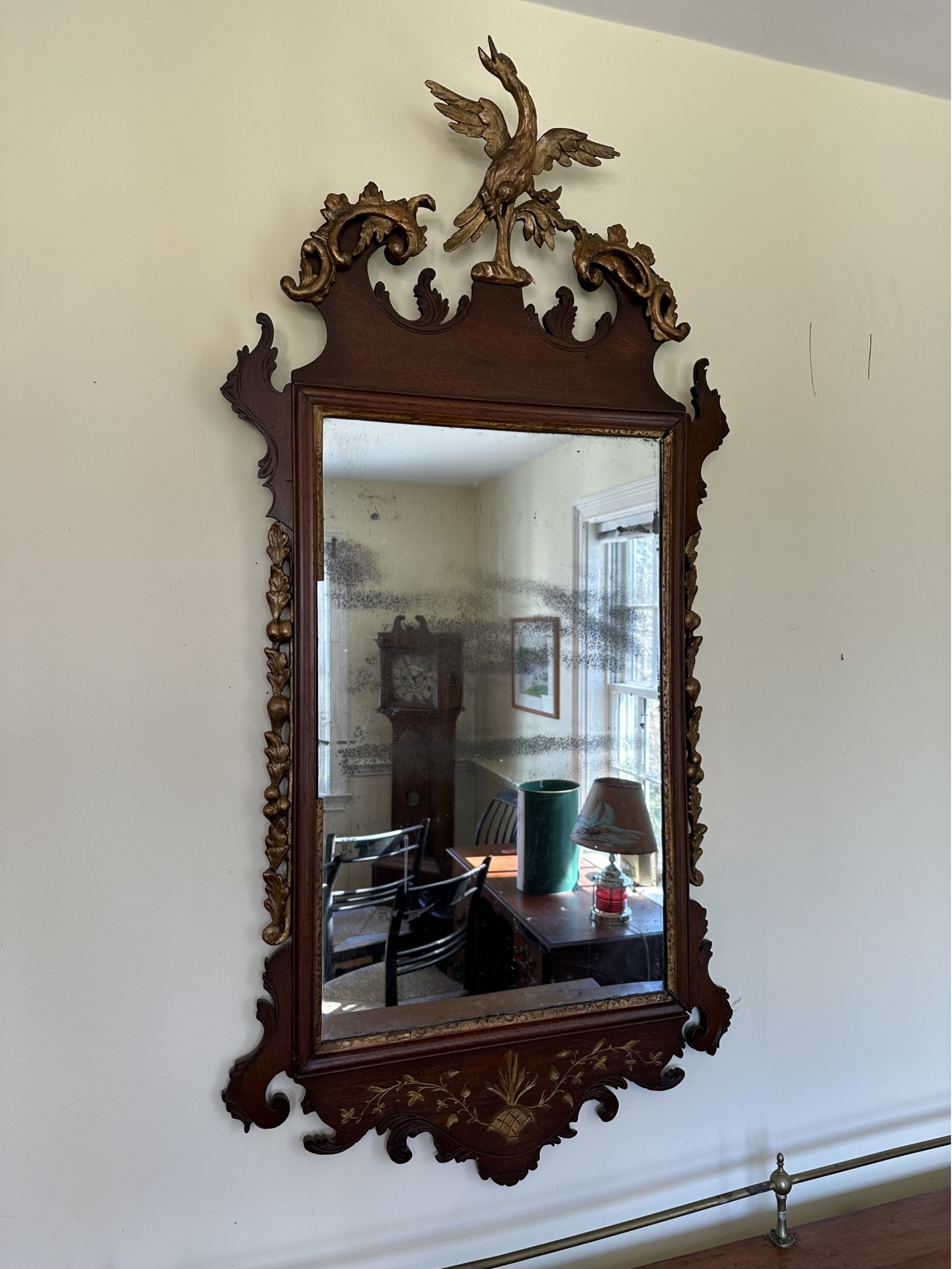 Chippendale mirror with phoenix crest Faux gilding some damage