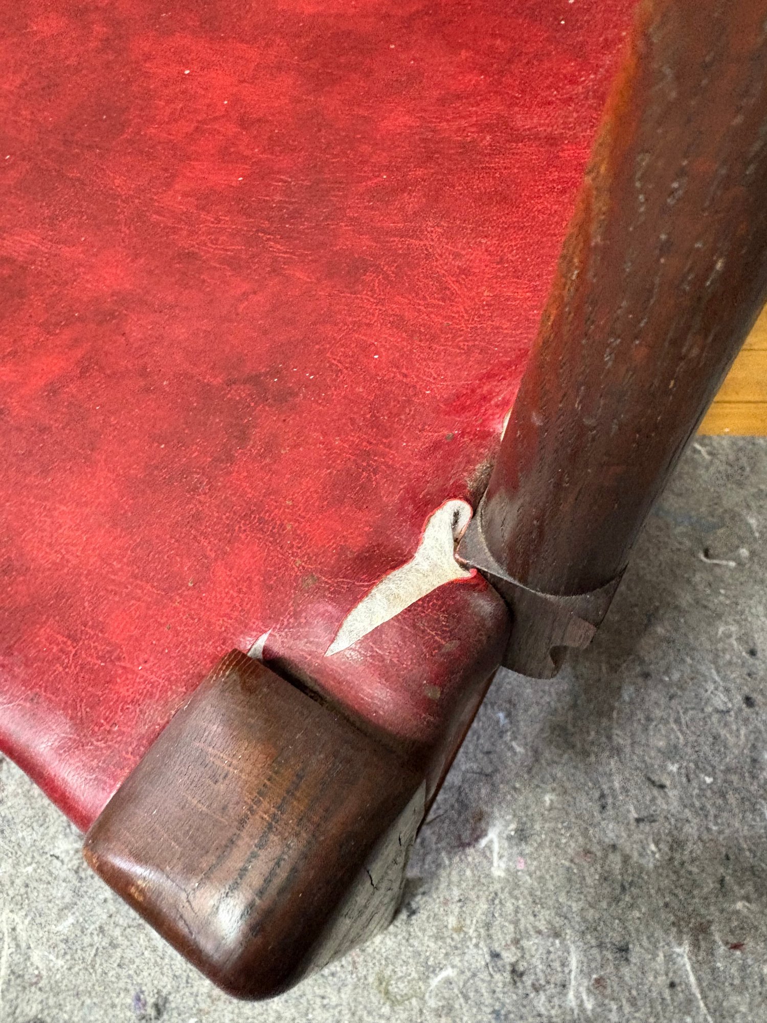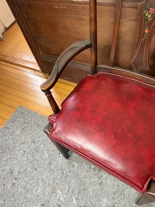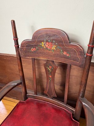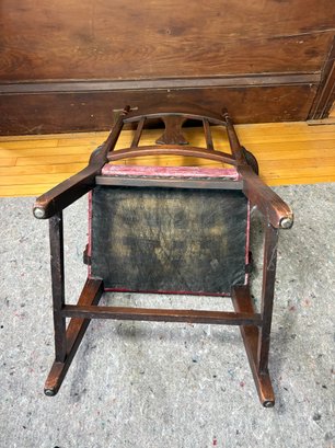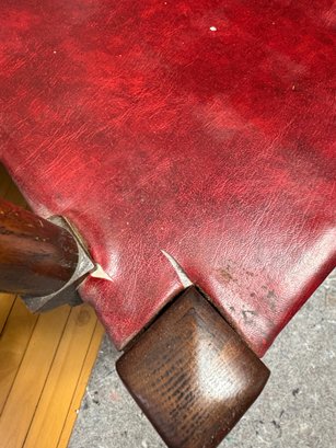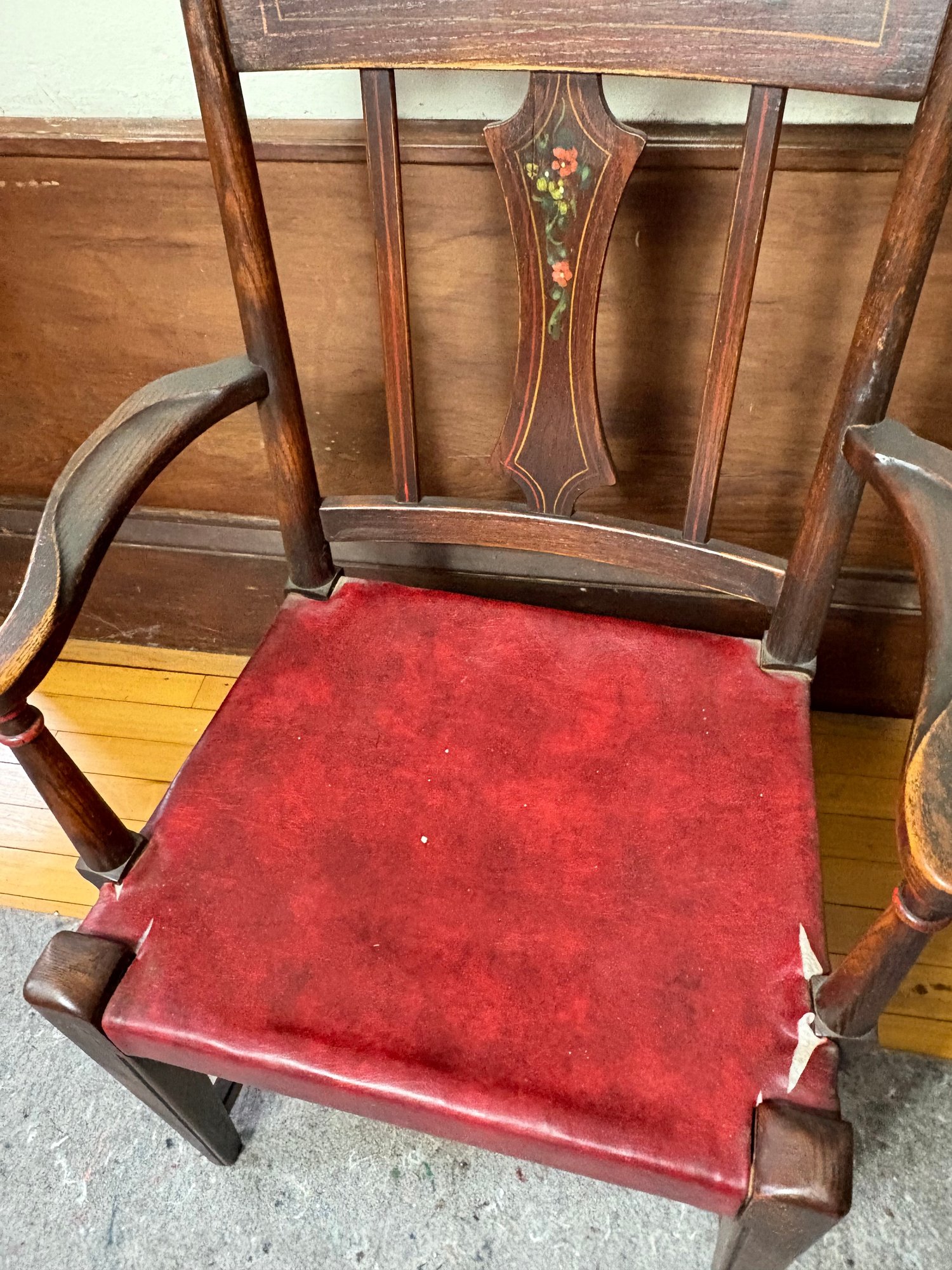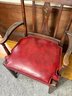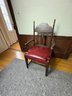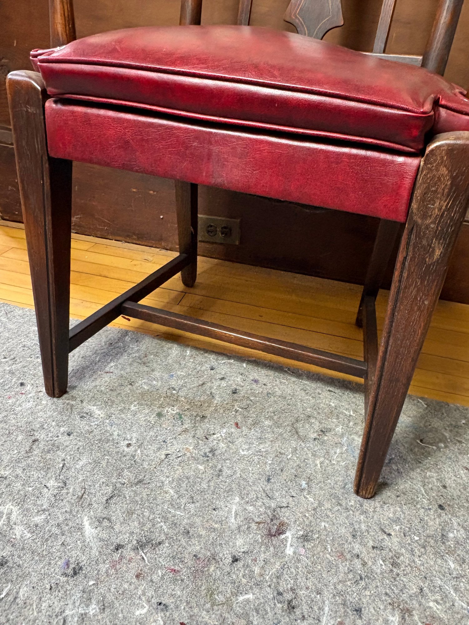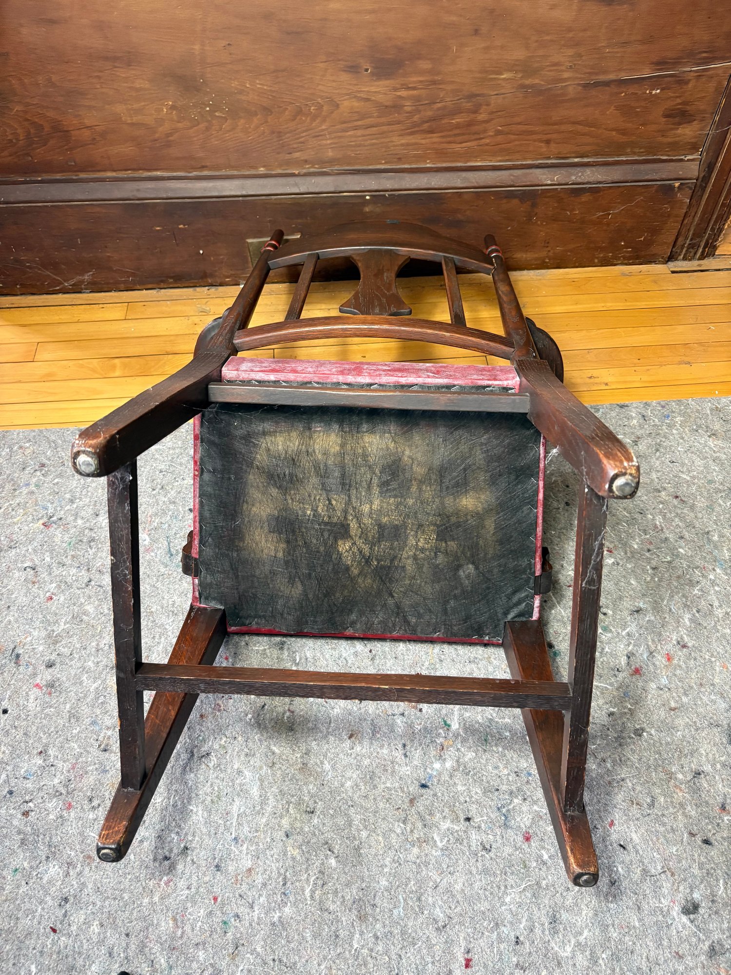 Approximately 23 by 22 by 42 inches tall. Chair has some wear and tear to it.