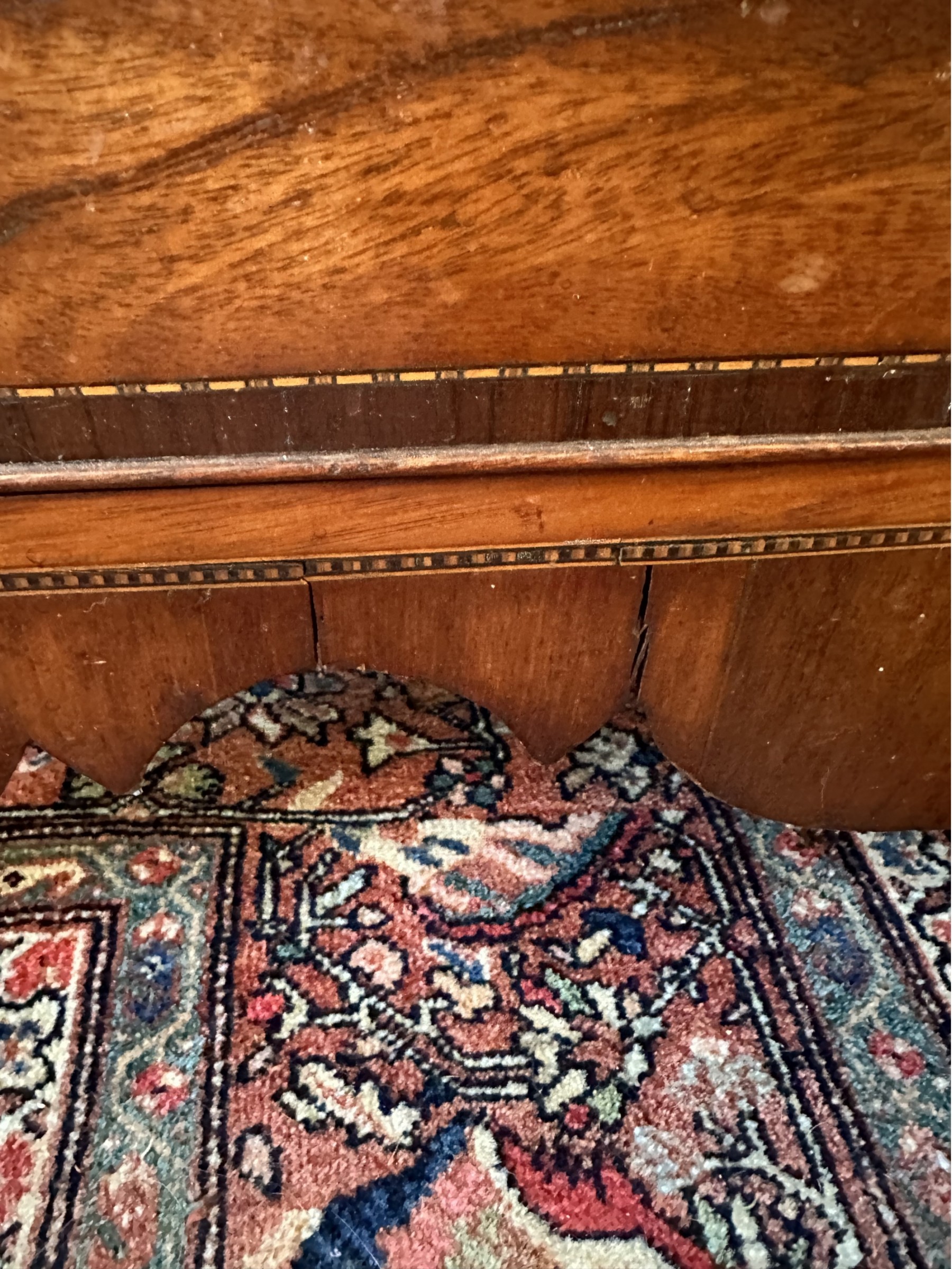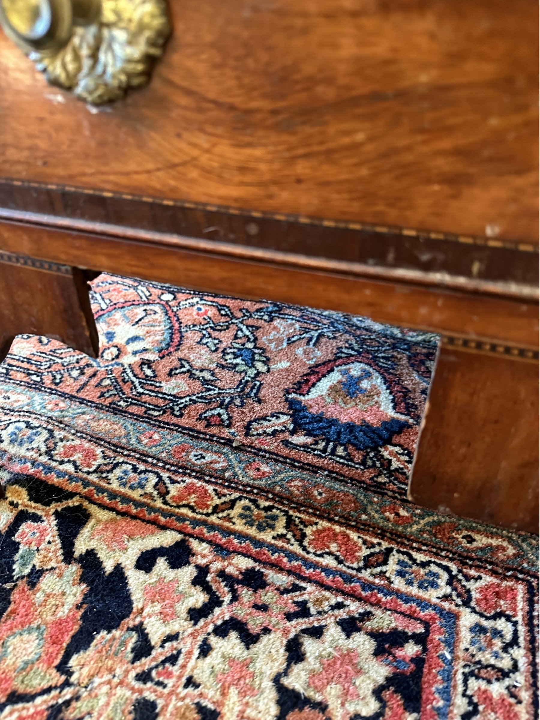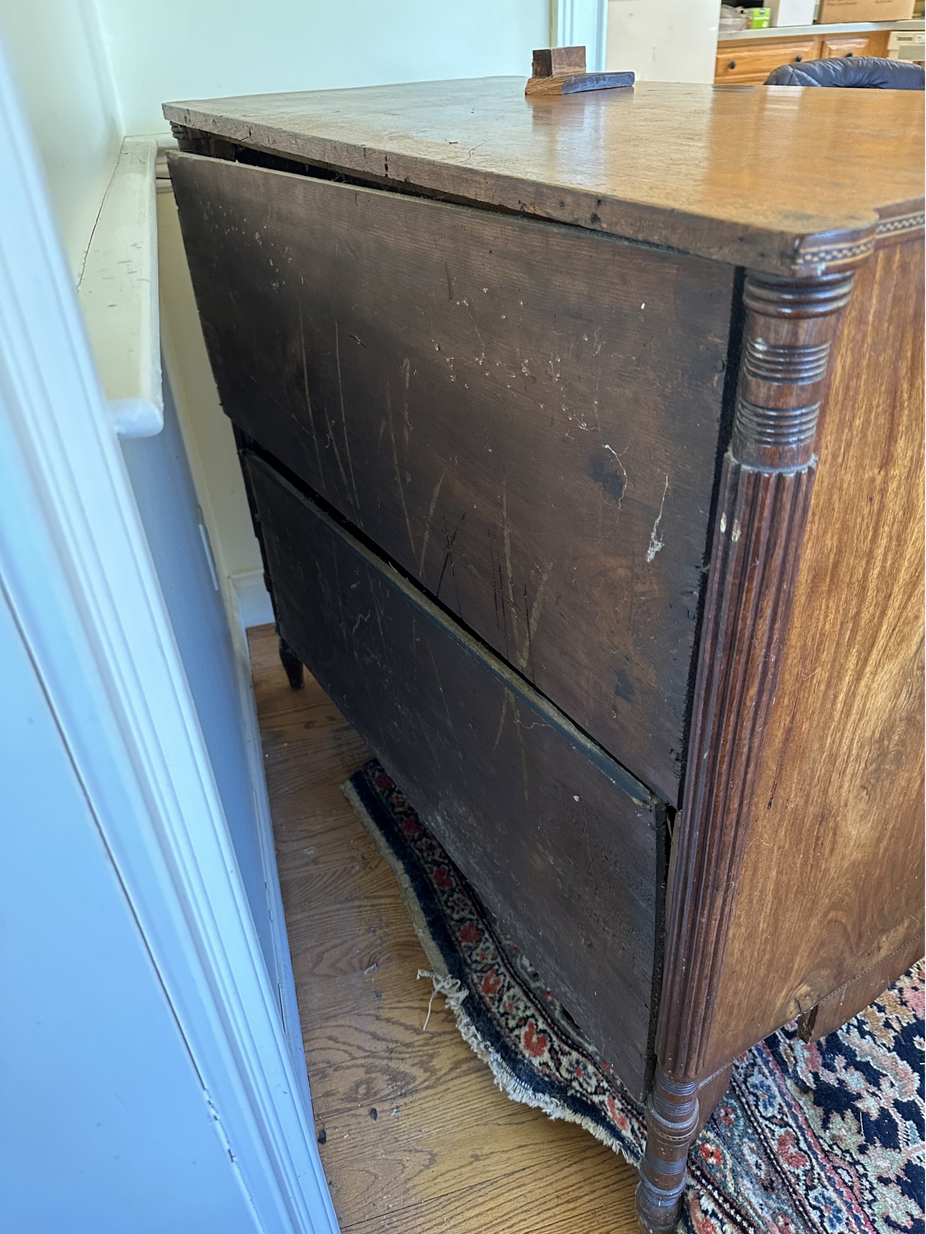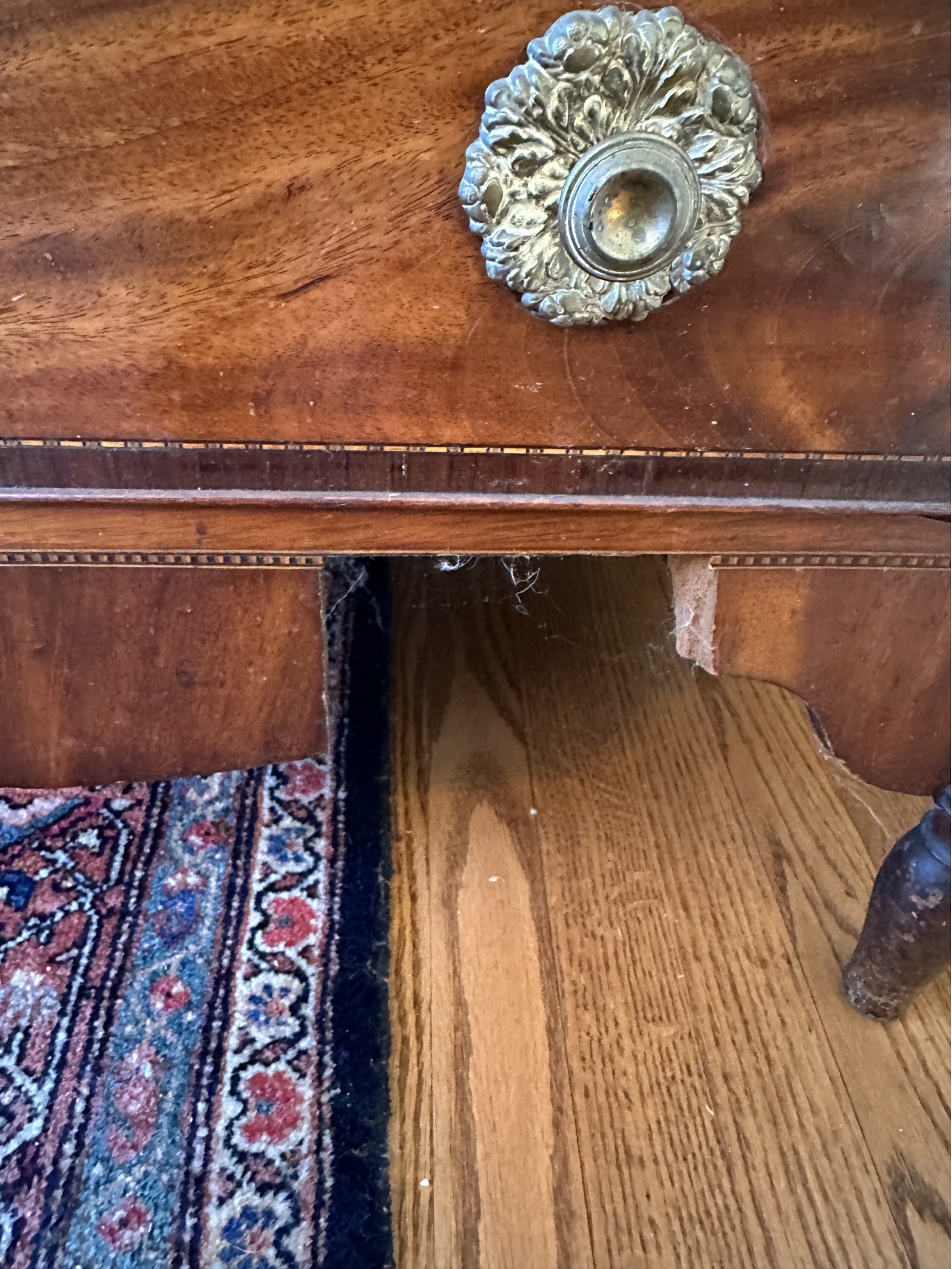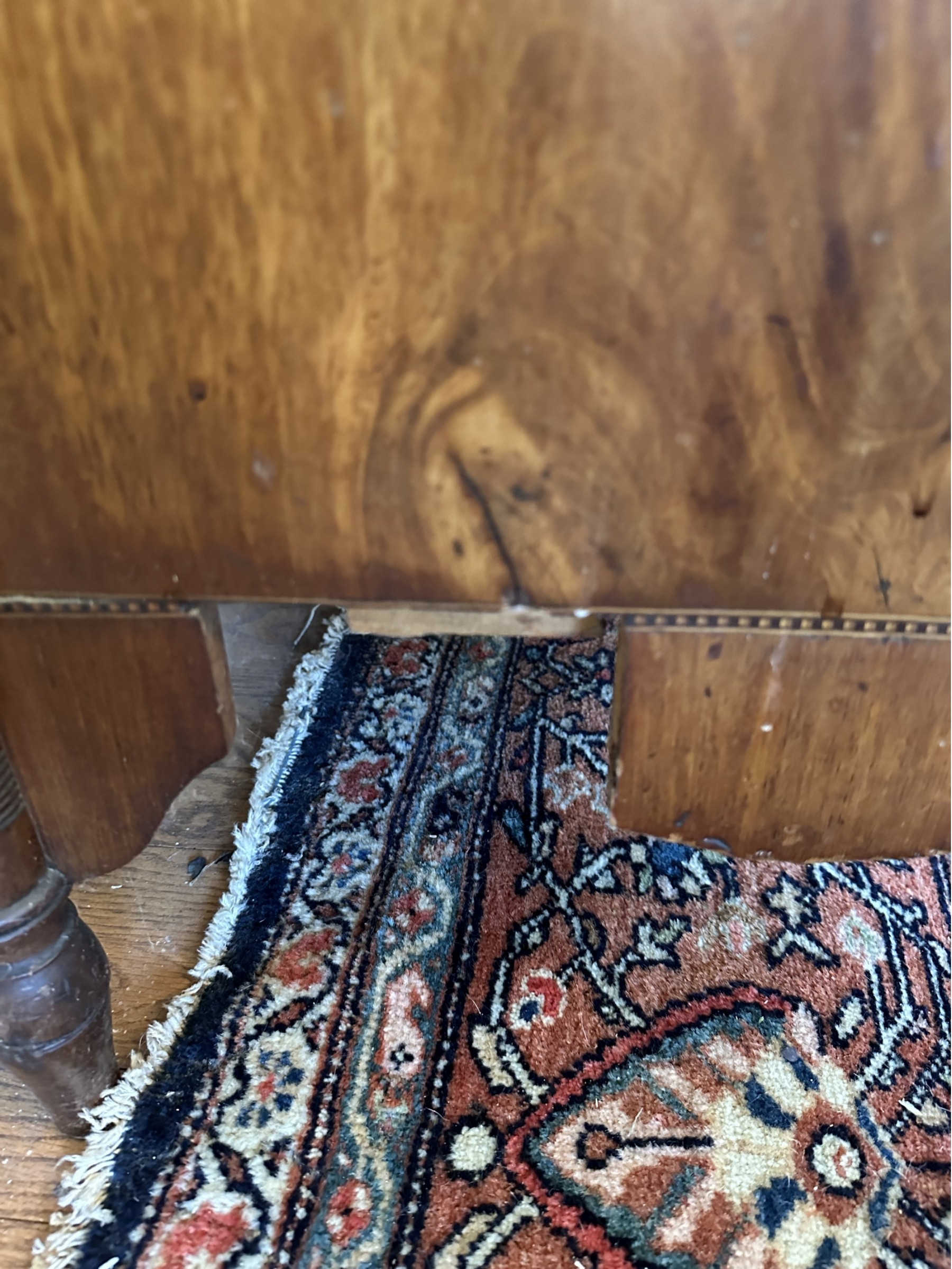 Missing veneer and pieces of the bottom skirt