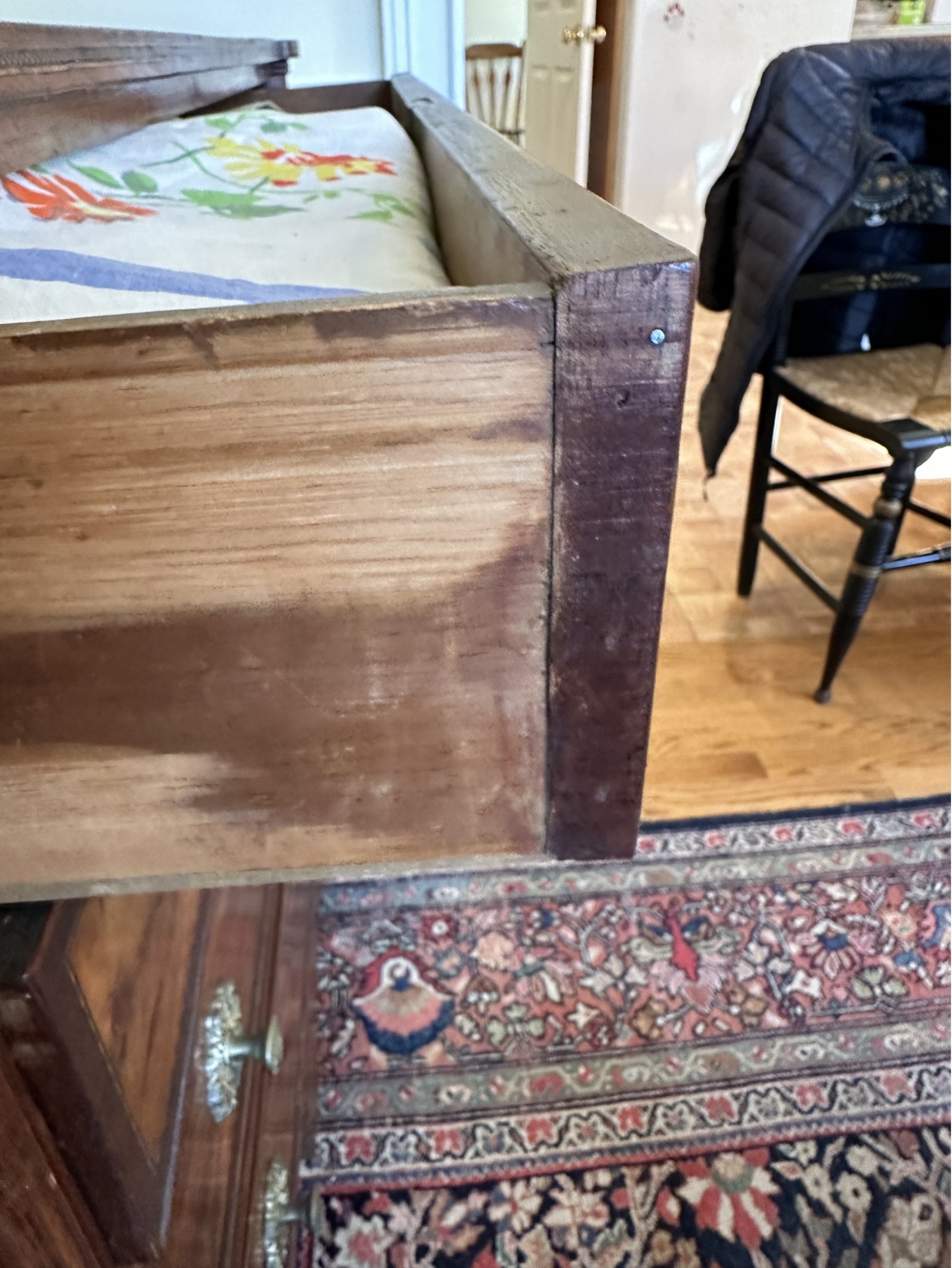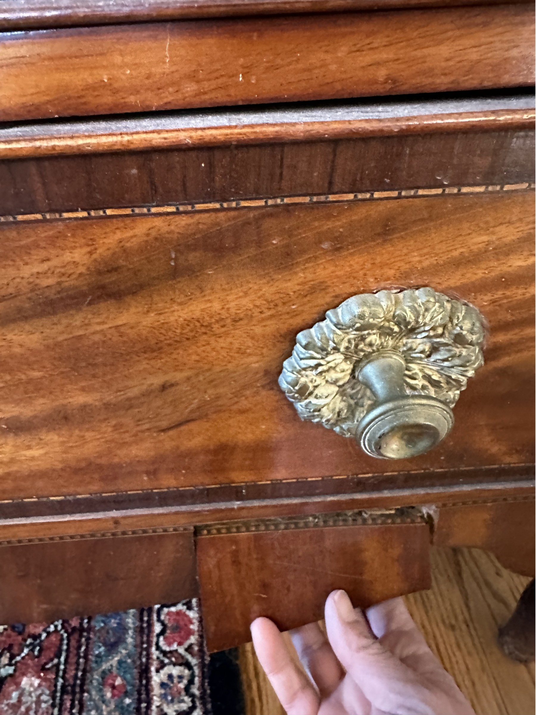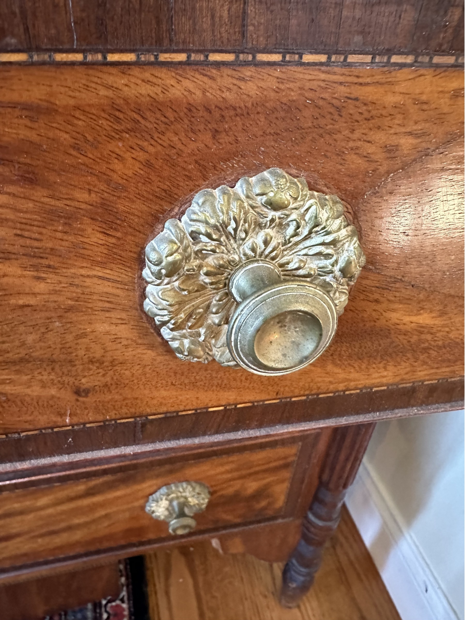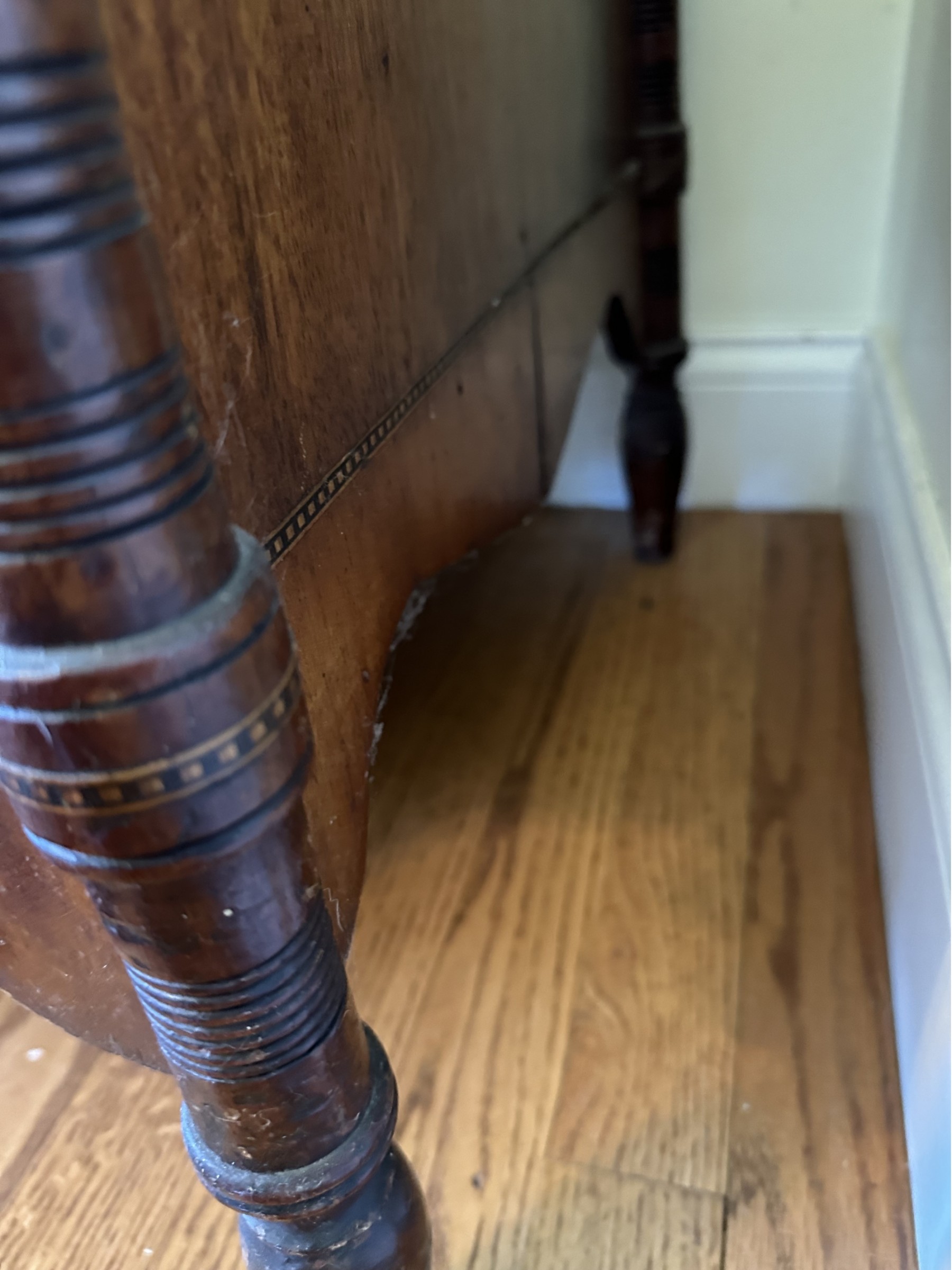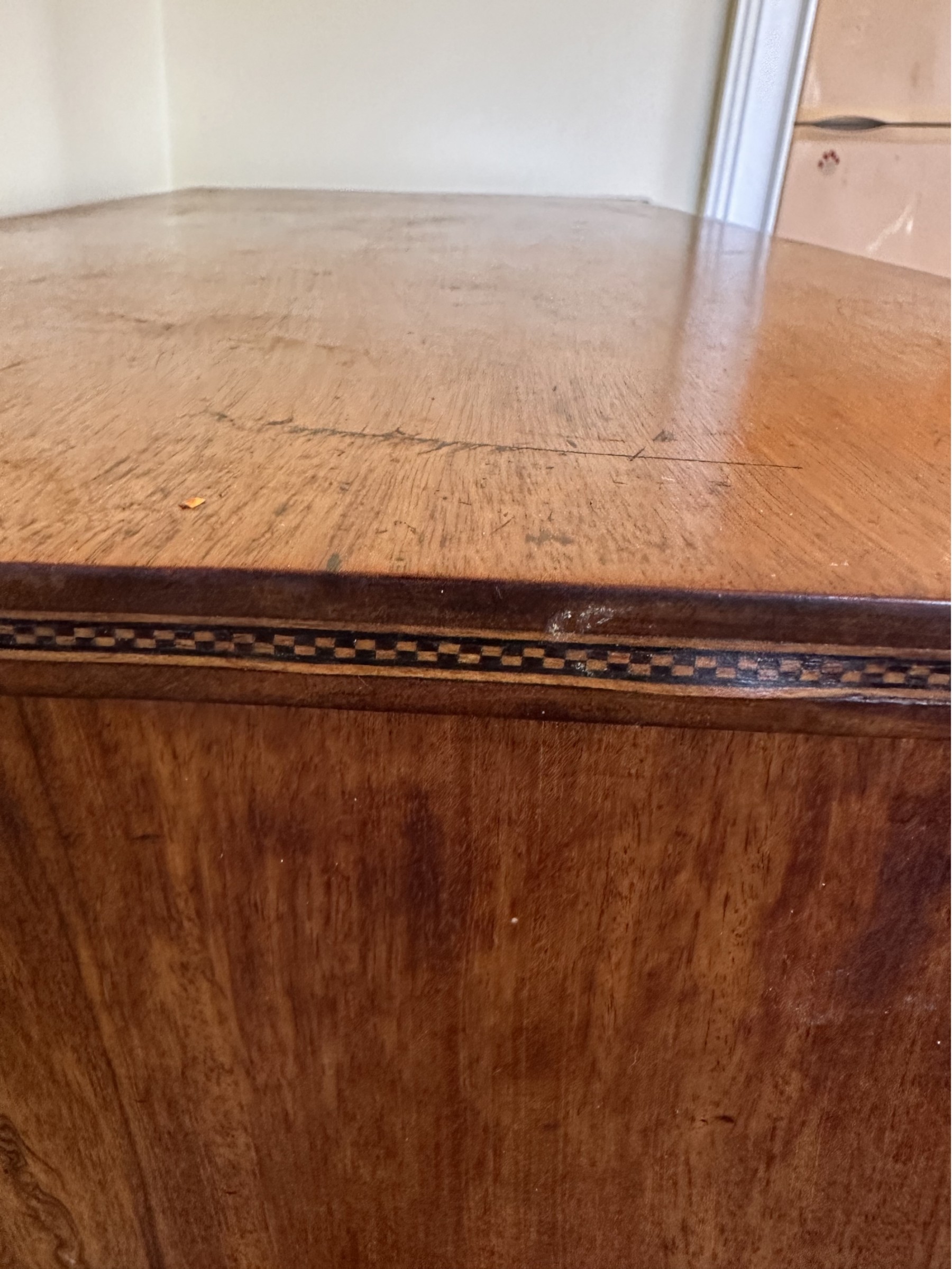 Missing veneer and pieces of the bottom skirt