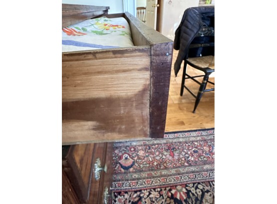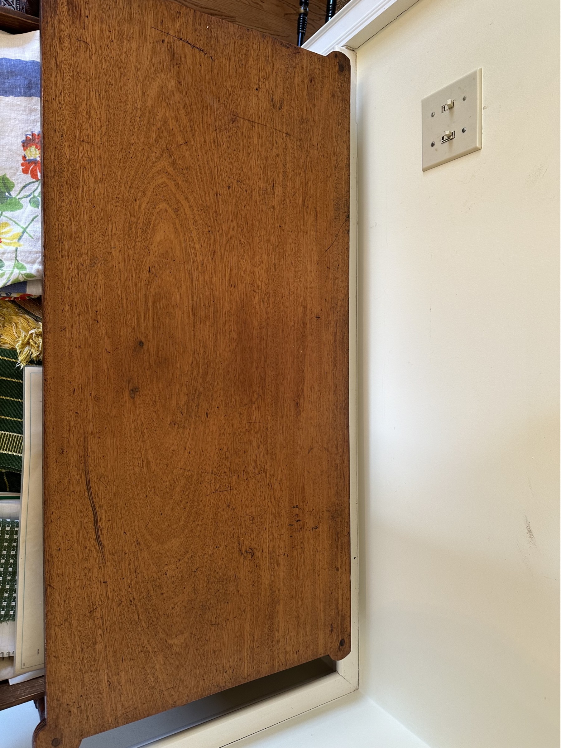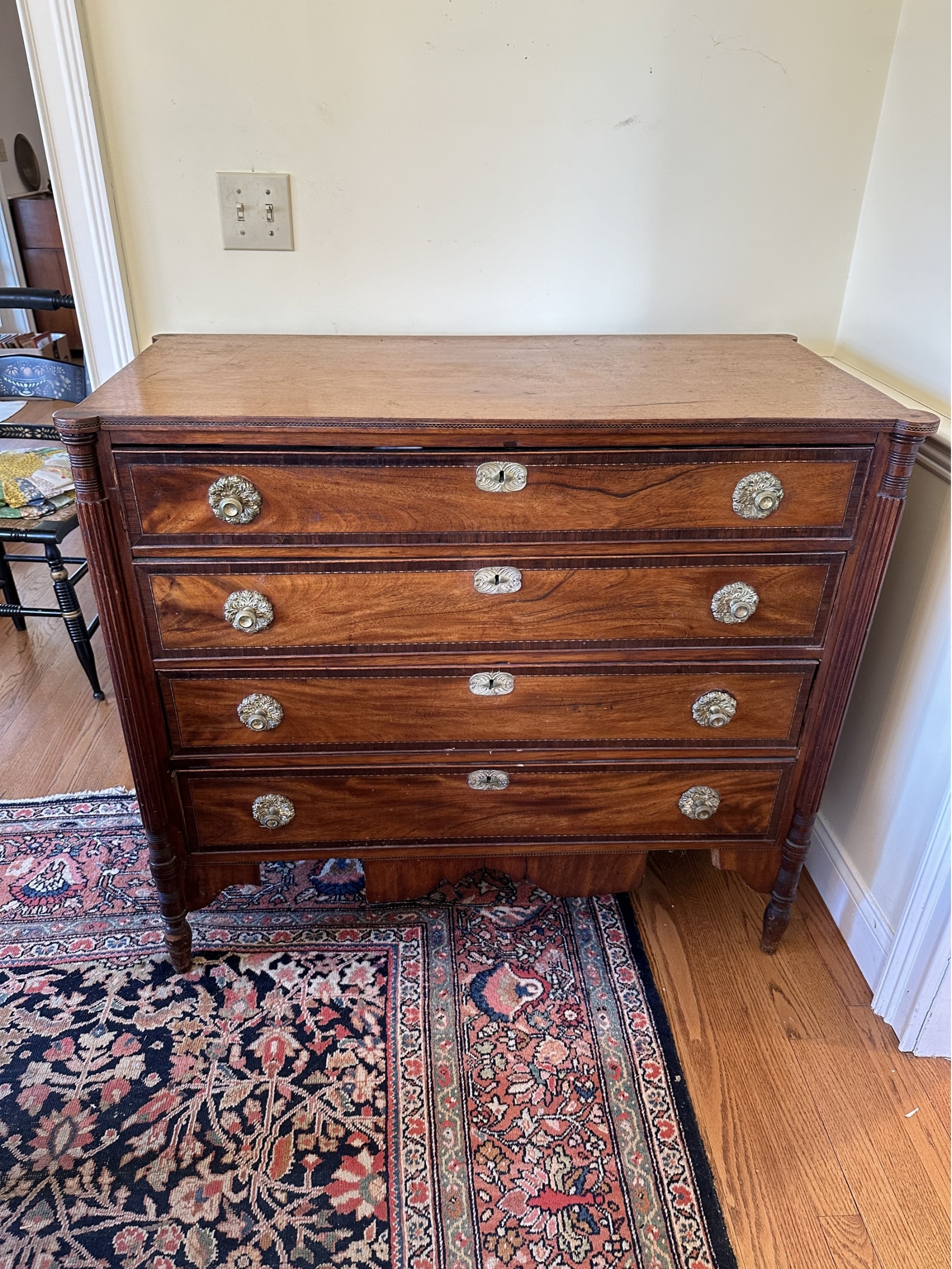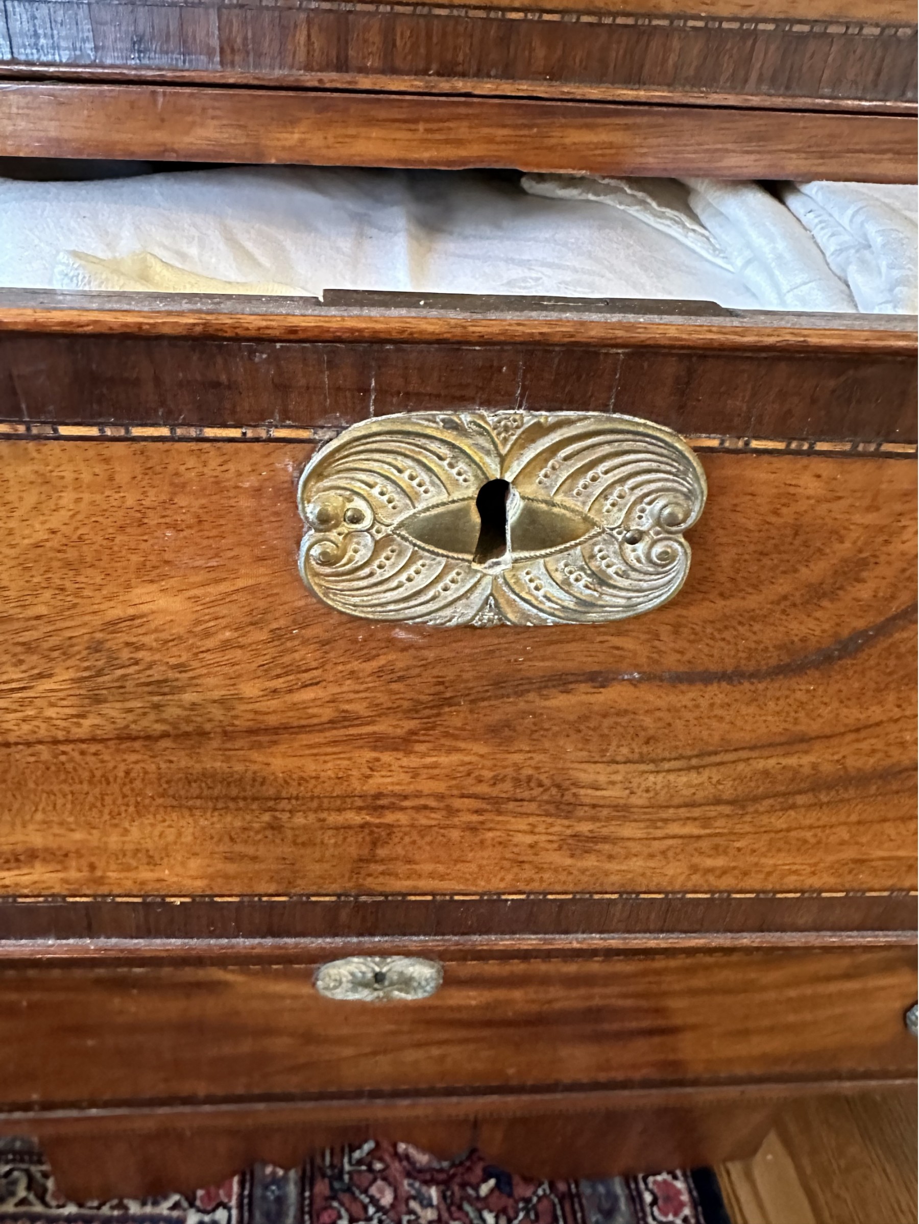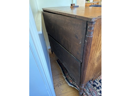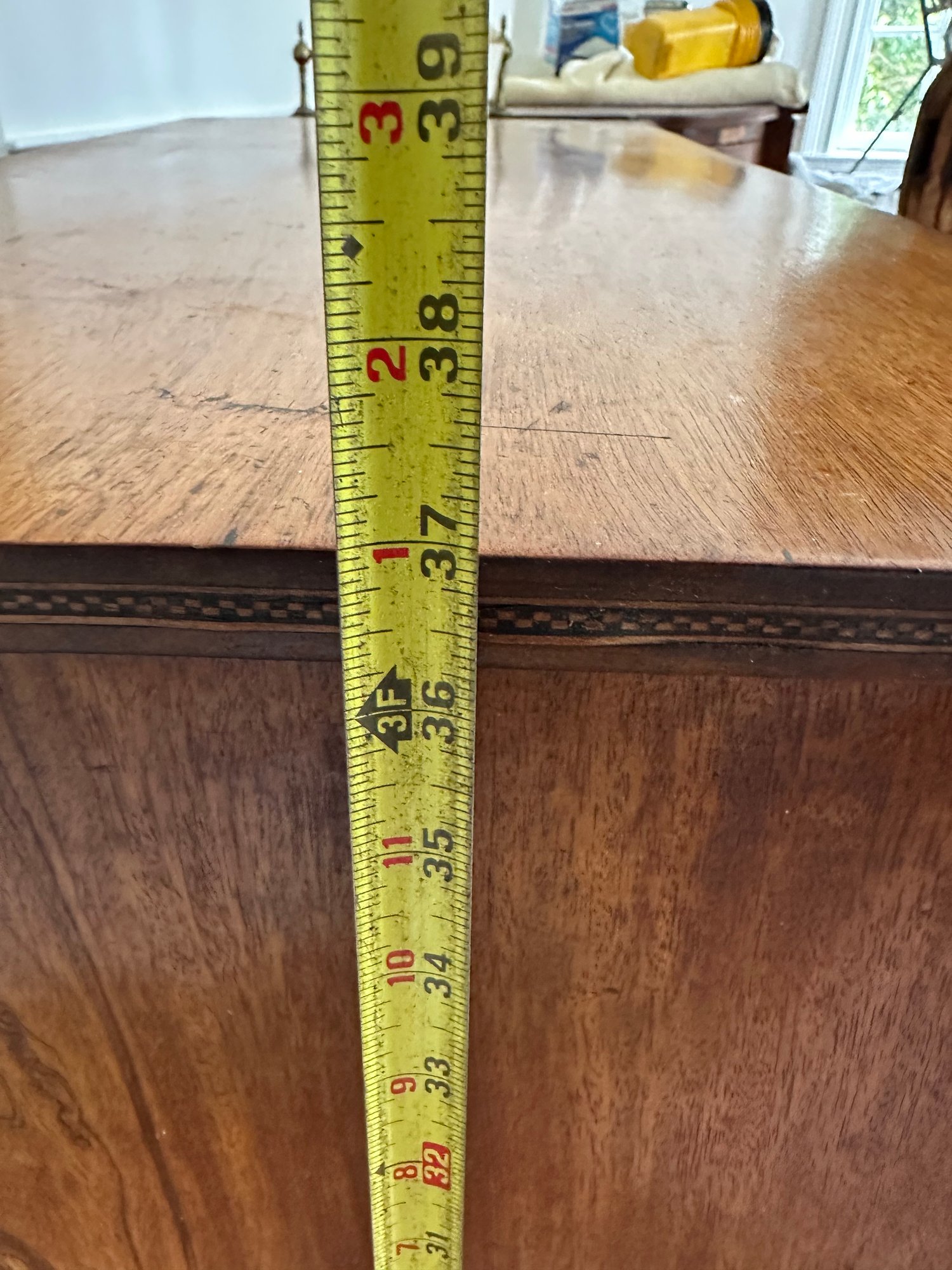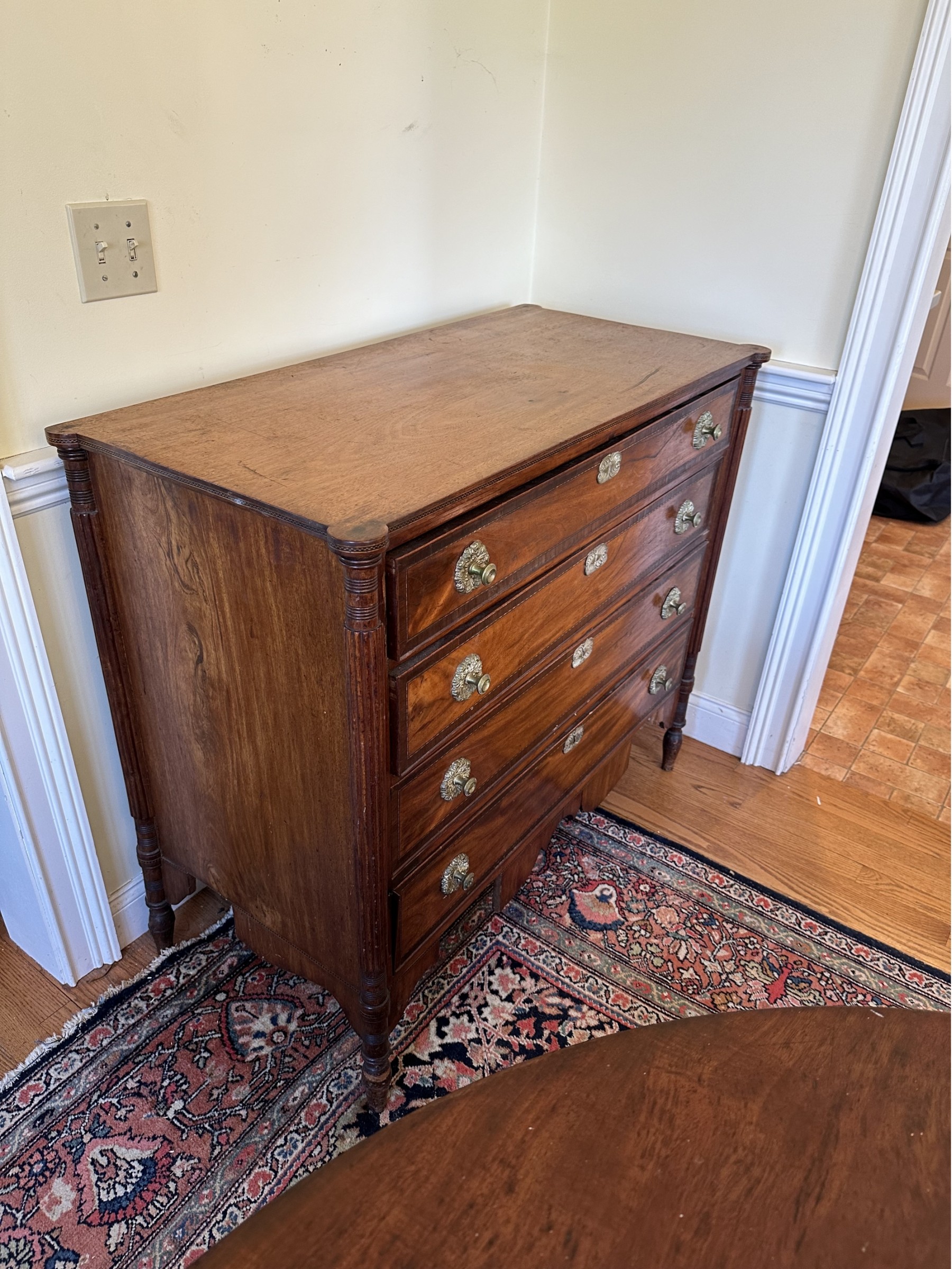Missing veneer and pieces of the bottom skirt