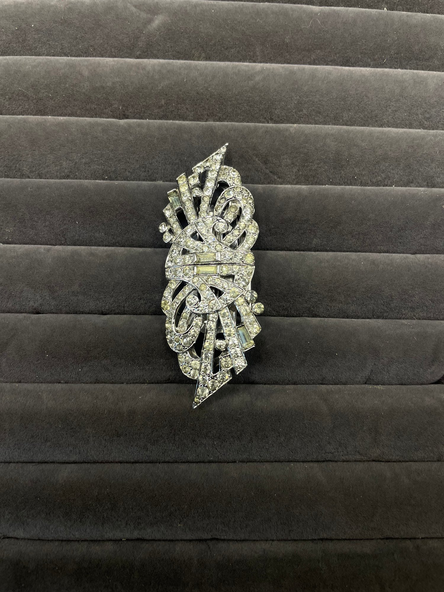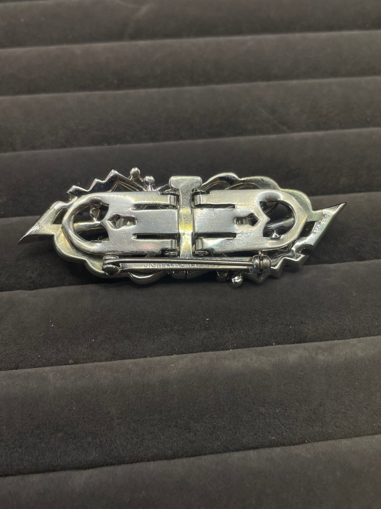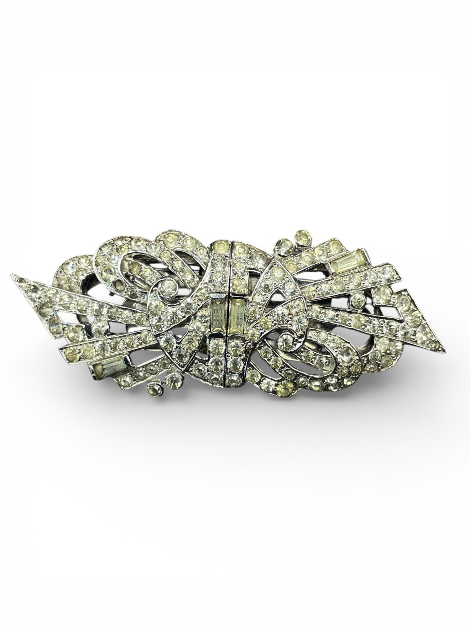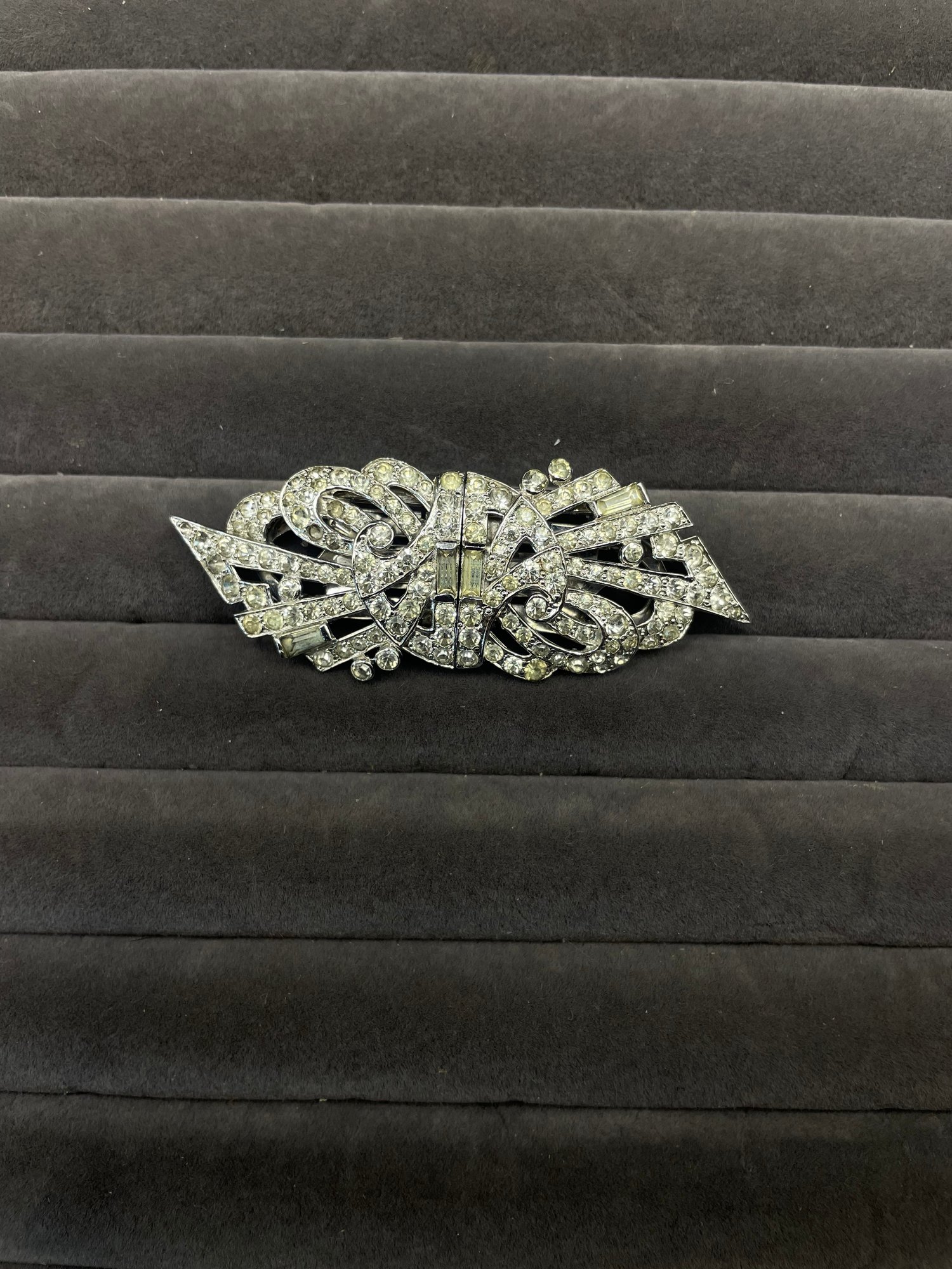 Art Deco Mazer brooch Duette Clip Signed US Pat 2.143.538 Antique 1930s Rhinestone Pave Marks : Mazer , US Pat 2.143.538