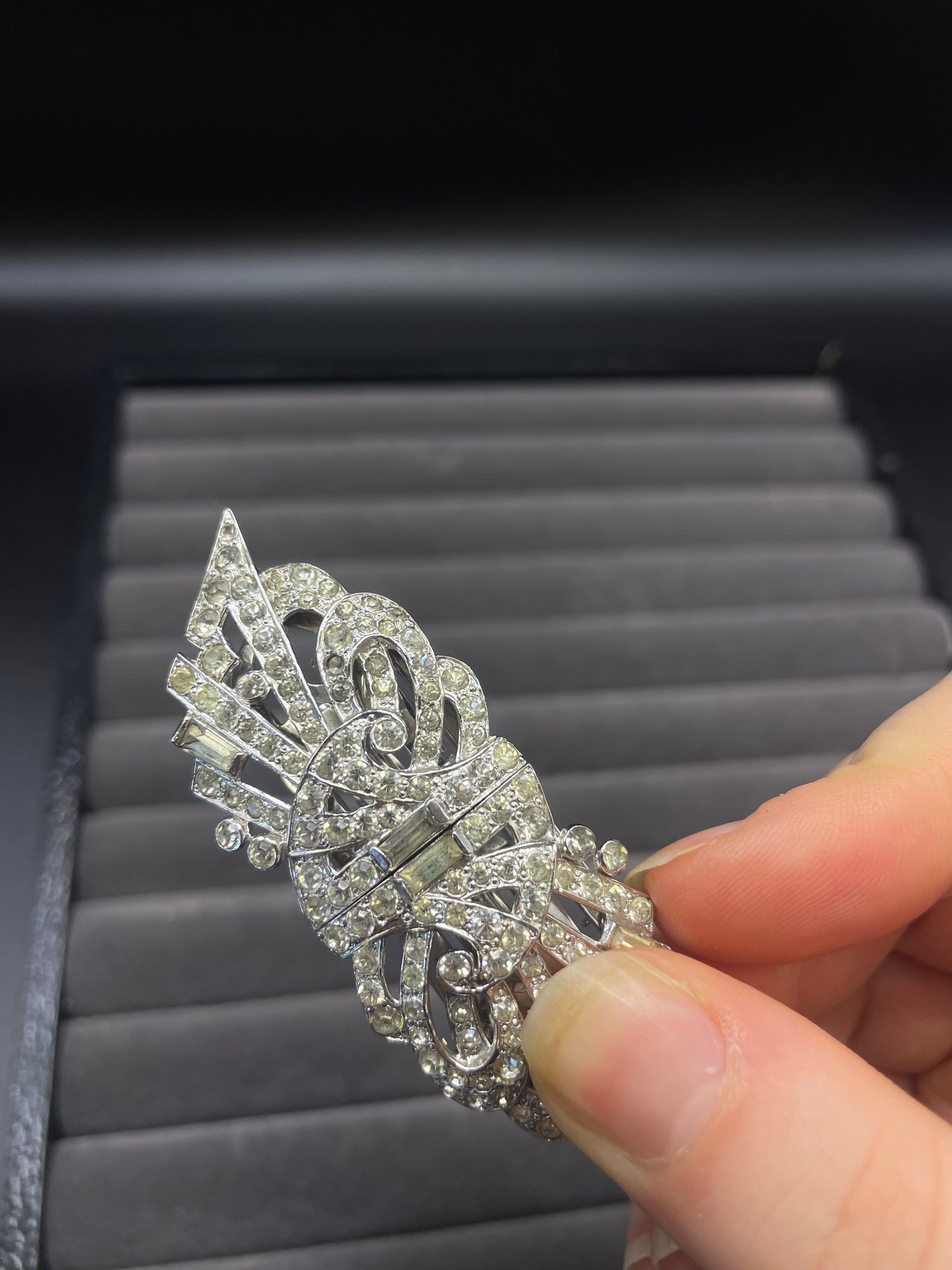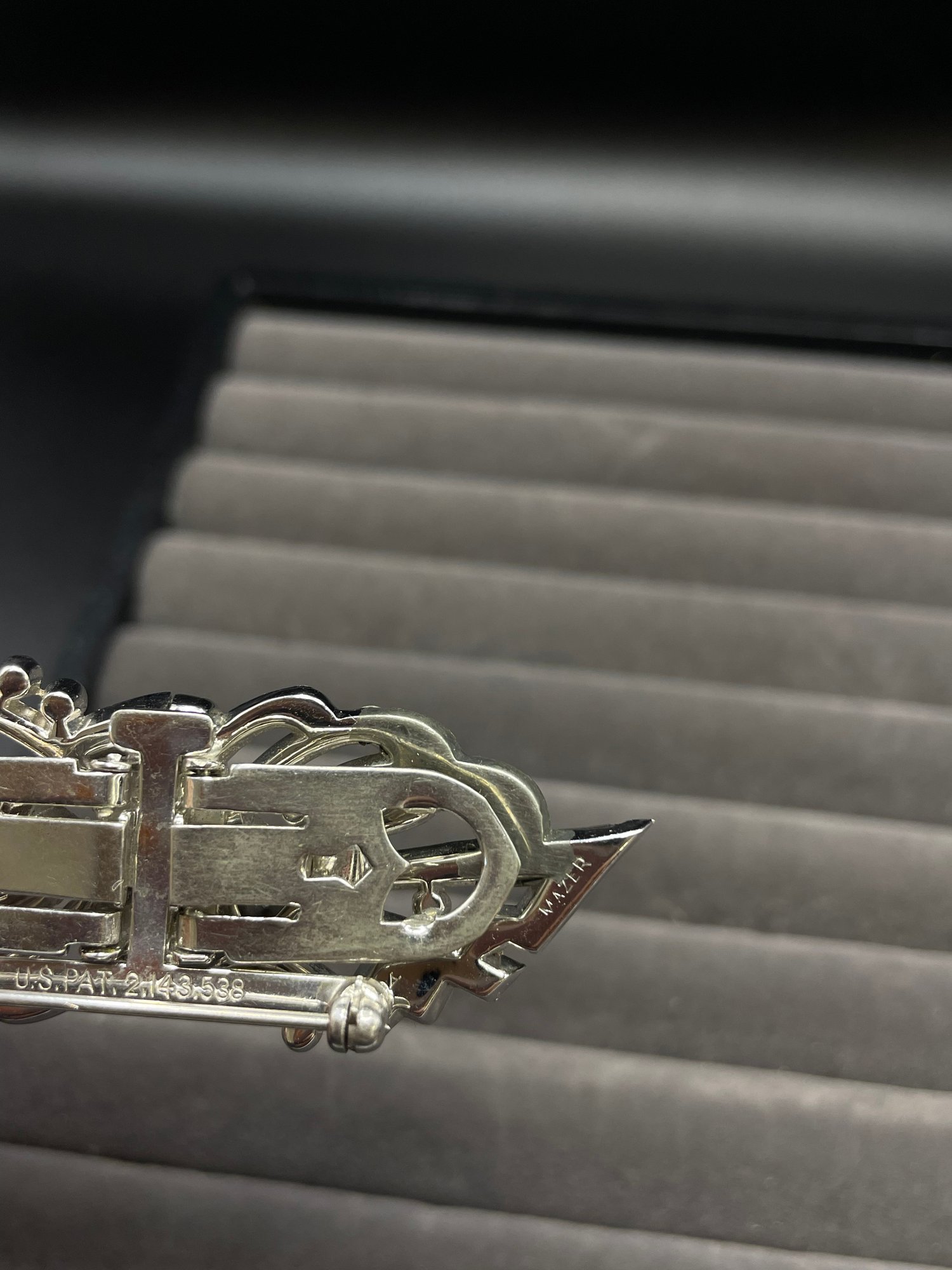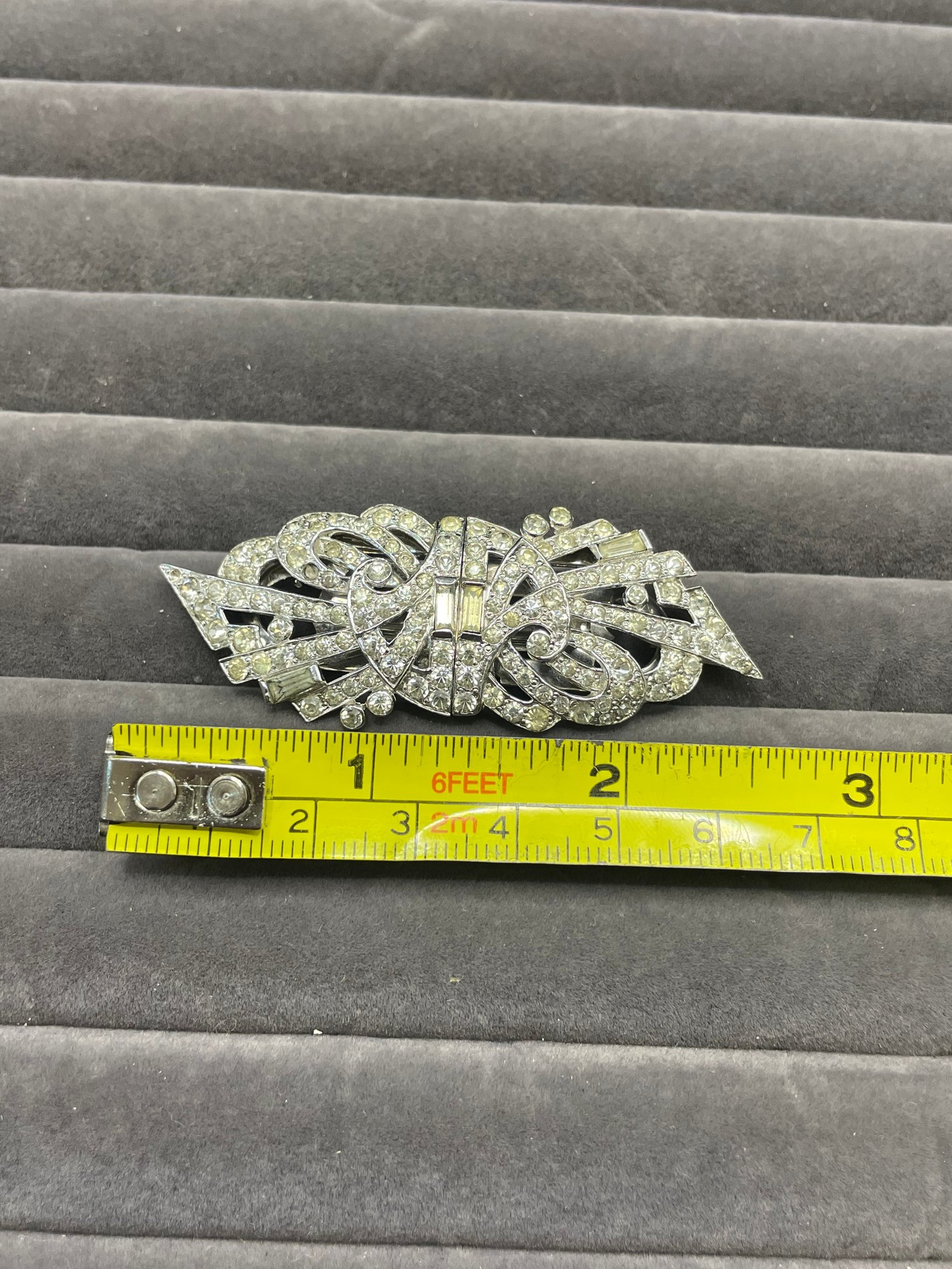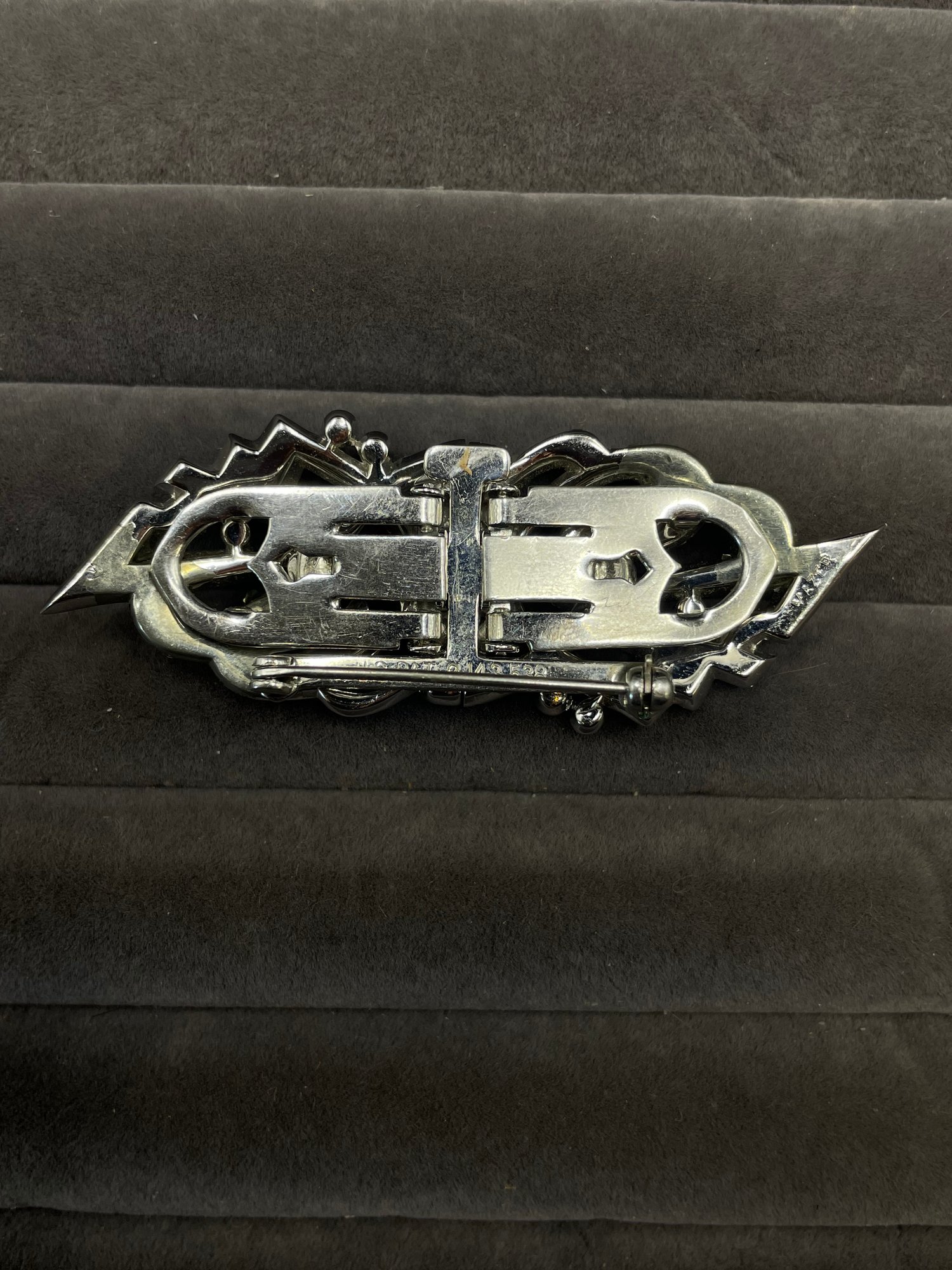 Art Deco Mazer brooch Duette Clip Signed US Pat 2.143.538 Antique 1930s Rhinestone Pave Marks : Mazer , US Pat 2.143.538
