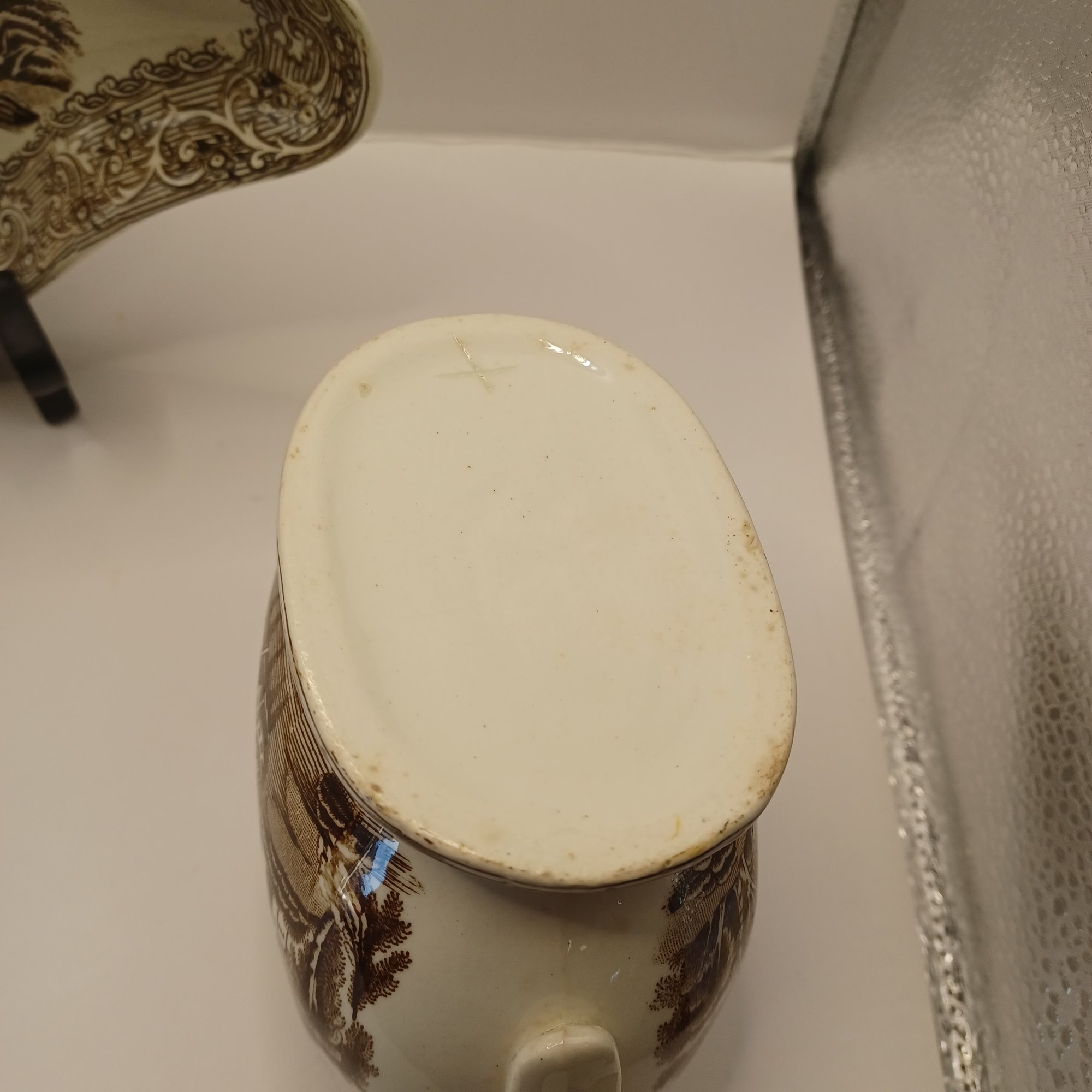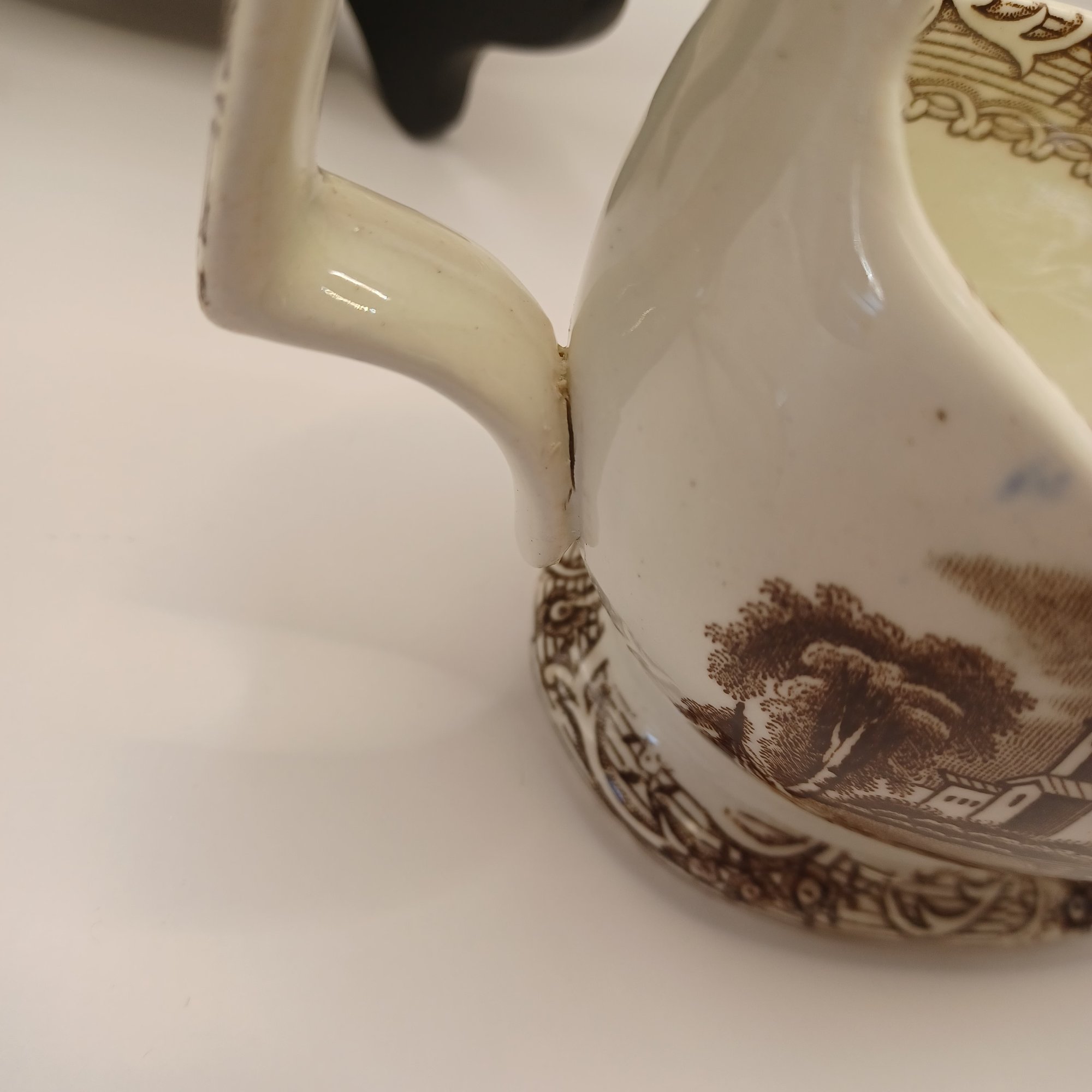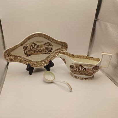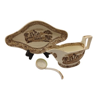 Notes: Some chips and small crack in gravy boat; some blue ink defects under glaze