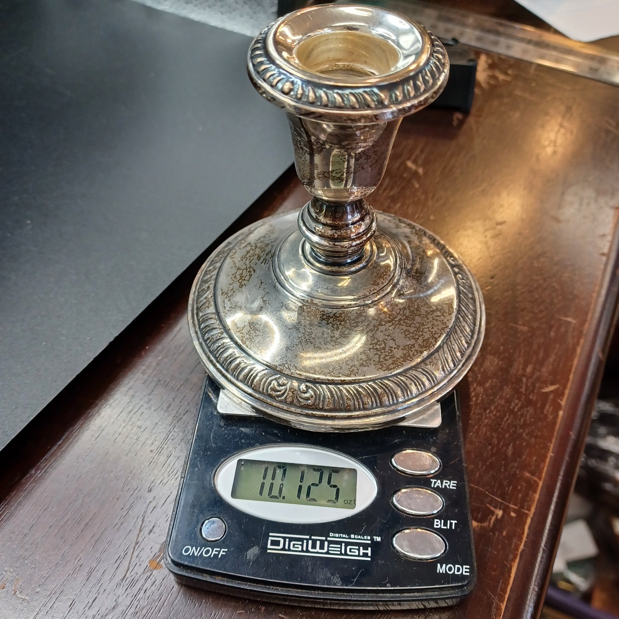 Sterling base is weighted and reinforced; weighed 10.125 ozt