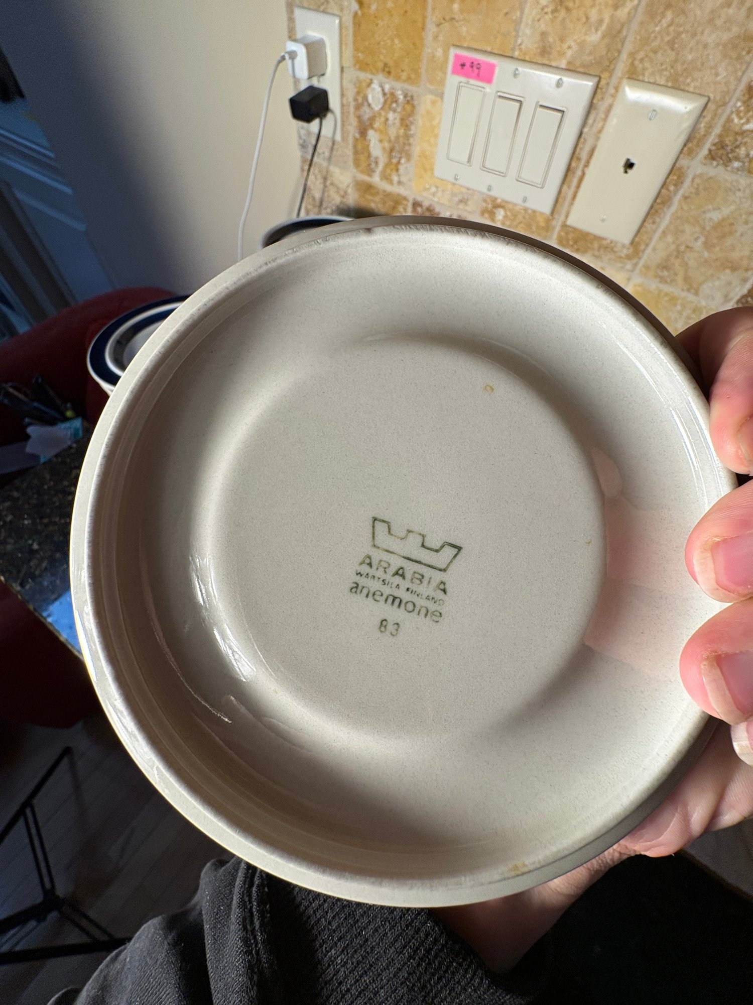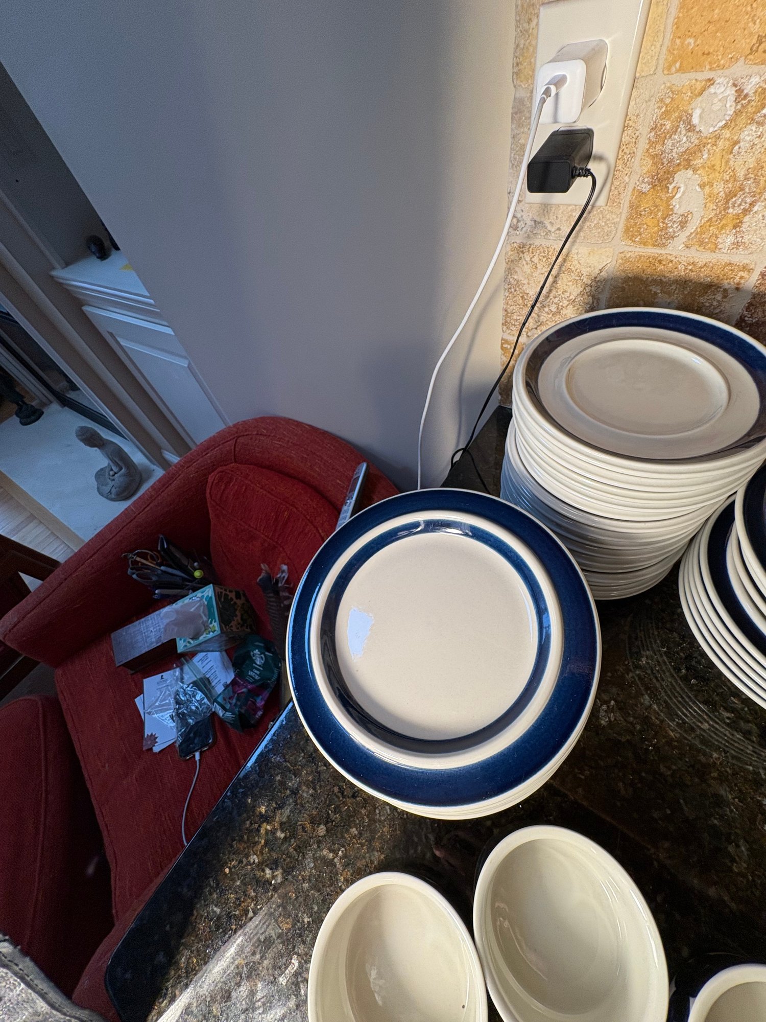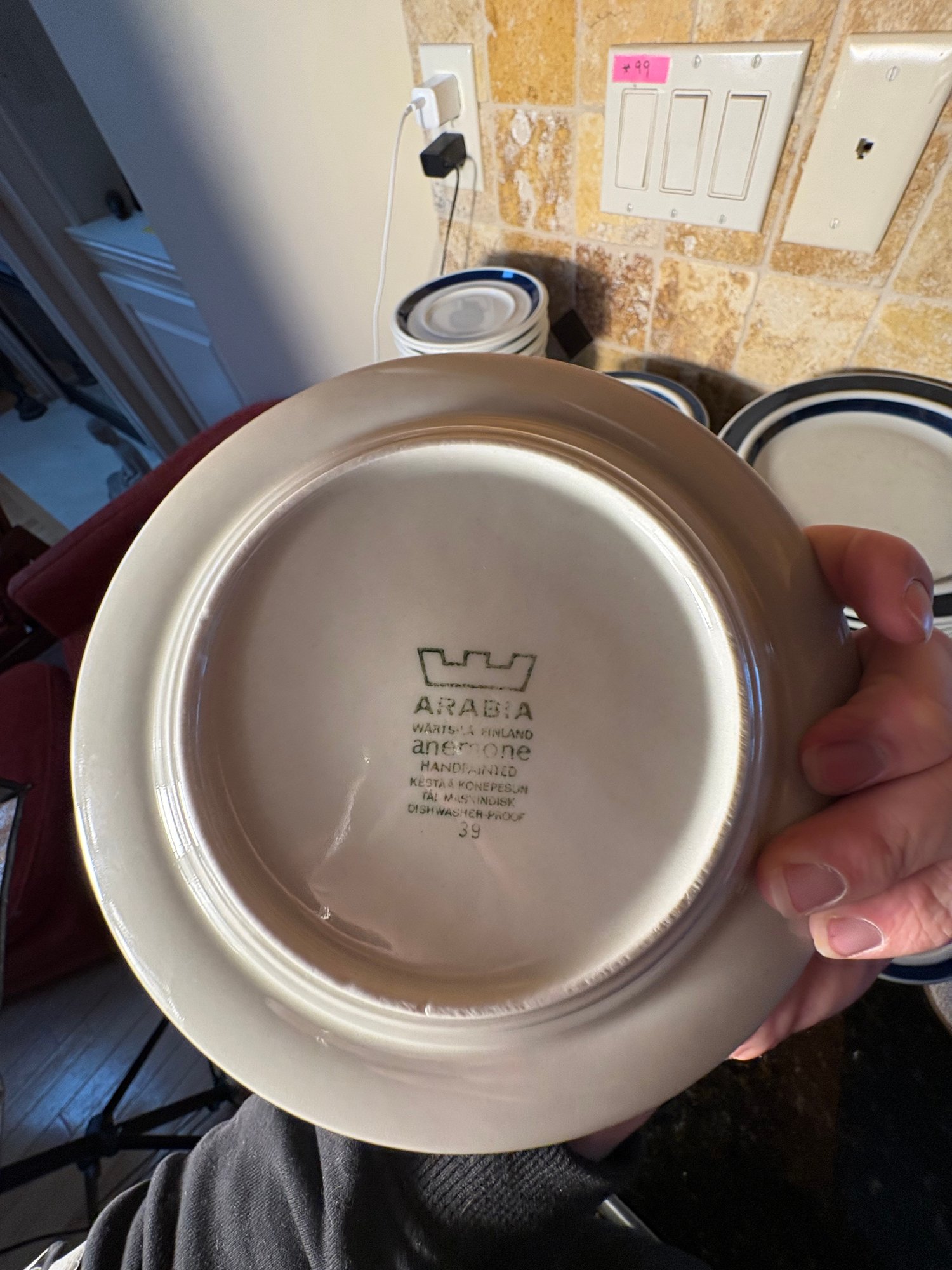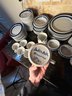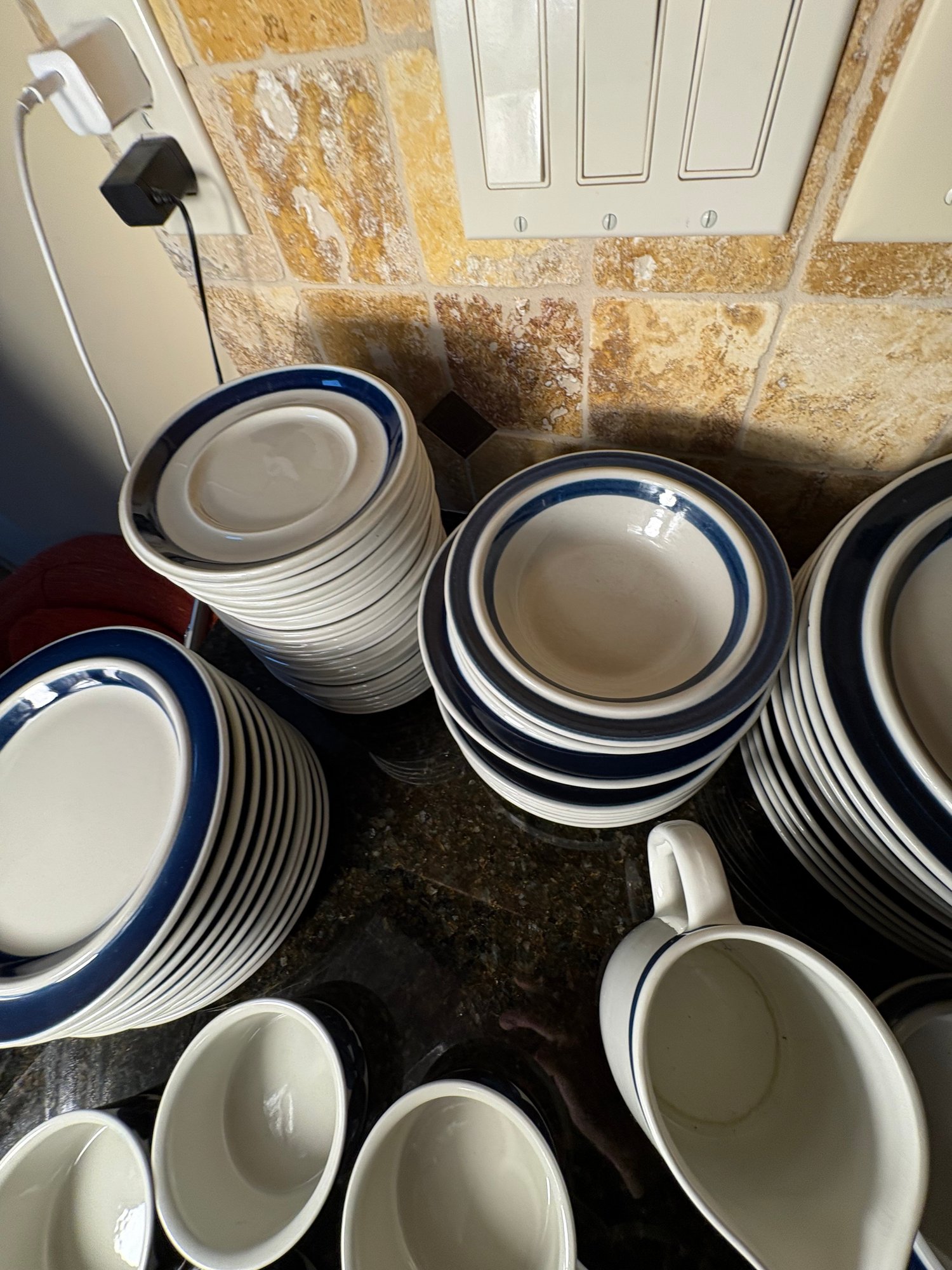 Dimensions approximately large china plate 9 pc diameter 10 inches. Medium plate 10pc 8 inches in diameter. Small plate 15pc 6.5 inches in diameter. Small bowl 4pc 7 inches in diameter. Large bowl 6pc 8 inches in diameter. Medium tea cup 4.5 inches in diameter 5.25 inches tall. Small tea cup 4 pc 4 inches in diameter. Ramekin 4 inches in diameter. Large tea cup 6 inches in diameter 7.5 inches tall
