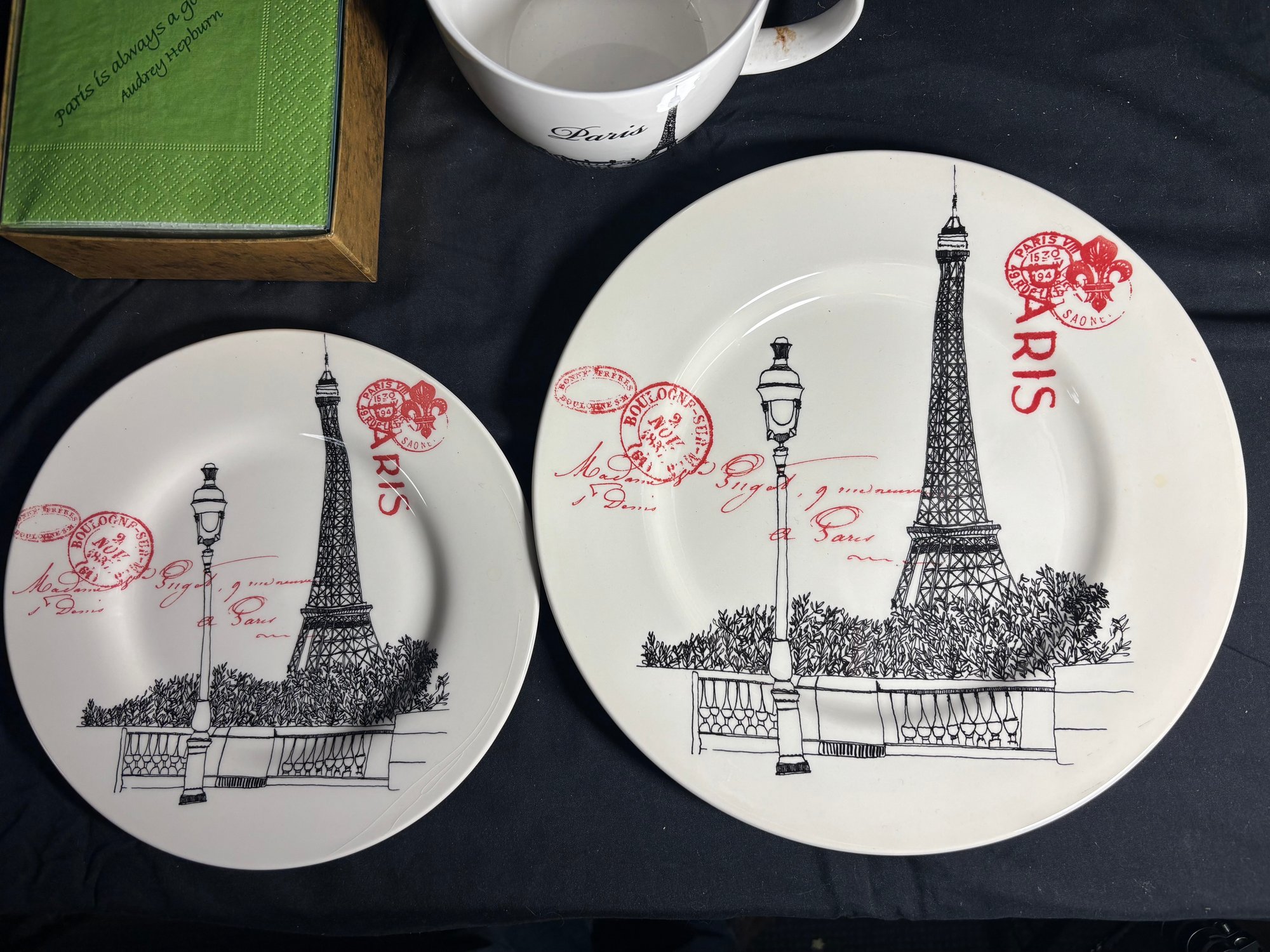 Paris France Mug, Plates, And Napkins