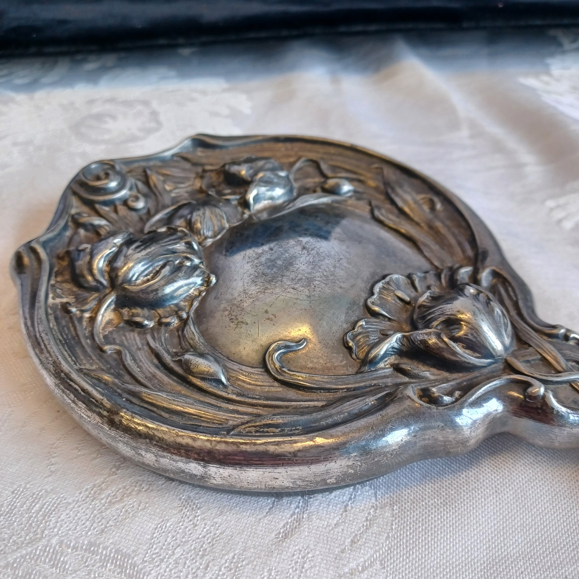 Mirror is beveled; good condition