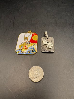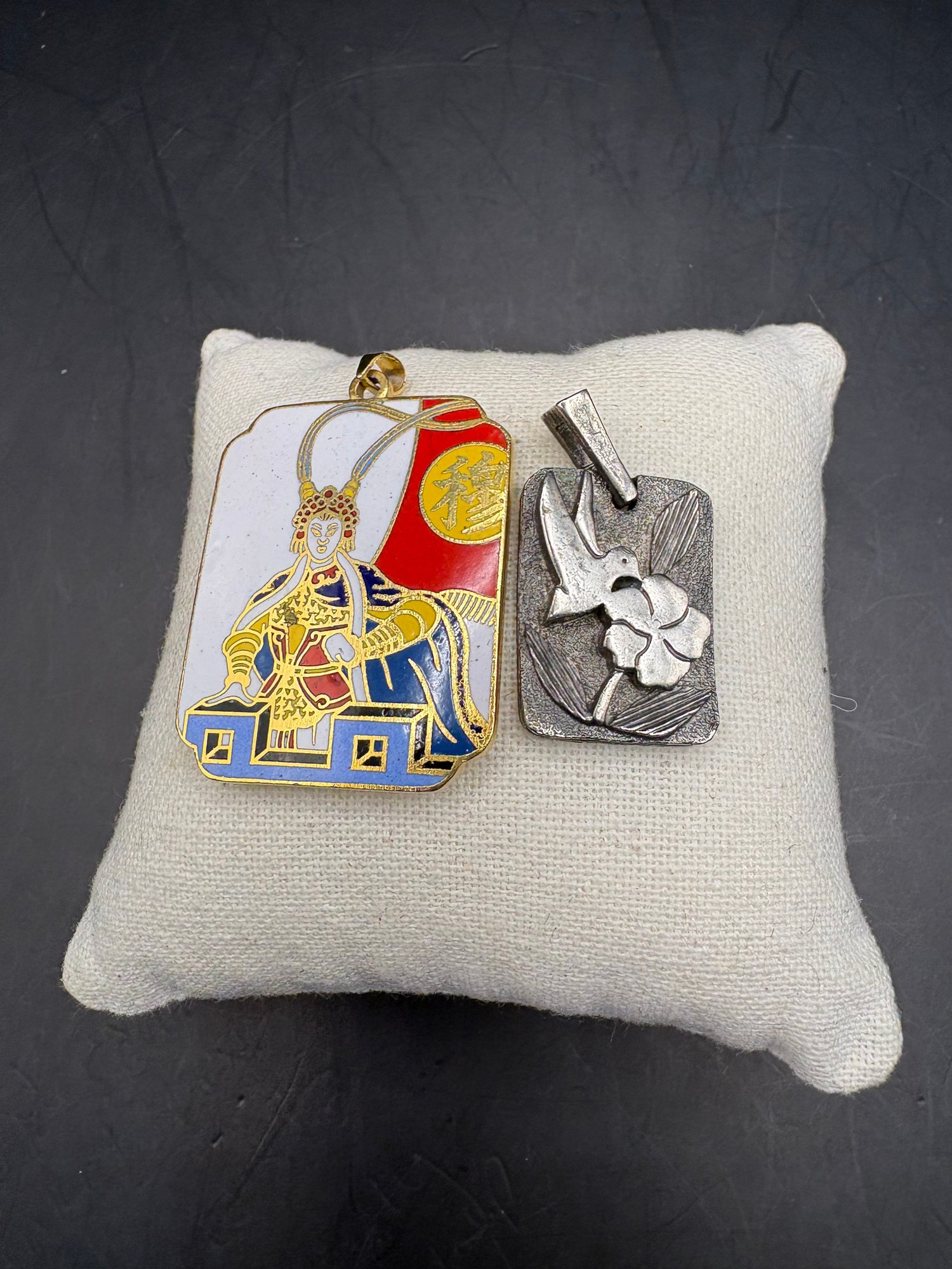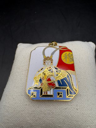 Chinese enamel cloisonné pendant with a gold-tone finish.