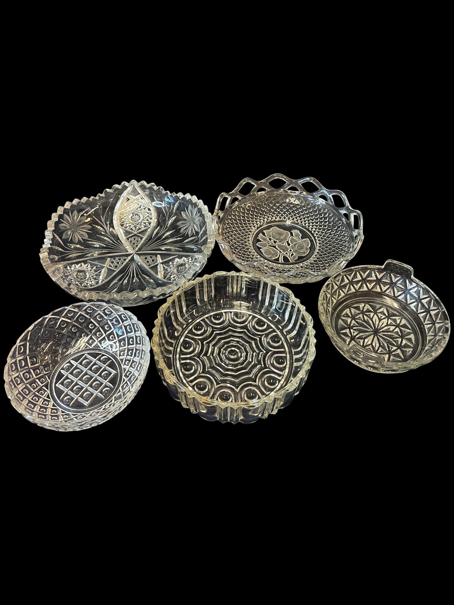 Vintage cut glass bowls of various time periods and brands - although no stamps are visible