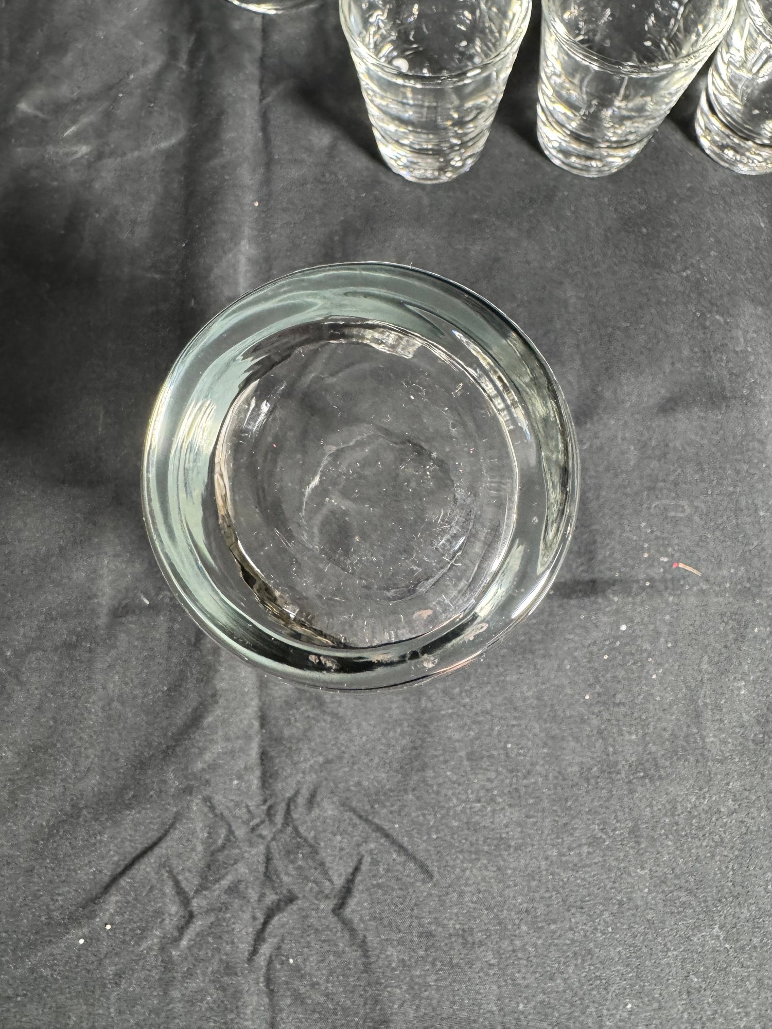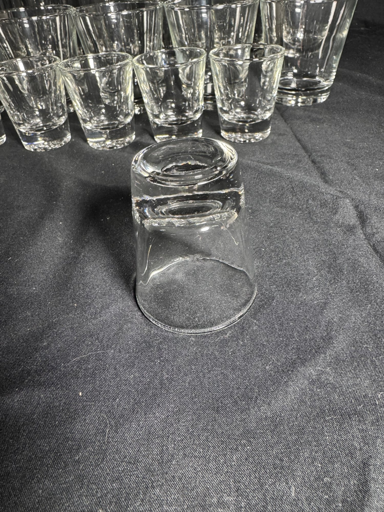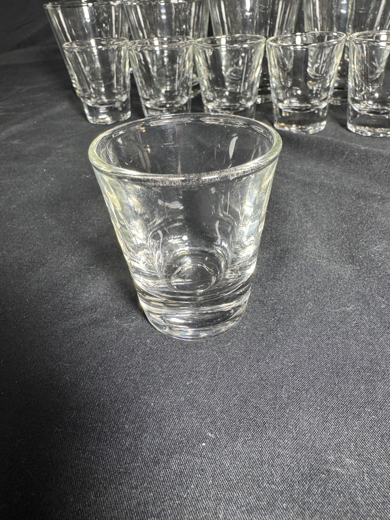 Shot glass approximately 2” across 2.25” tall