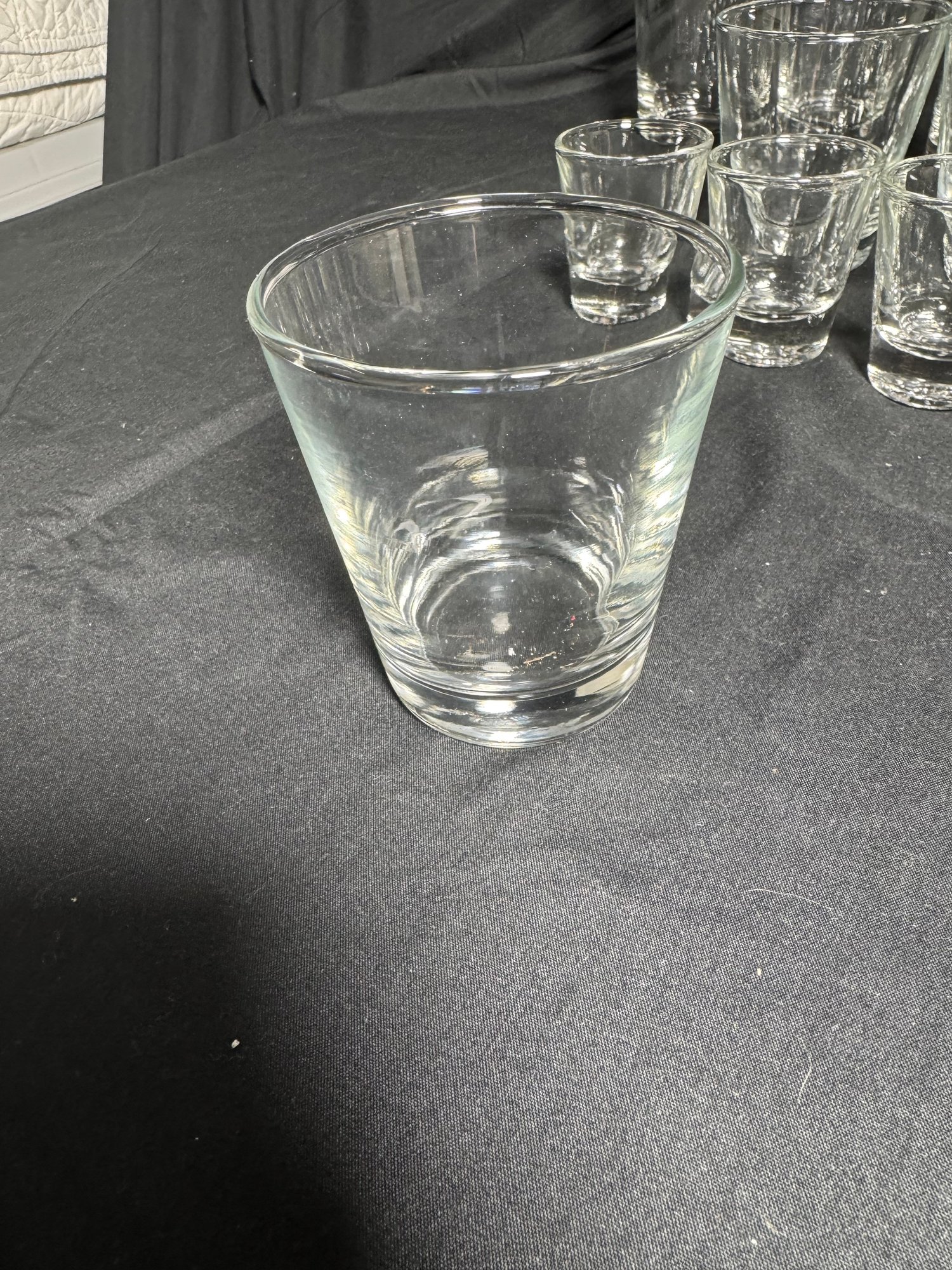 Short glass approximately 3” across 3.25”