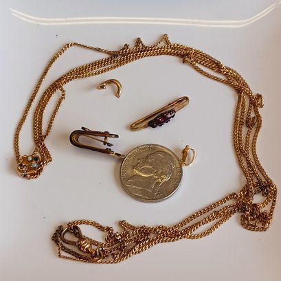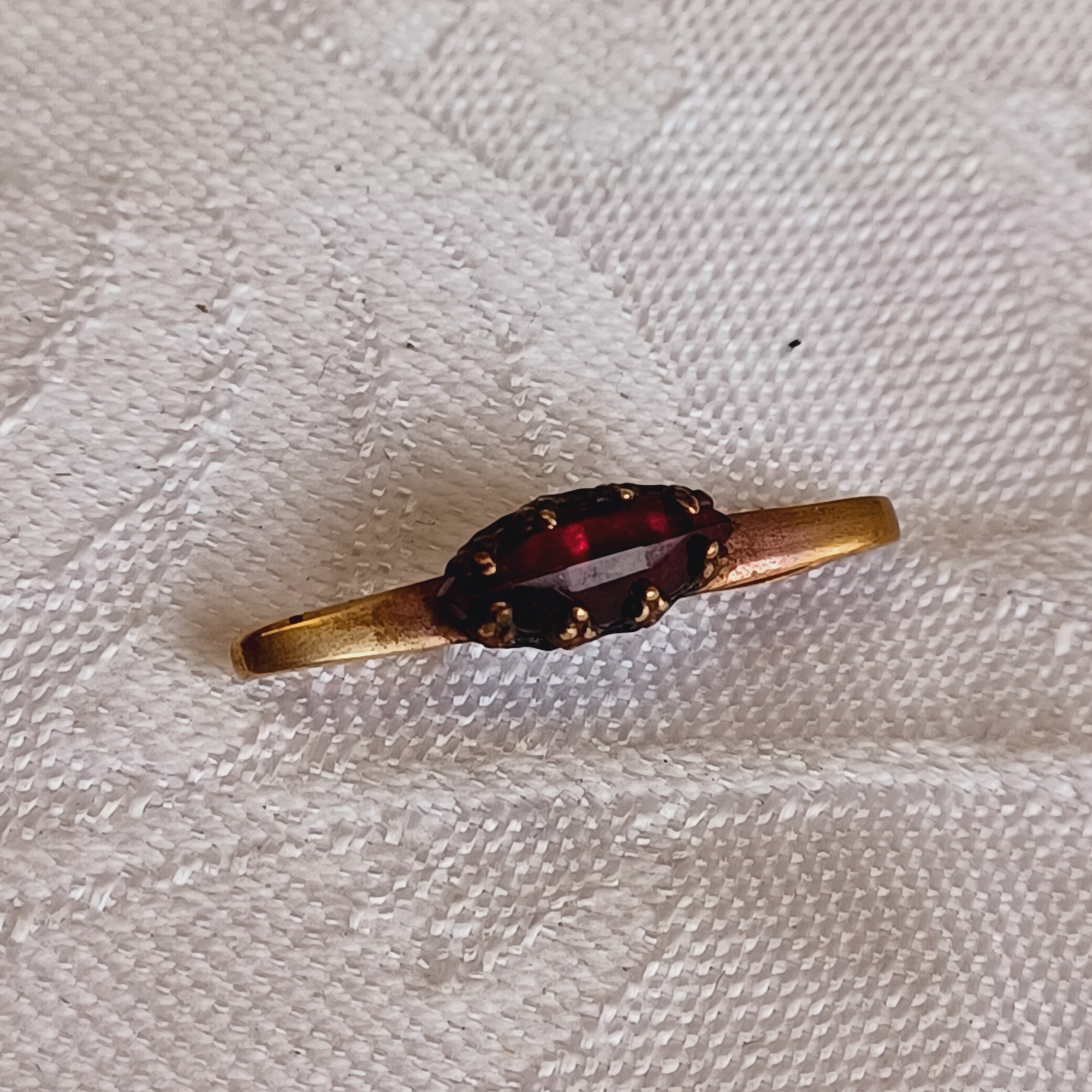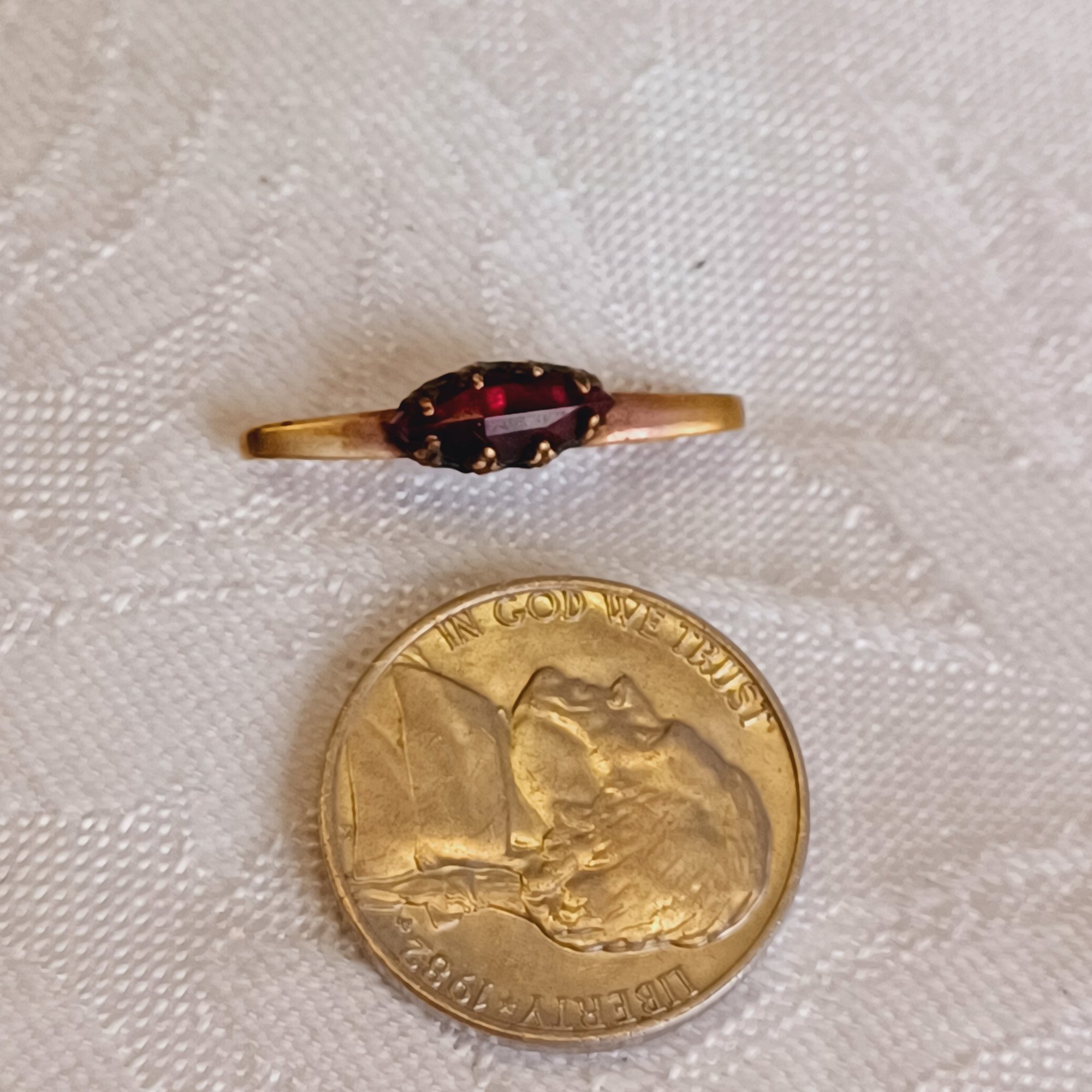 Antique pin with garnet; 1" long